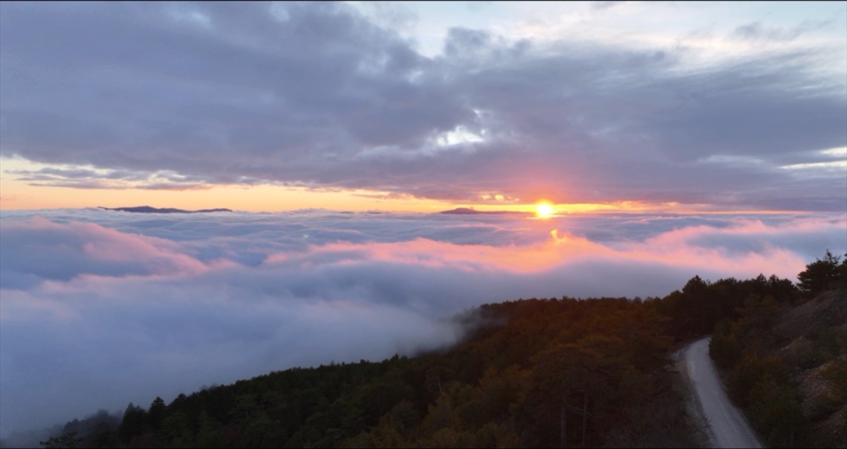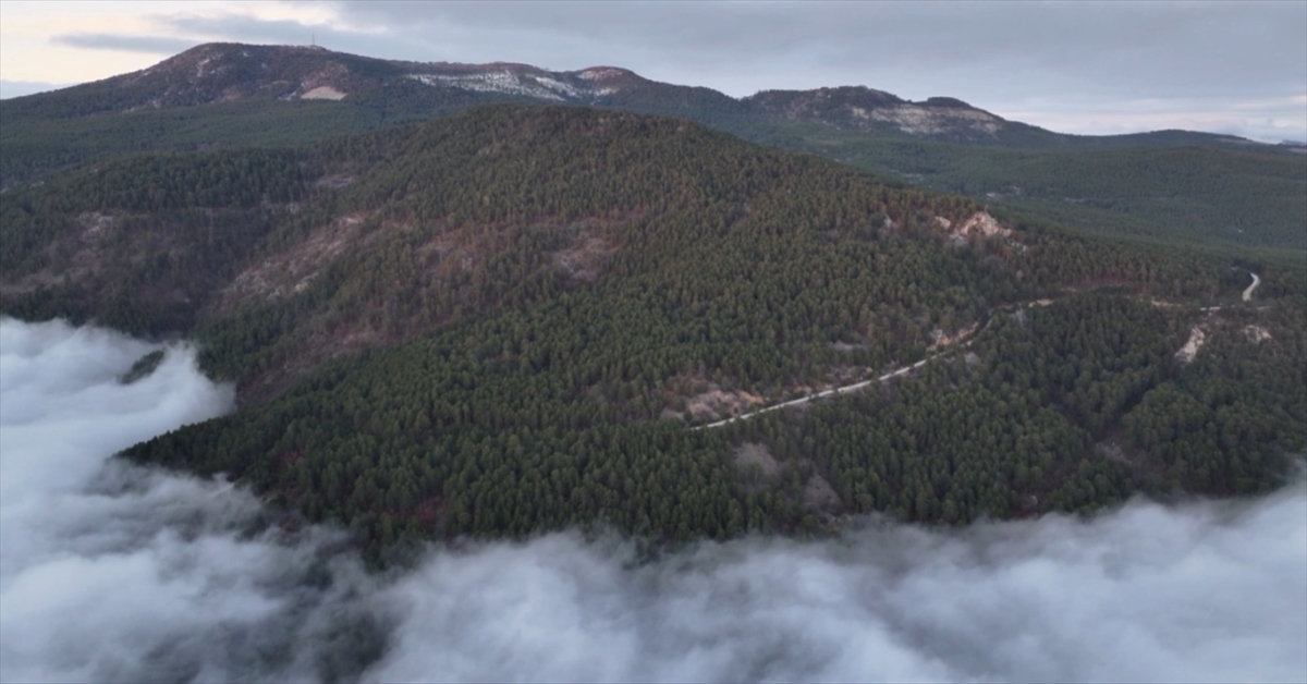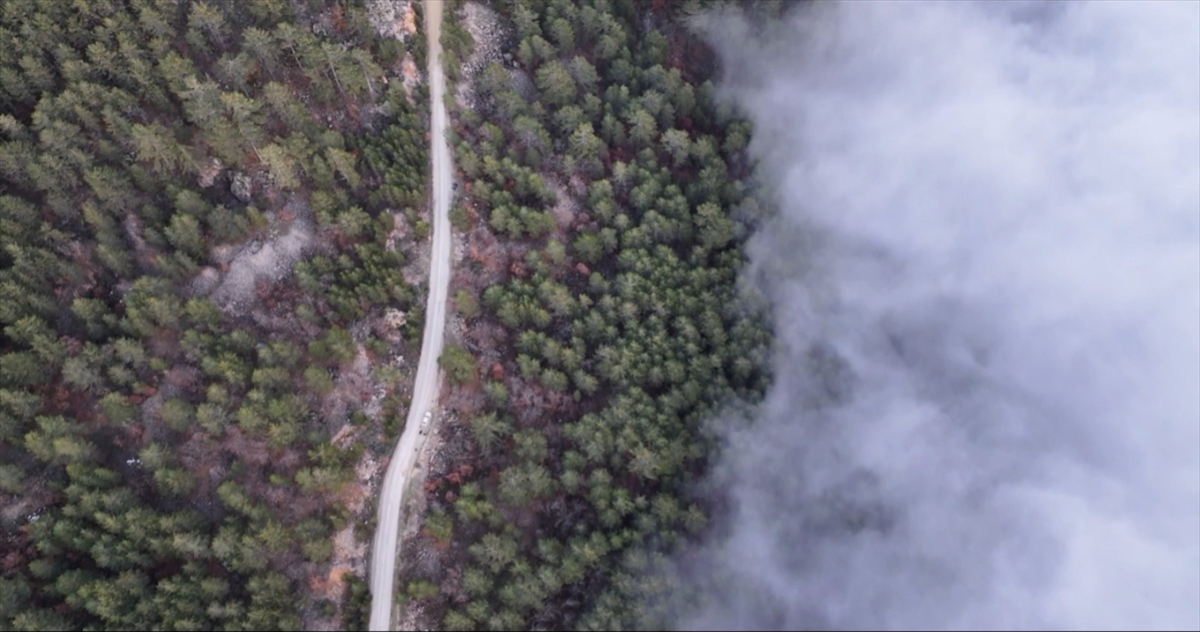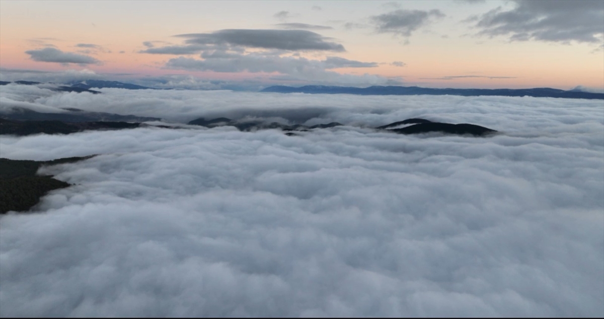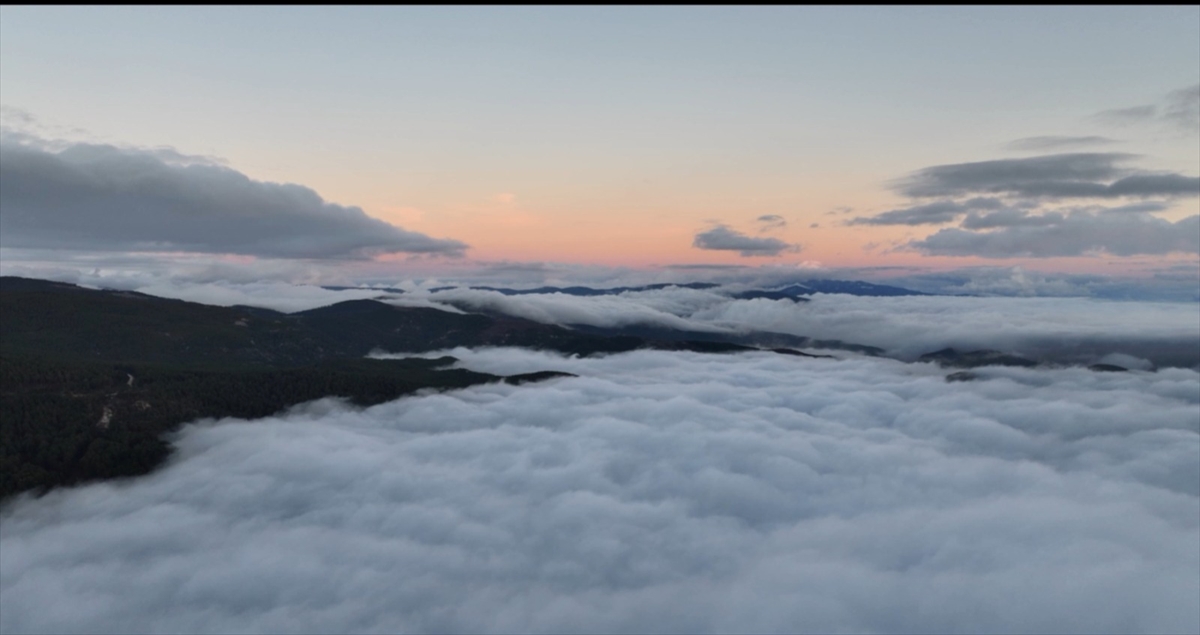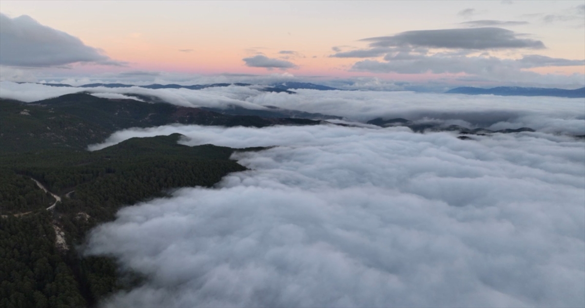 Balıkesir'in Sındırgı ilçesindeki Ulus Dağı'nda etkili olan sis dronla görüntülendi.