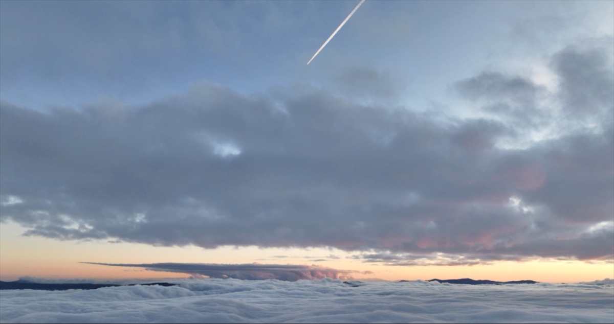 Sındırgı`da etkili olan sis nedeniyle 1974 metre yükseklikteki Ulus Dağı`nda güzel görüntüler oluştu.