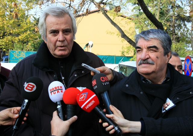 21 Kasım 2011`de Kayabaş ve Tarık Akan (solda) katıldıkları cenaze töreninde görülüyor.
