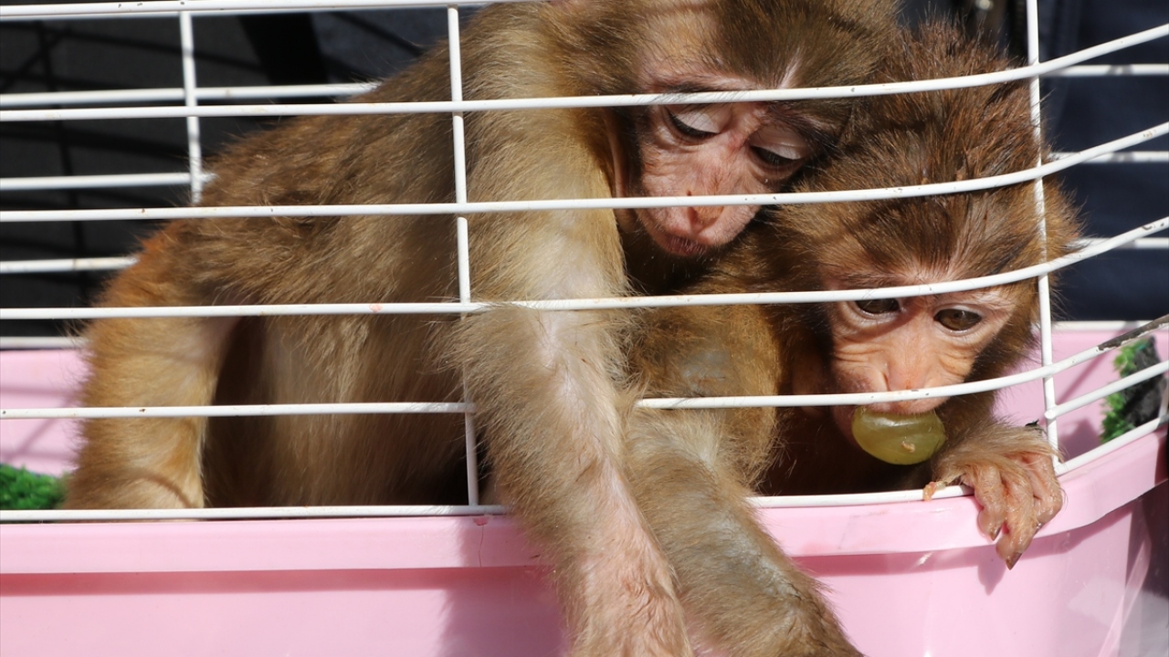 Şırnak`ın Silopi ilçesindeki Habur Sınır Kapısı`nda 22 Ekim`de bir otomobilde yakalanan ve yasa dışı yollarla ülkeye sokulduğu belirlenen 2 makak maymunu yavrusu, yeni evleri olan Gaziantep Hayvanat Bahçesi`nde bakıma alınmıştı.