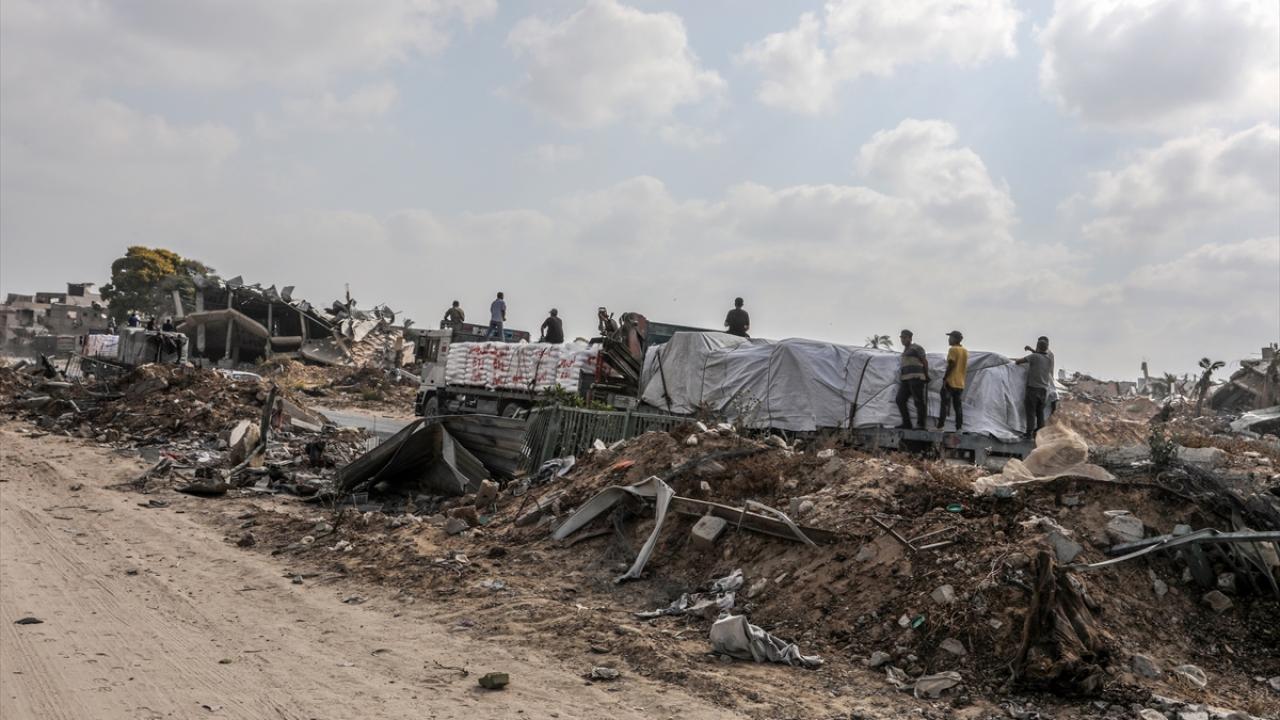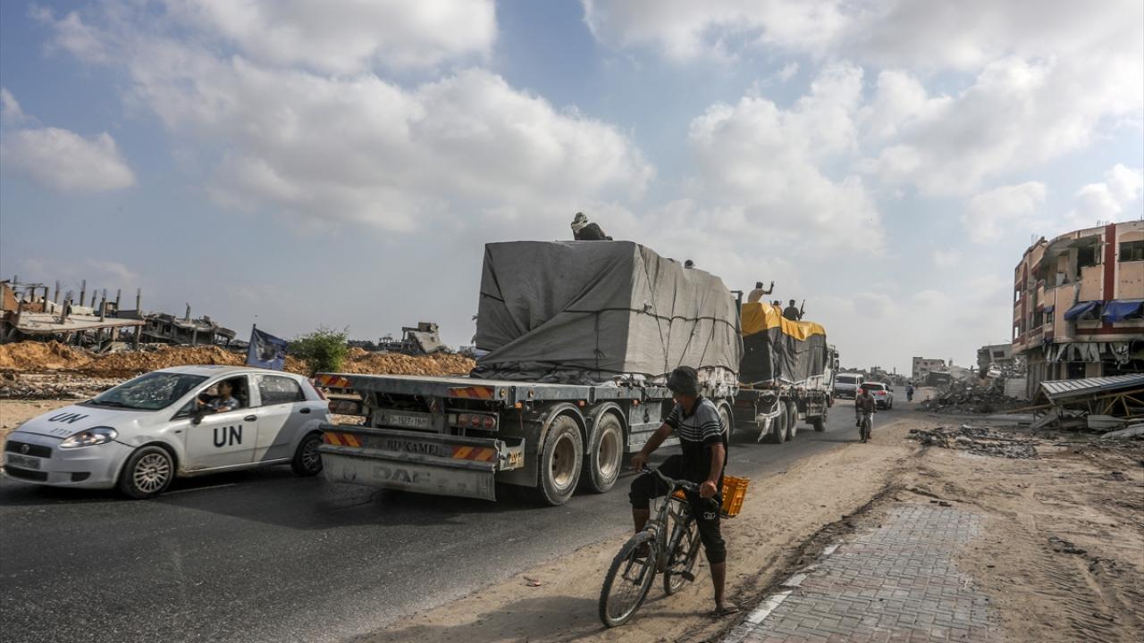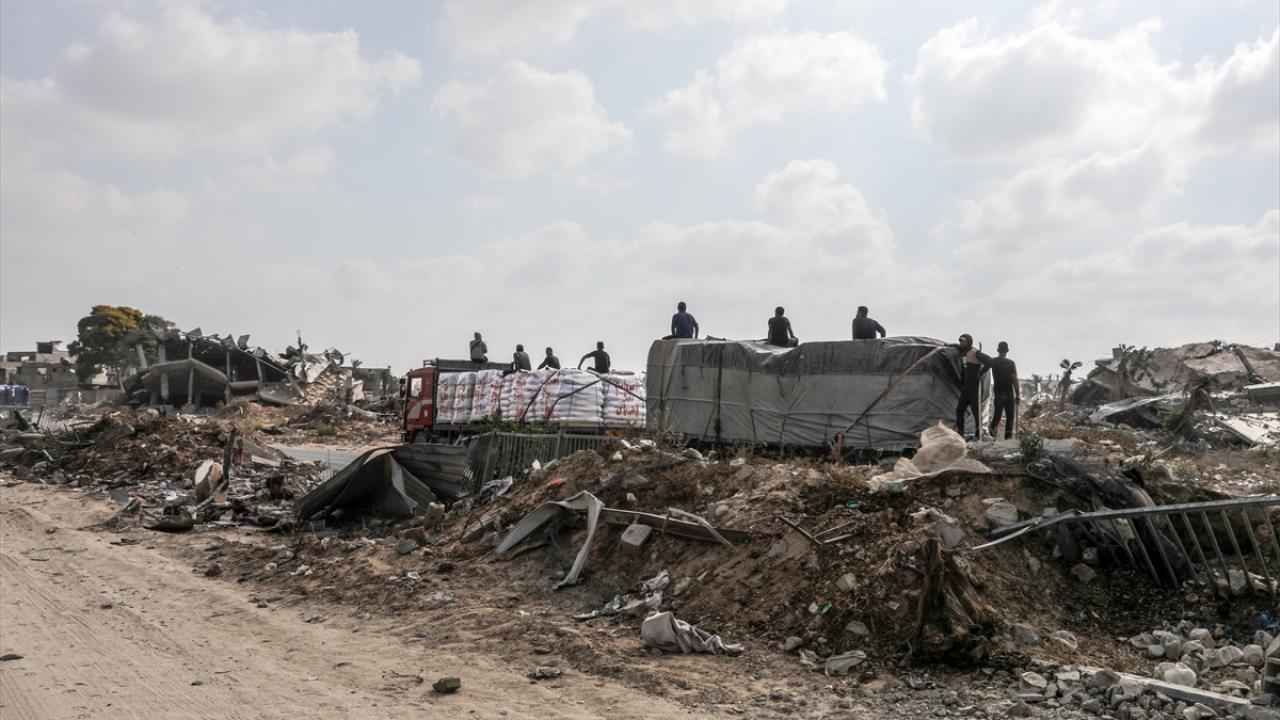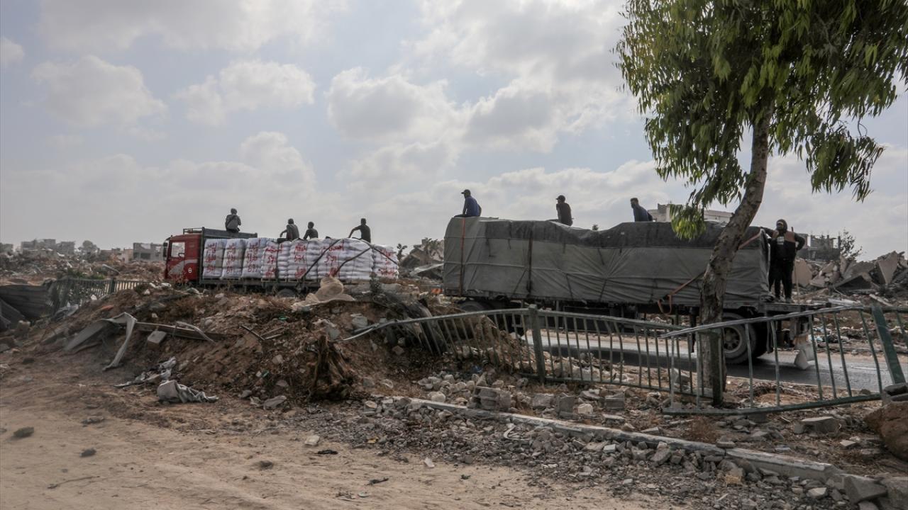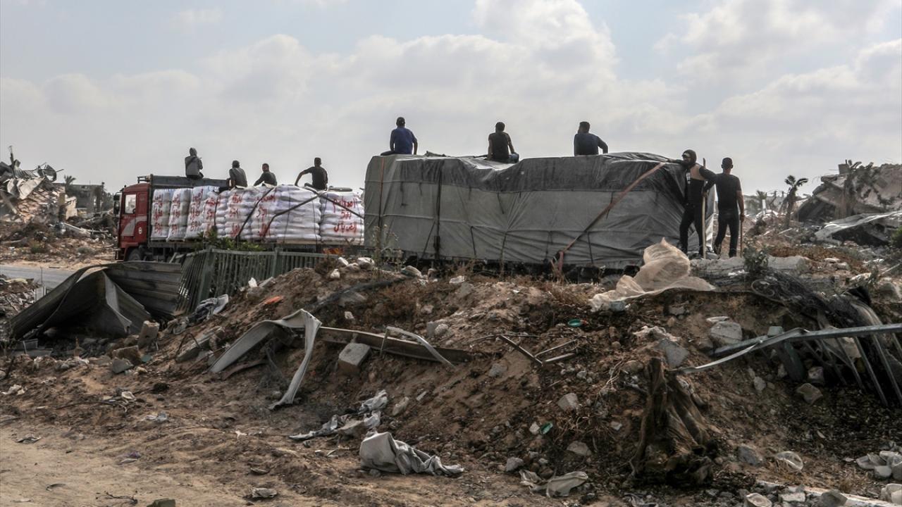 İsrail'in abluka altındaki Gazze Şeridi'ne yönelik saldırıları aralıksız devam ederken sınırlı sayıdaki yardım tırı, Kerem Ebu Salim Sınır Kapısı'ndan geçerek Gazze'ye giriş yaptı.
