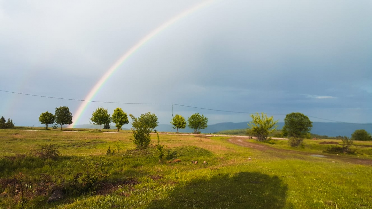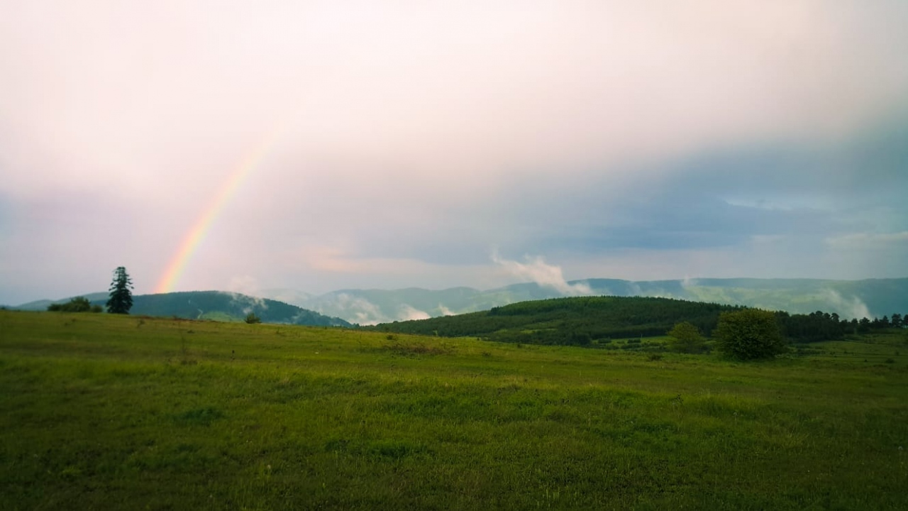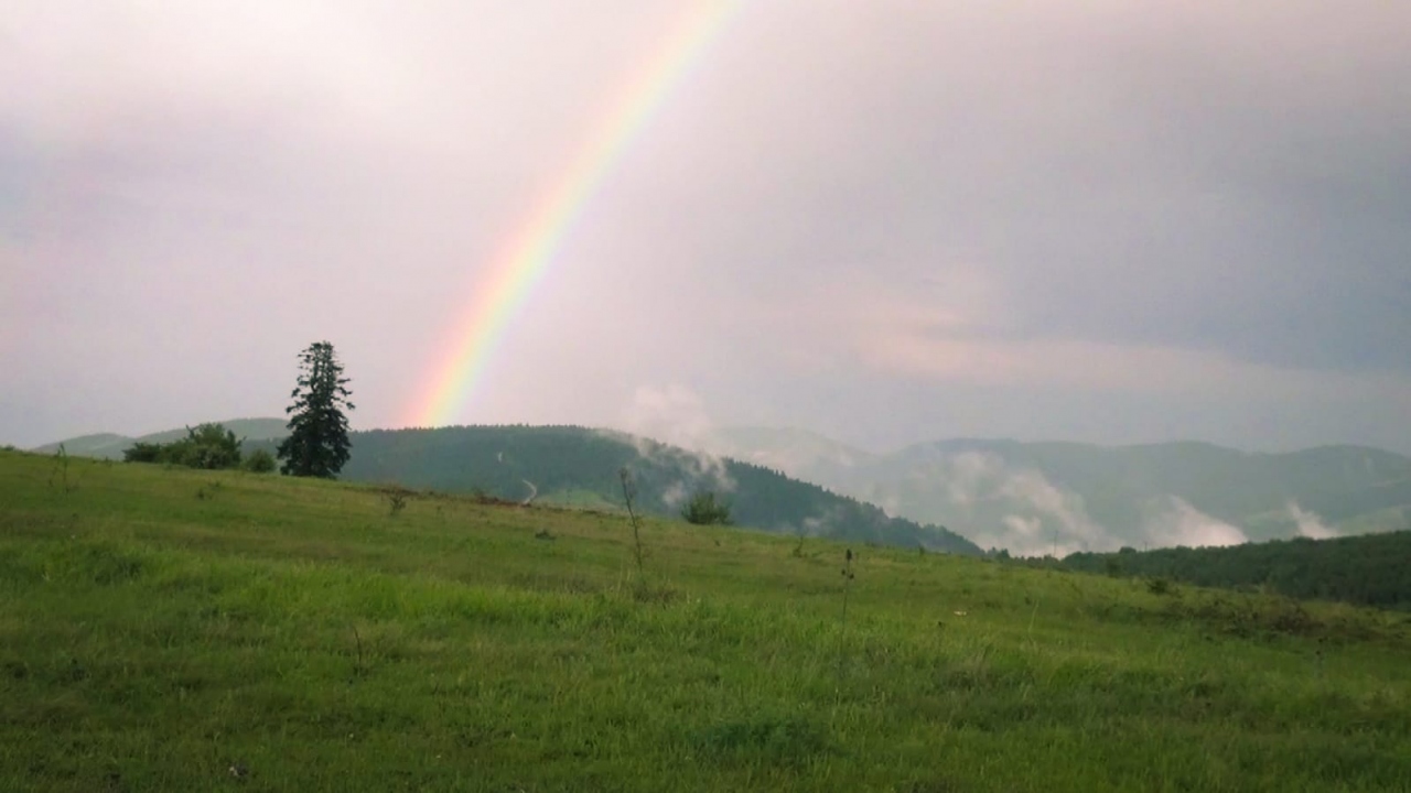 Sinop'ta yağmurun ardından ortaya çıkan gökkuşağına, dağın eteklerinden yükselen sis ayrı bir güzellik kattı.