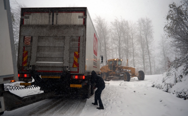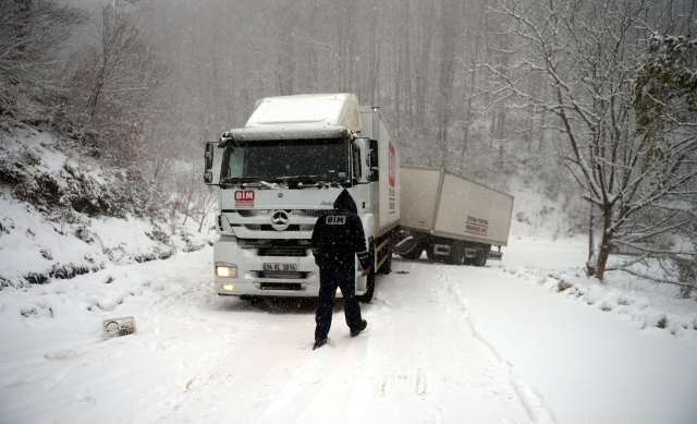 Sinop'un yüksek kesimlerinde sabah saatlerinde başlayan kar nedeniyle Ayancık-Türkeli ve Kastamonu arasındaki karayolunda bazı tır ve kamyonlar yoldan çıkarak trafiğin aksamasına neden oldu.