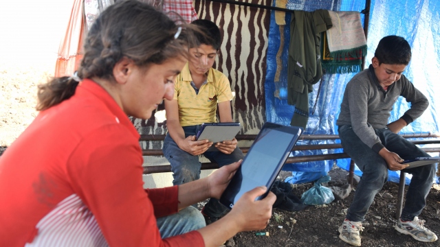 Tarlada çalışan öğrenciler, mobil EBA aracı ile derse katılıyor