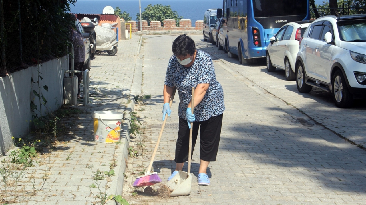 Sinop'ta 57 yaşındaki emekli Canan Bayrak, boş zamanlarında, evinin bulunduğu mahalledeki sokağı ve sokaktaki caminin gönüllü temizliğini yaparak çevresindekilerin takdirini topluyor.