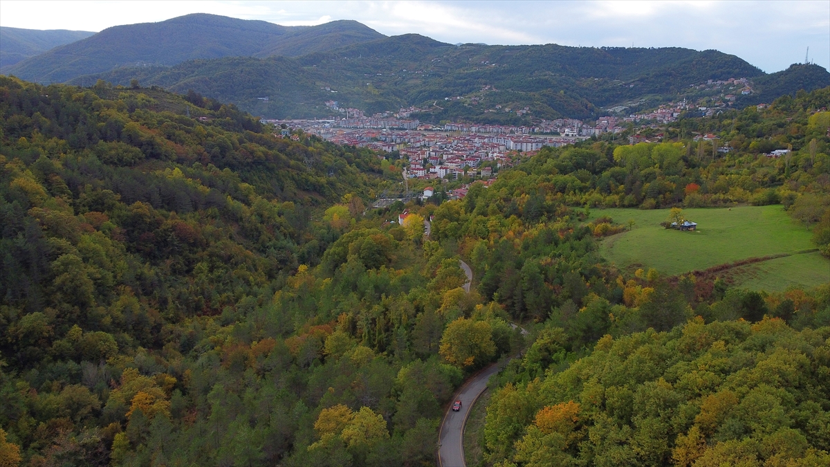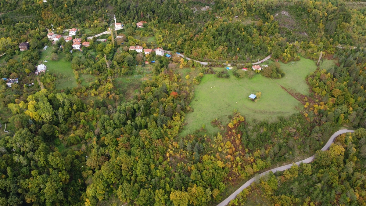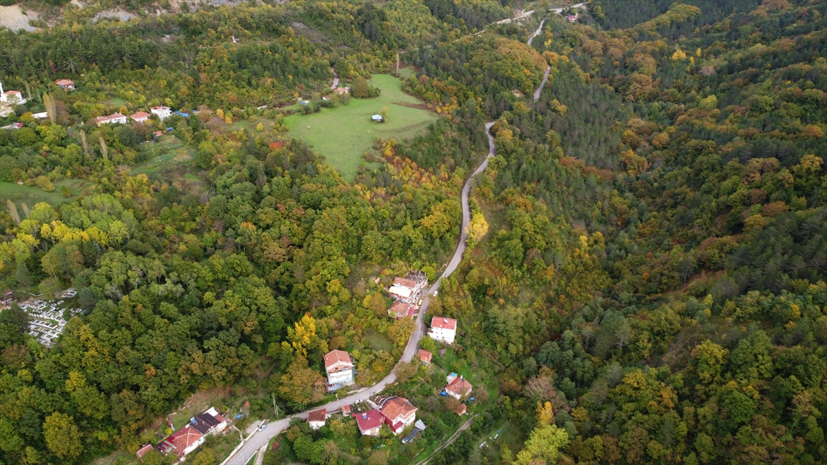 Bölgedeki ormanlarda oluşan sonbahar renkleri dronla da görüntülendi.