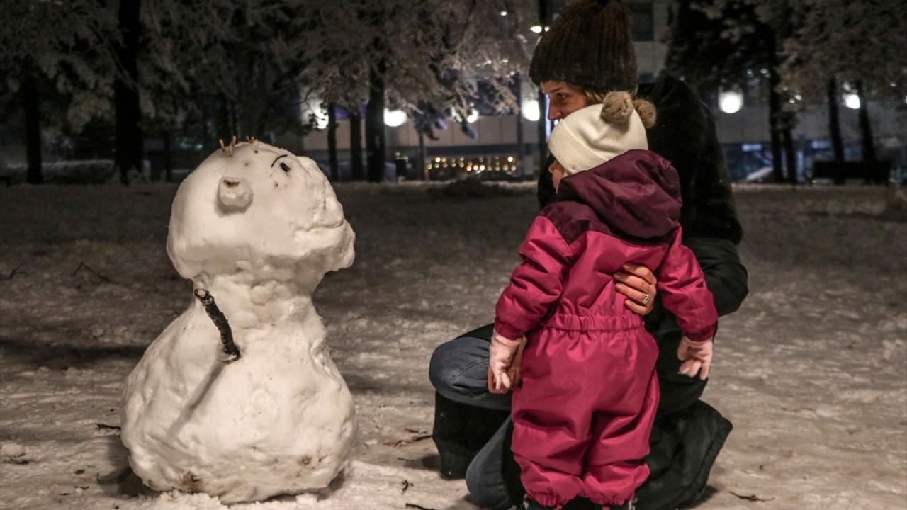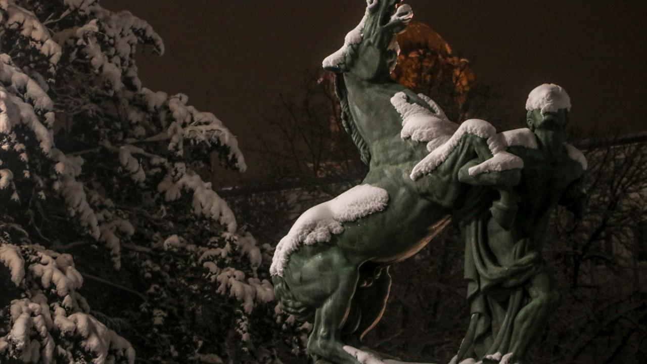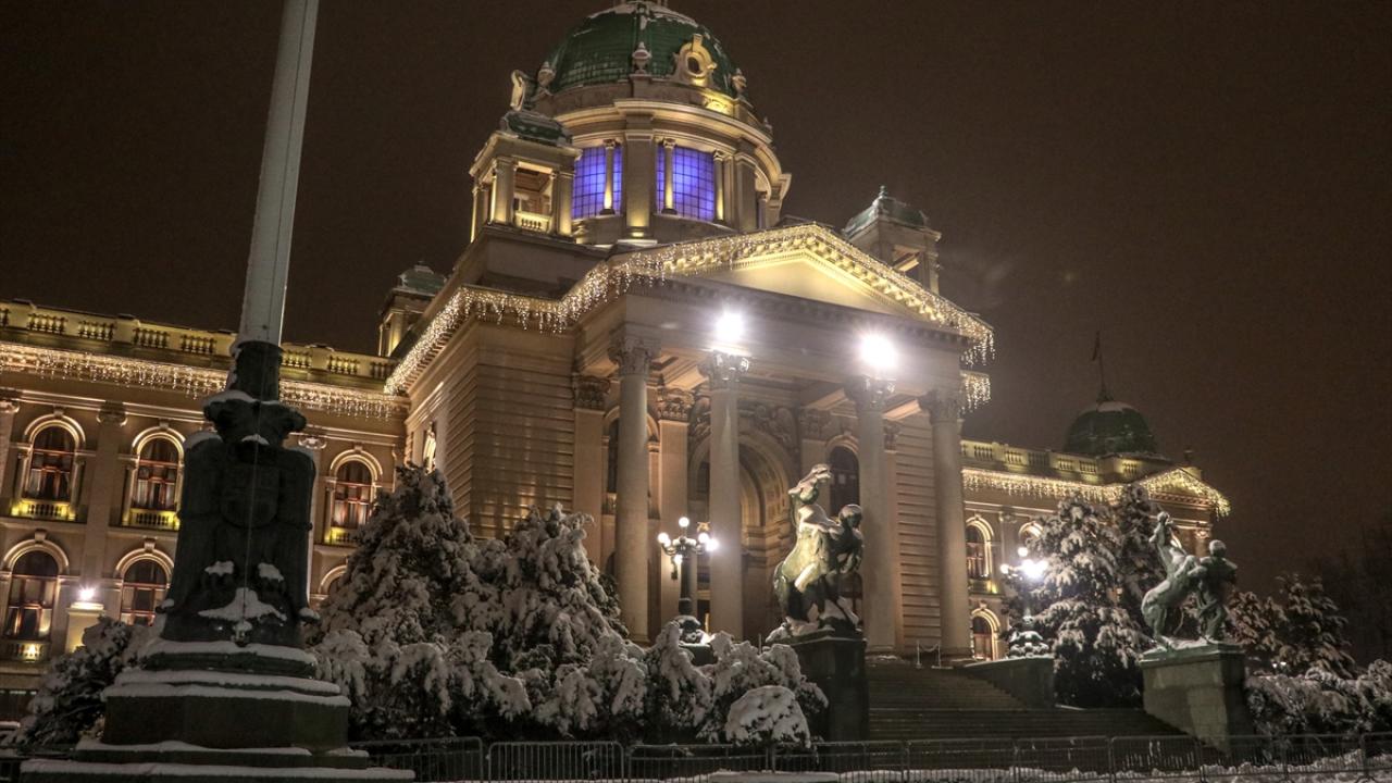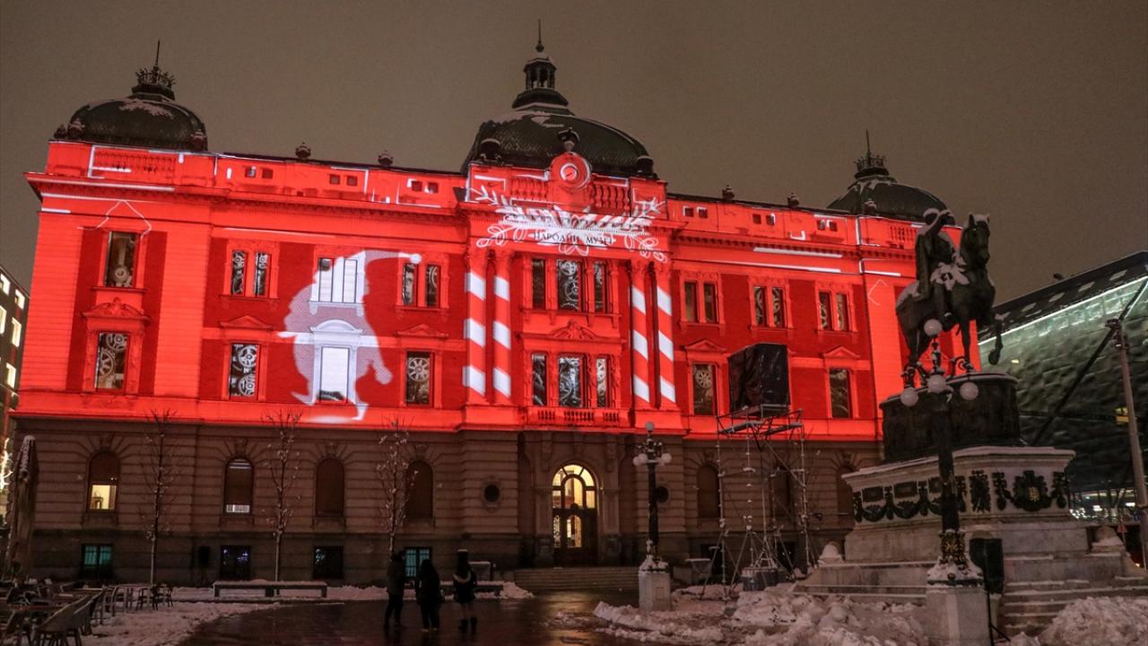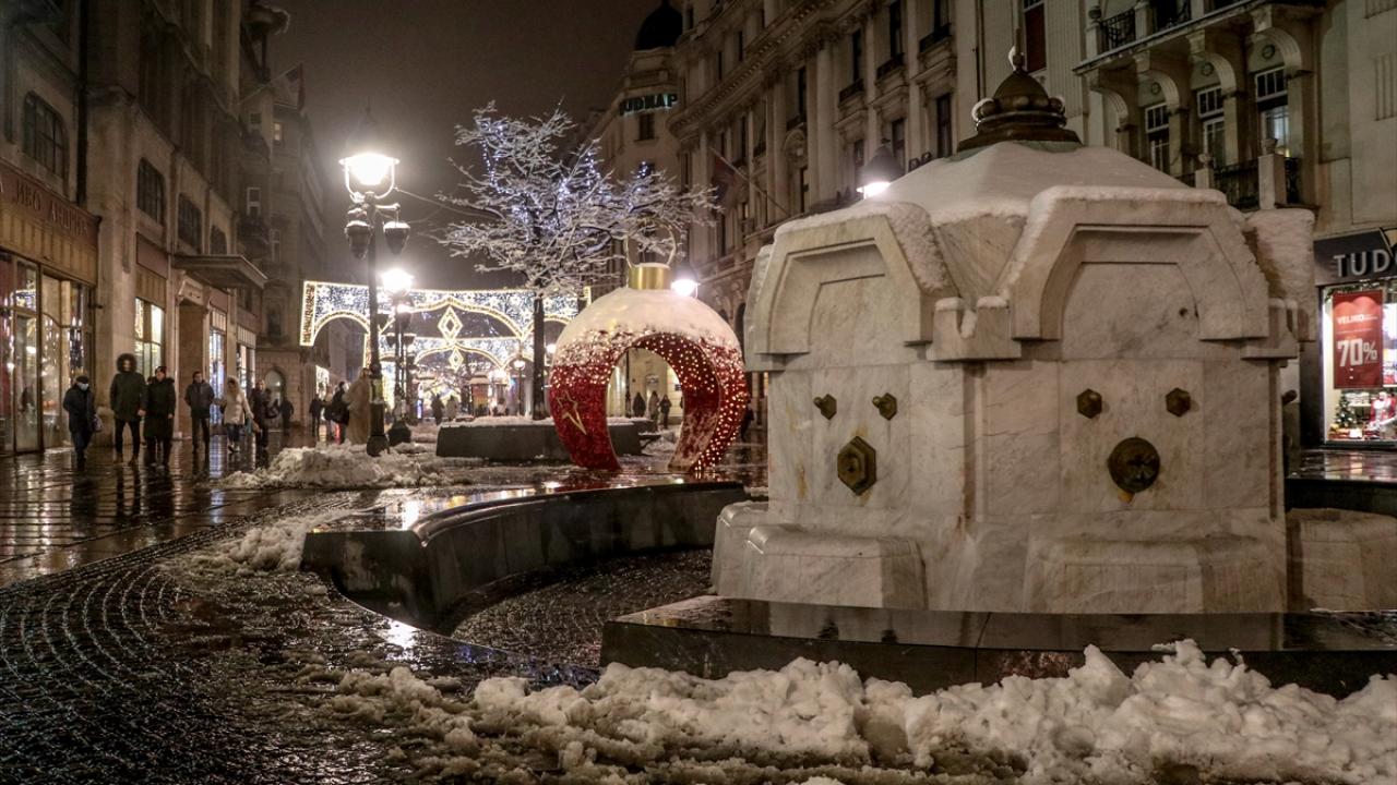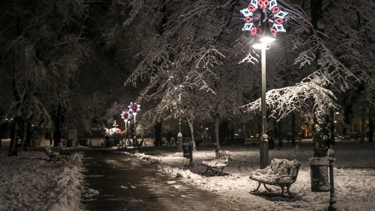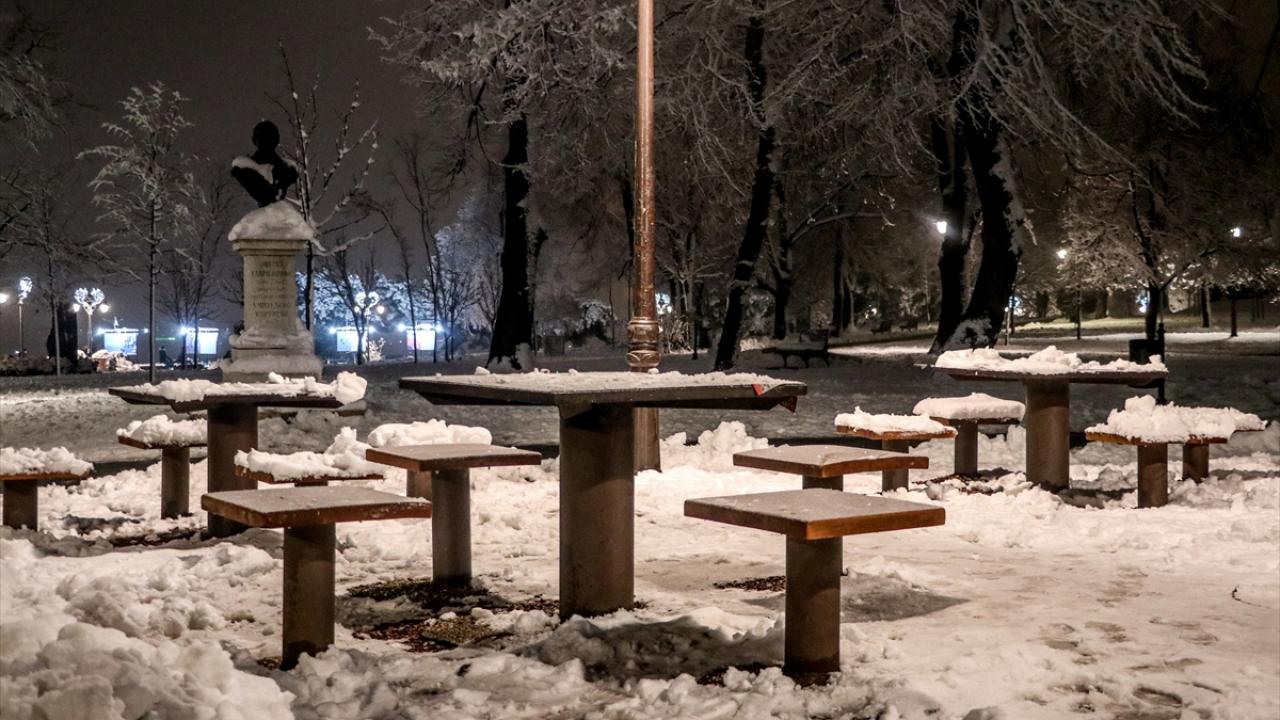 Sırbistan'ın başkenti Belgrad'da etkili olan kar yağışıyla şehir beyaza büründü. Yağan kar, akşam ışıklarıyla Belgrad'da görsel bir şölen oluşturdu.