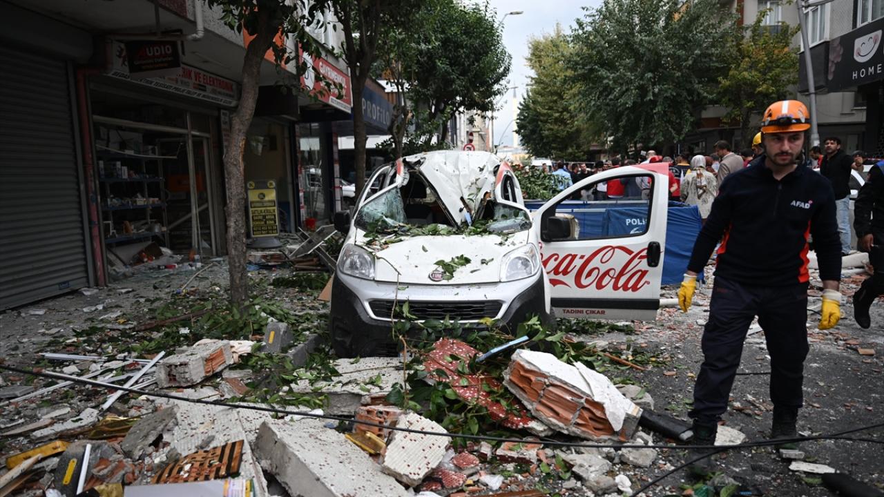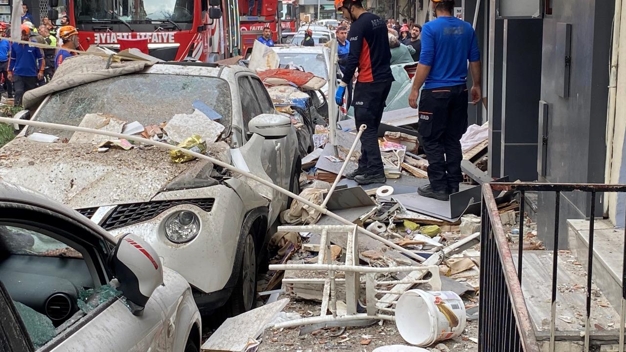 Patlamanın etkisiyle binadan kopan molozlar orada bulunan araçların üstüne düşerken, çevredeki bazı binaların camları da kırıldı.