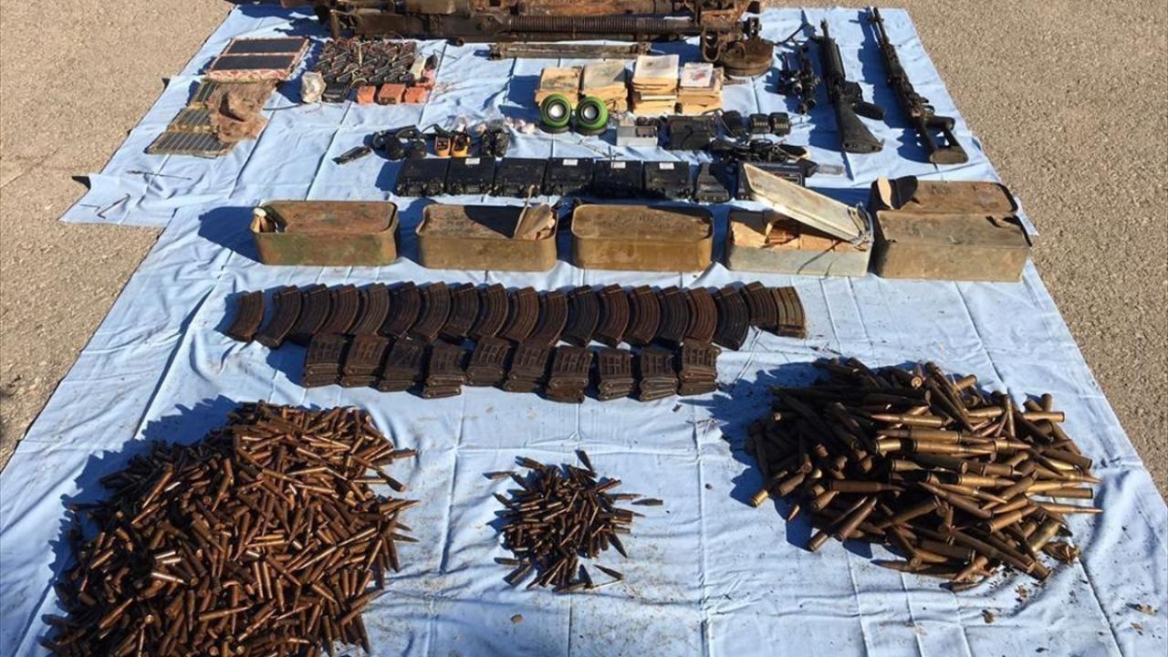 Yapılan aramalarda, uçaksavar silahı, dragunov keskin nişancı tüfeği, M-4 piyade tüfeği, uçaksavar silahı sehpası, dragunov keskin nişancı tüfeği dürbünü, 2 makinalı tüfek namlusu, 4 havan mühimmatı, 2 RPG-7 sevk fişeği, 7 bin muhtelif çapta mühimmat, 71 el bombası,14 anti-tank mayını, 40 el bombası tapası, 39 muhtelif çapta silah şarjörü, 3 bin biksi mayonu,