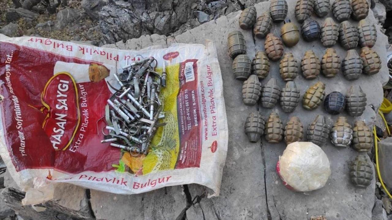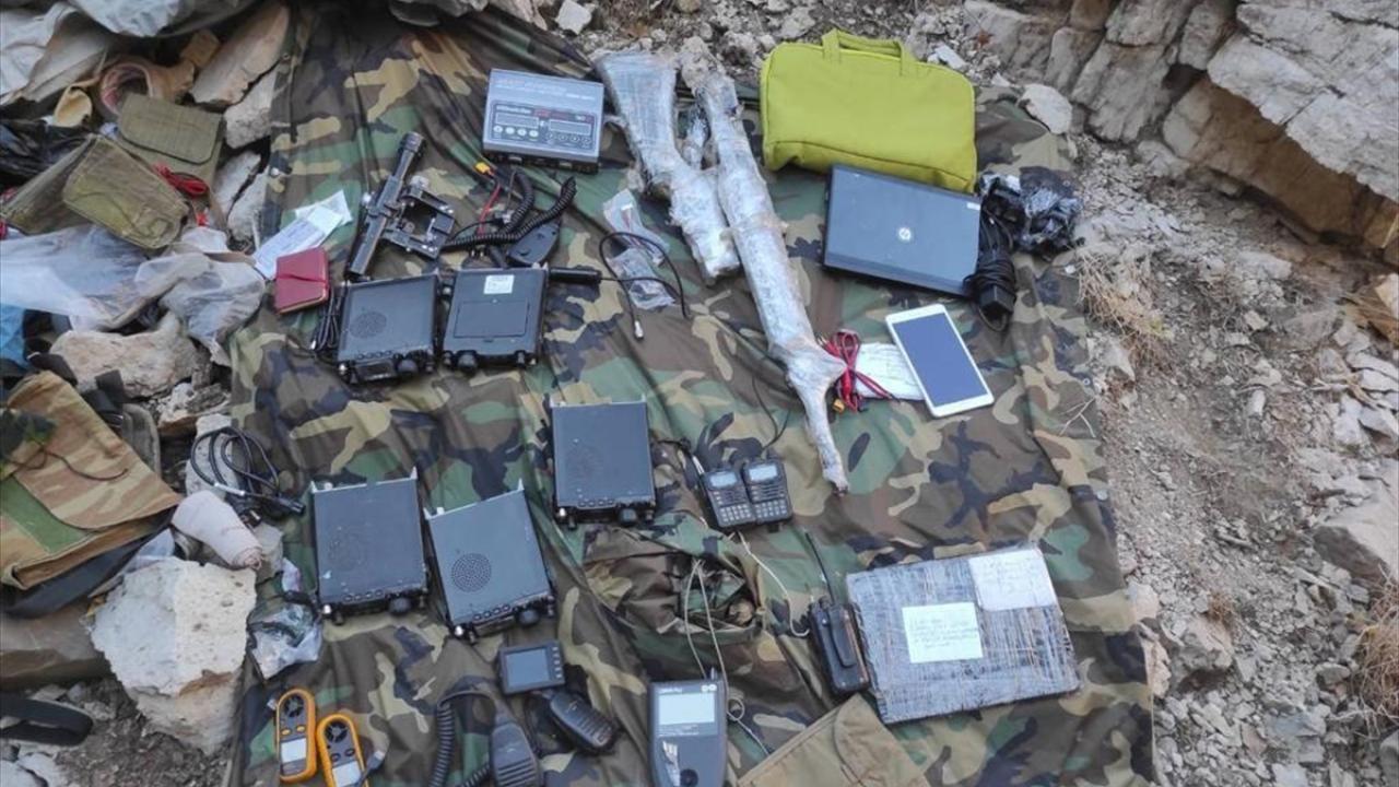 200 havan sevk barutu, 6 araç telsizi, 3 el telsizi, 6 EYP, 3 kilogram C4 patlayıcı, 9 EYP basma düzeneği, 44 EYP ateşleme sistemi, bir EYP ateşleme sistemi kumandası, 41 elektronik devre, 6`lı pil bloğu, 170 metre kablo, 5 metre infilaklı fitil, 6 akü, bir güneş paneli, 2 rüzgar ölçer, 32 tüp, 750 kilogram gıda maddesi, 350 yaşam malzemesi ve muhtelif miktarda sağlık malzemesi ele geçirildi.