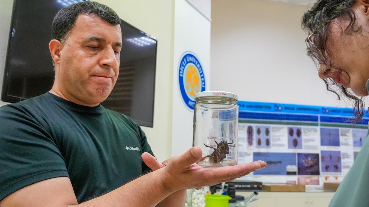 Şırnak kırsalında görülen ve Anadolu Ajansı (AA) ekibince görüntülenen çekirgelerden biri, Dicle Üniversitesi Fen Fakültesi Zooloji Ana Bilim Dalı Başkanı Prof. Dr. Ali Satar ve ekibine ulaştırıldı.