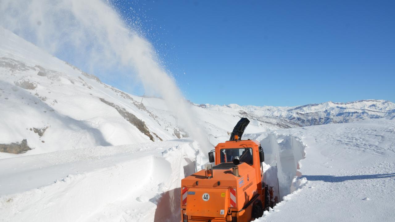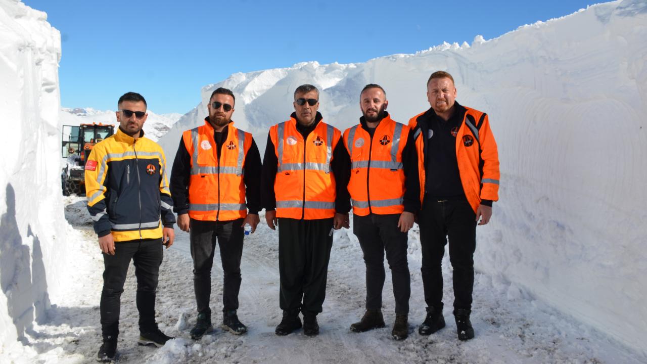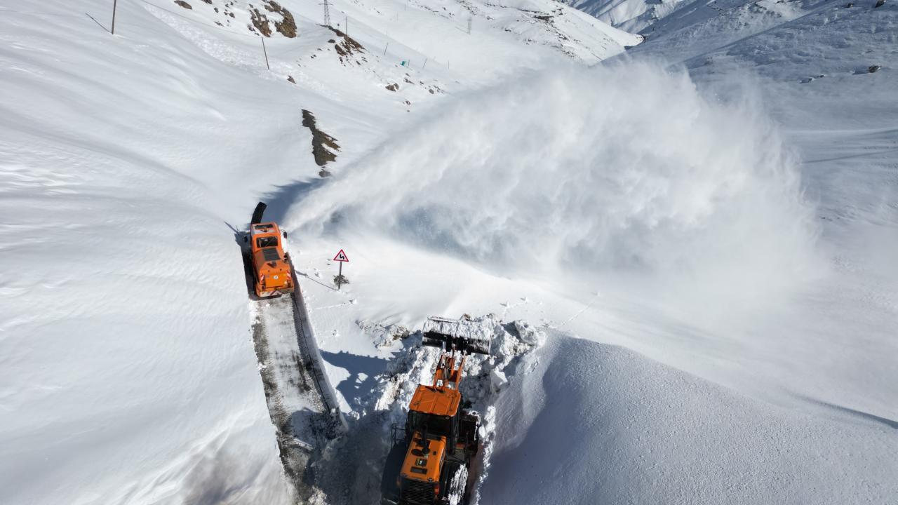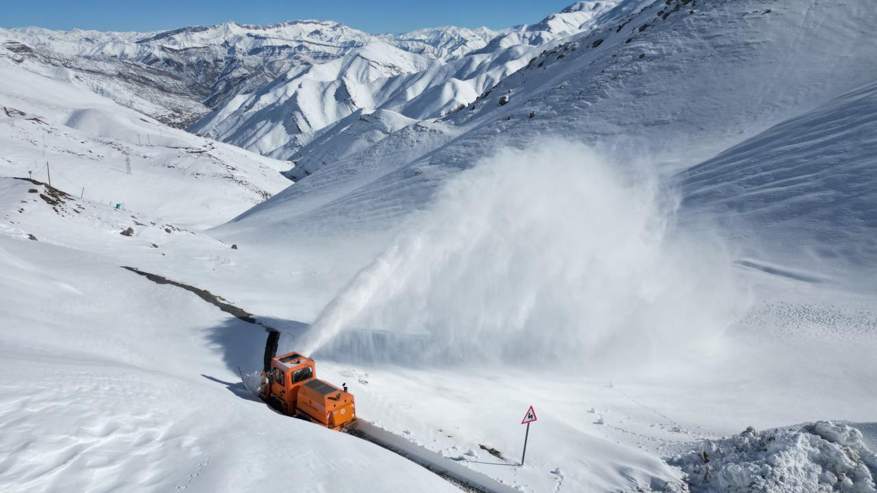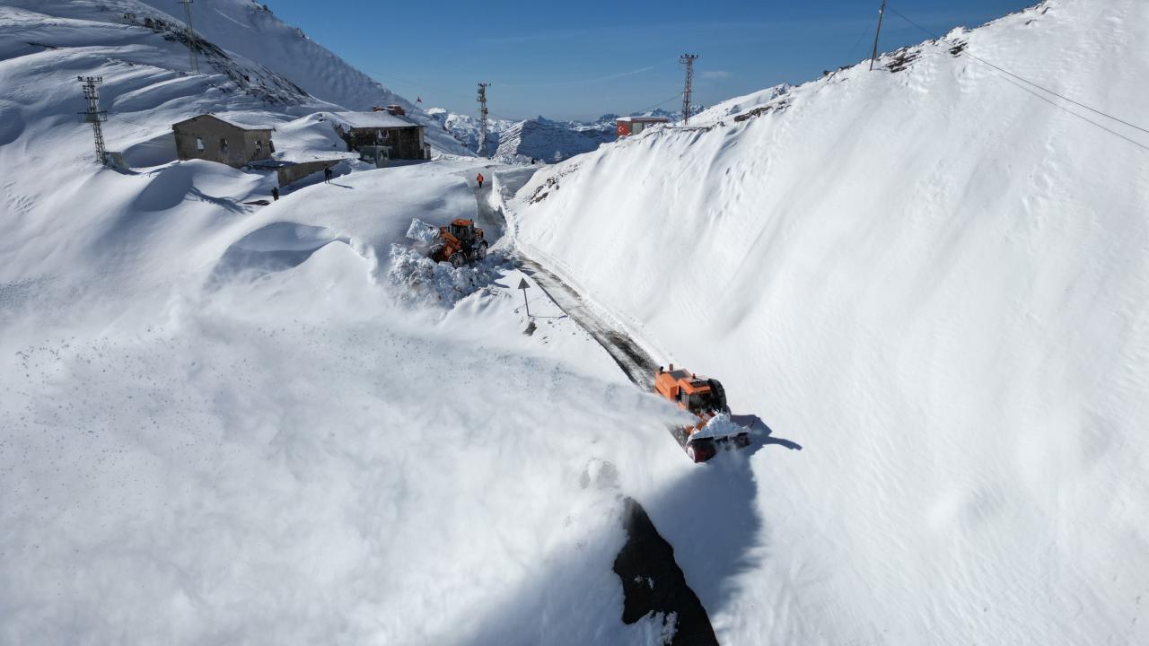 15 gün önce çığ tehlikesine karşı kapatılan yolda kar kalınlığının dozer boyunu aştığı zirve noktada ekipler kardan tüneller açarak ilerliyor.