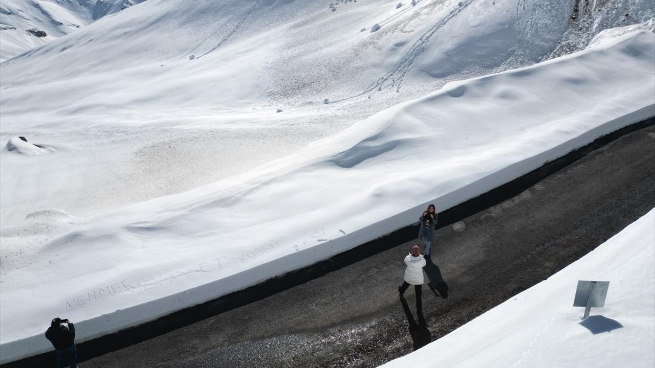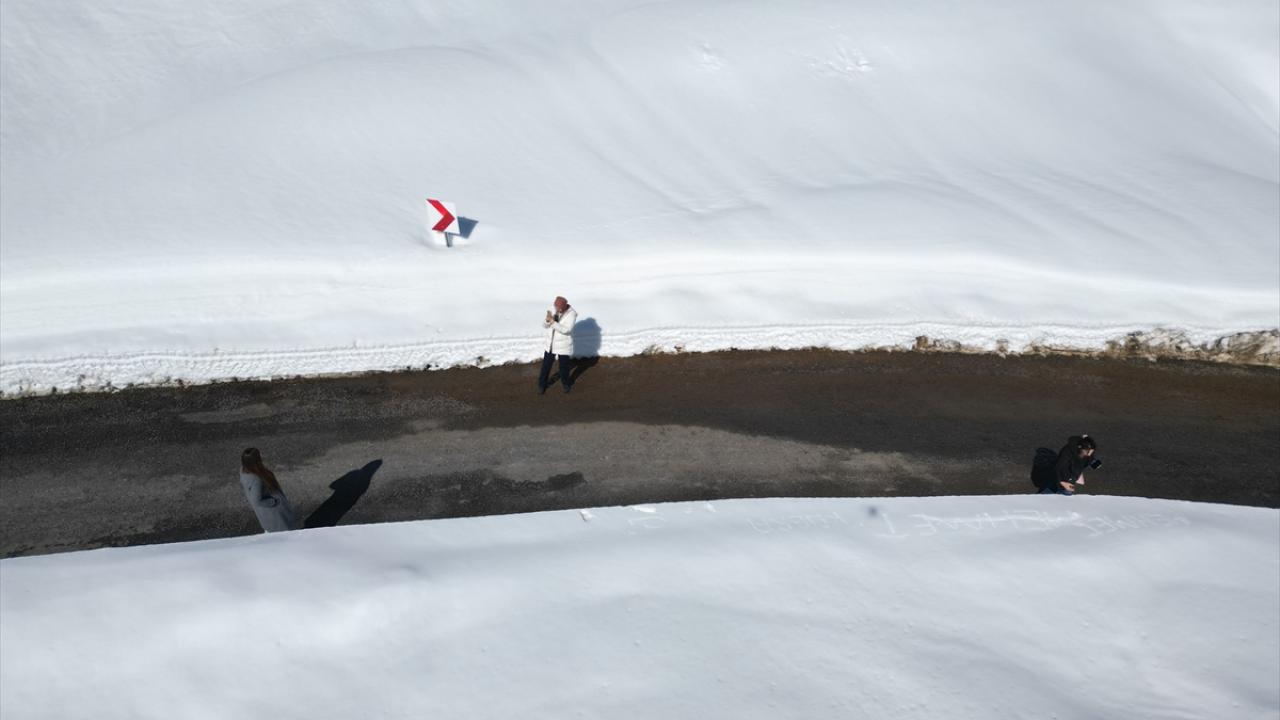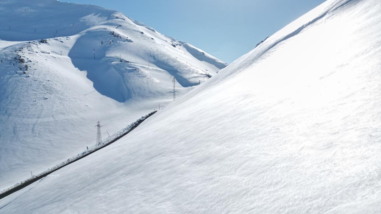 Kar nedeniyle kapanan ve Karayolları 9. Bölge Müdürlüğü 95. Şube Şefliği ekiplerince yapılan çalışmalarla 4 gün önce ulaşıma açılan geçit, dron ile havadan görüntülendi.