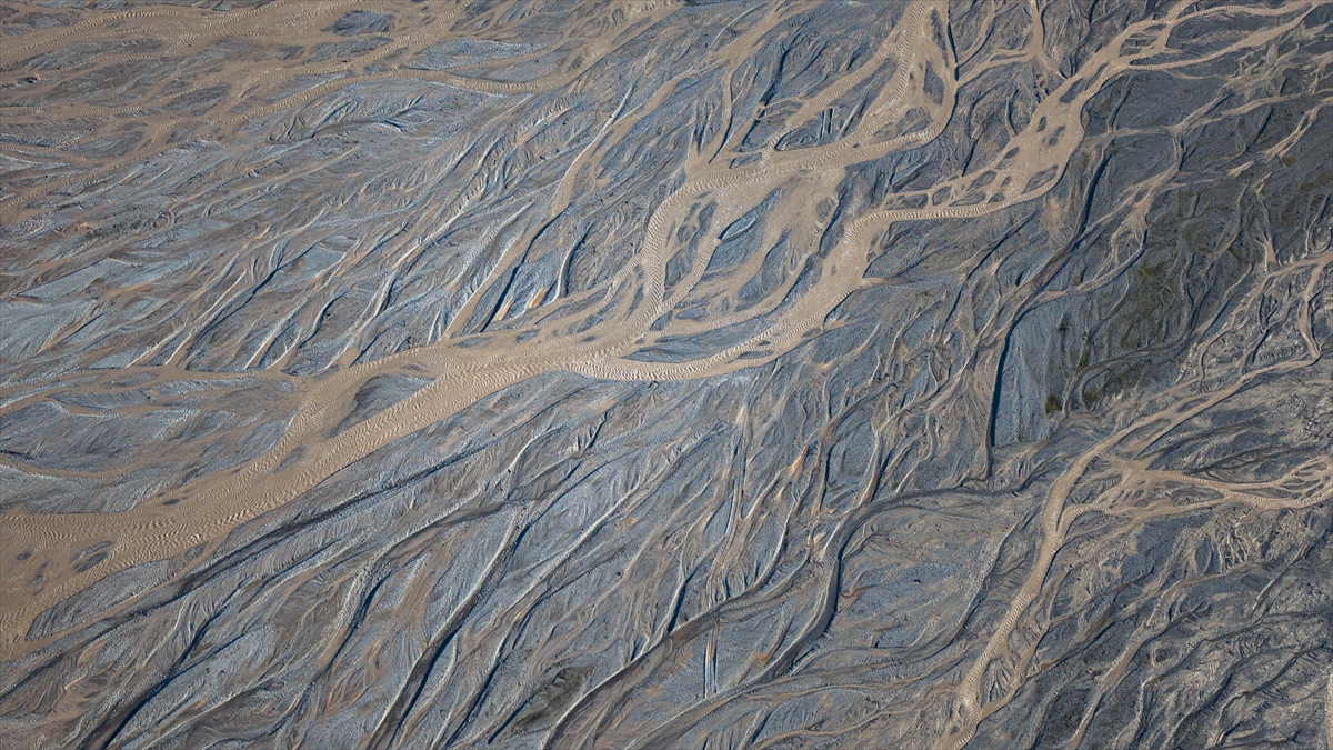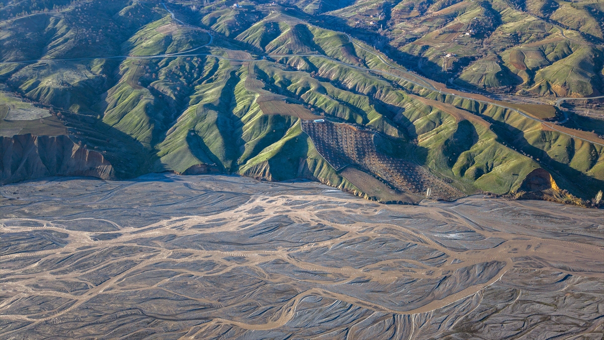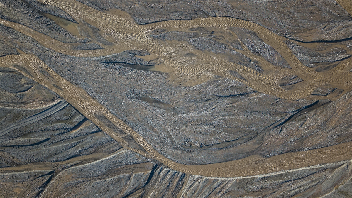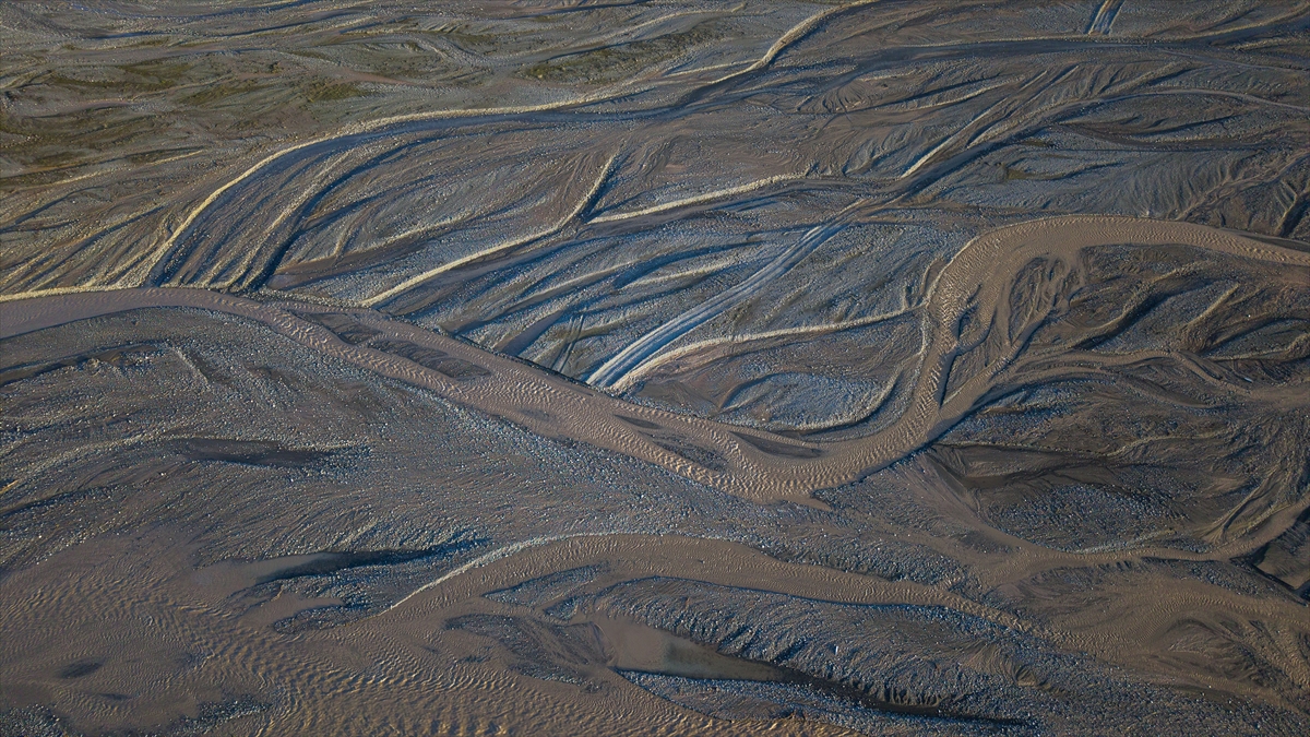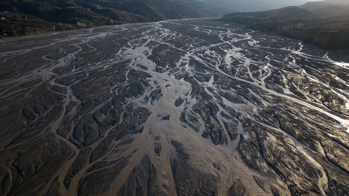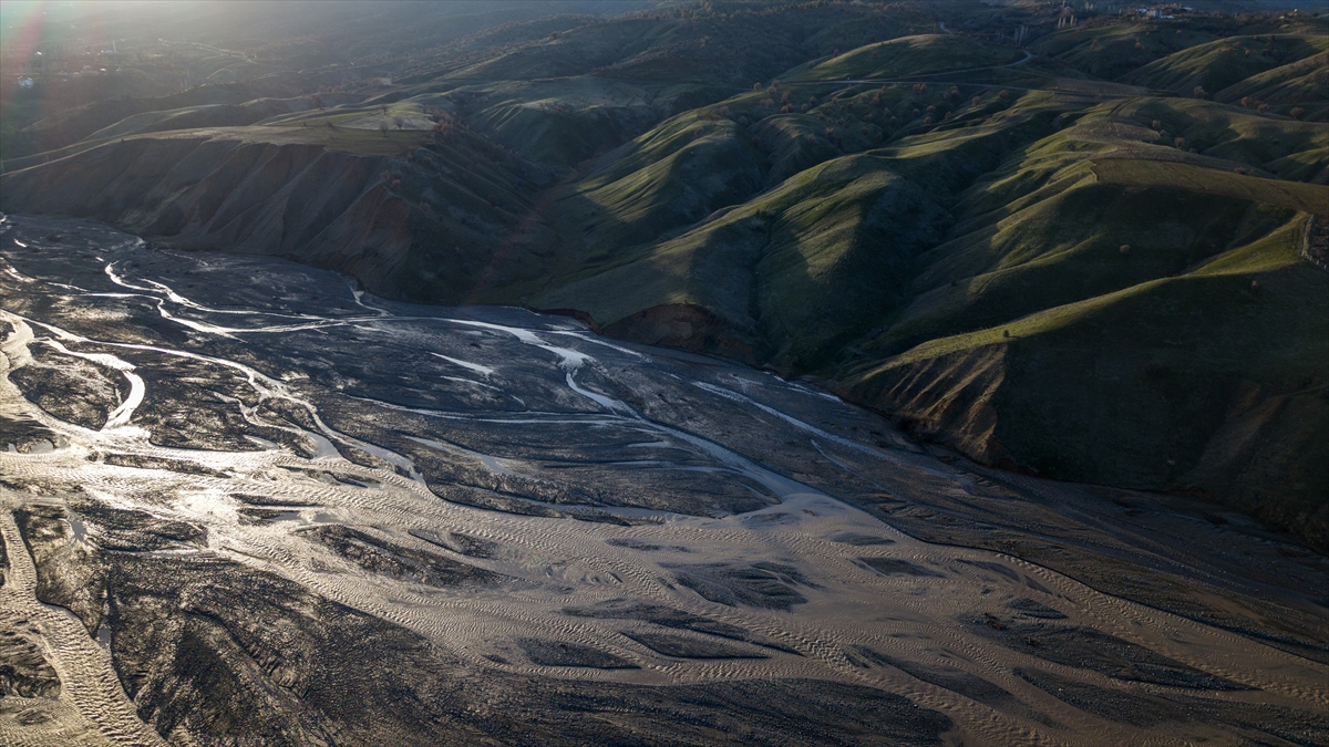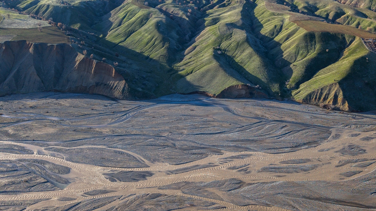 Yüksek rakımlardaki karların erimesiyle yamaçlarda oluşan su izleri ve çay yatağındaki kumlarda meydana gelen doğal desenler, bölgede dikkat çekici görüntüler oluşturuyor.