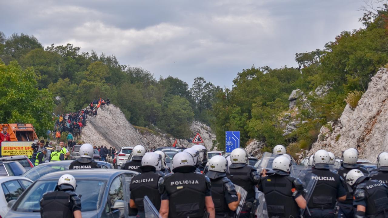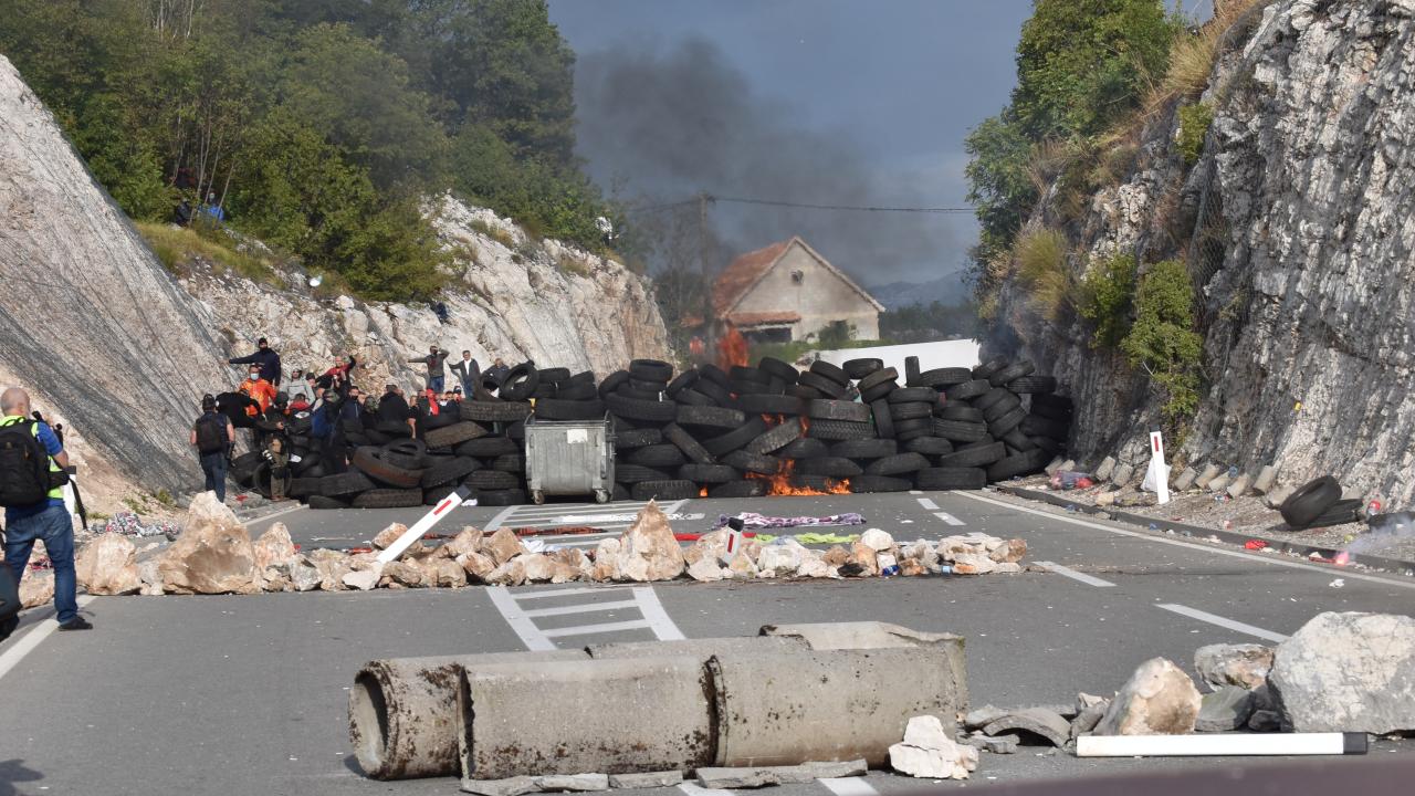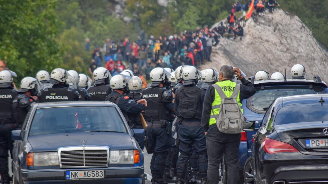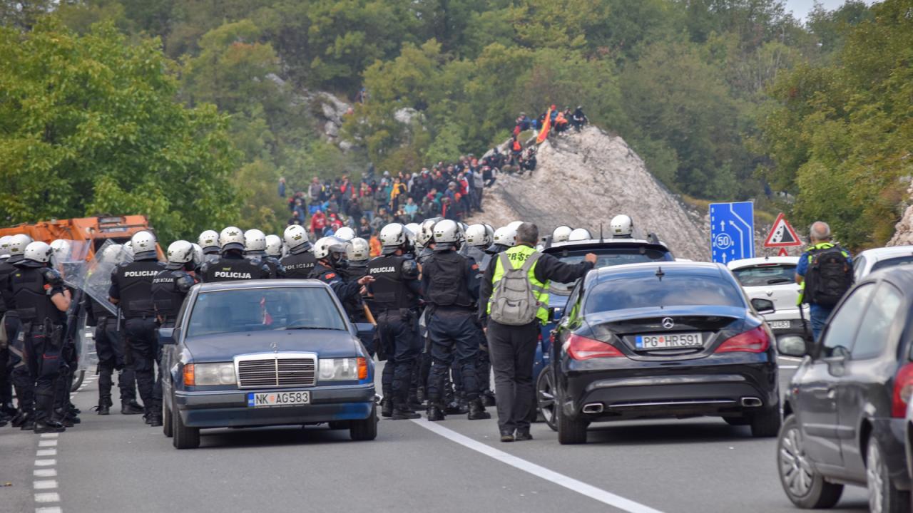 Lastik, konteyner ve taşlarla kapatılan Podgorica-Cetinje yolunu açmaya çalışan güvenlik görevlileri, göz yaşartıcı gazla müdahale ettikleri kalabalığa dağılma çağrısında bulundu.