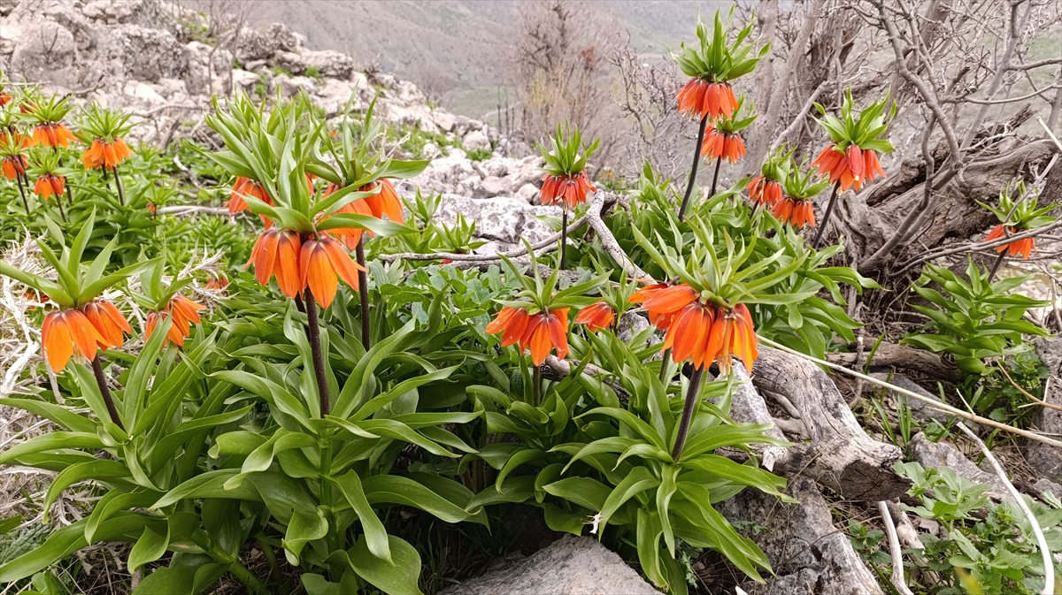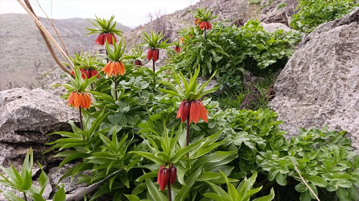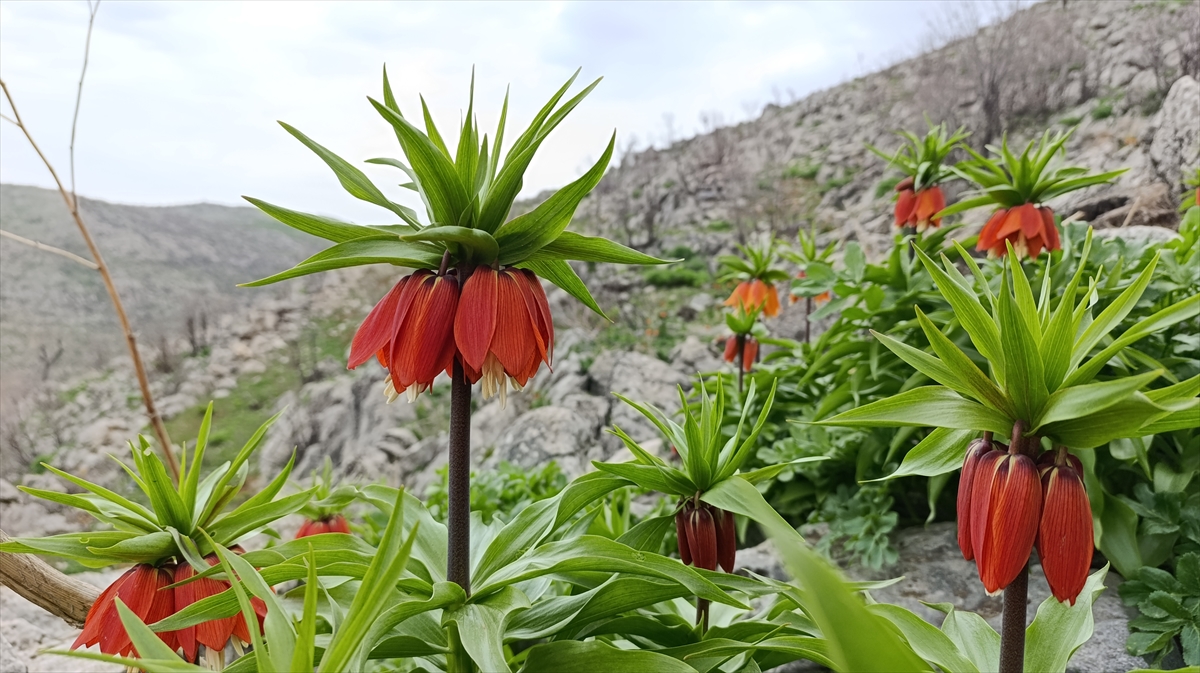 Siirt'in Şirvan ilçesinde ilkbaharın gelişiyle bazı bölgelerde ters laleler açmaya başladı.