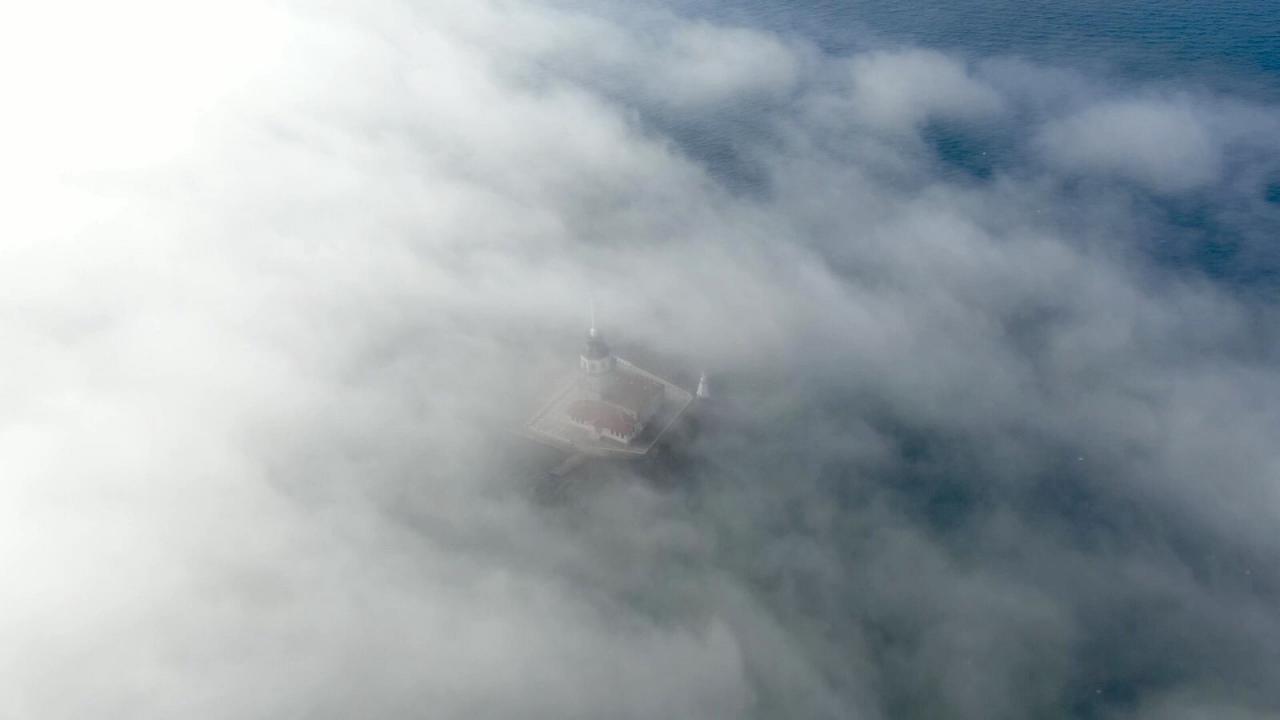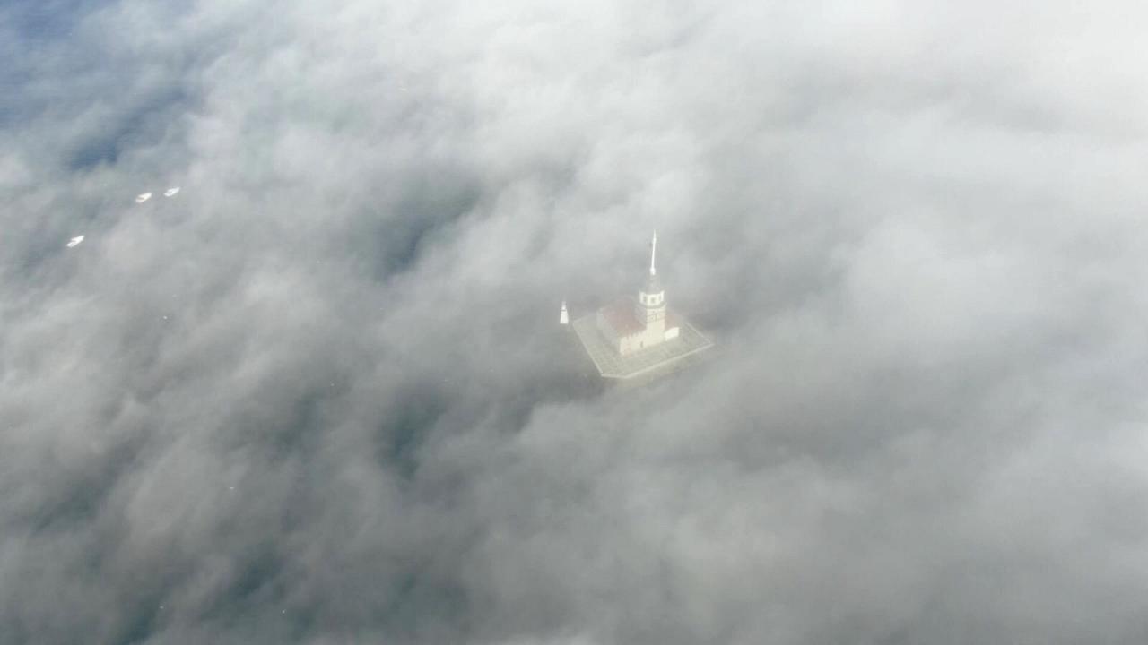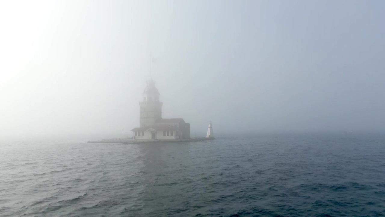 İstanbul'da öğlen saatlerinde etkili olan yoğun sis, güzel manzaralar oluşturdu. Kız Kulesi sisin arasında kayboldu.