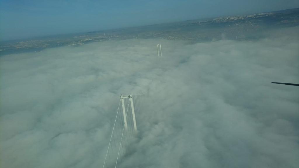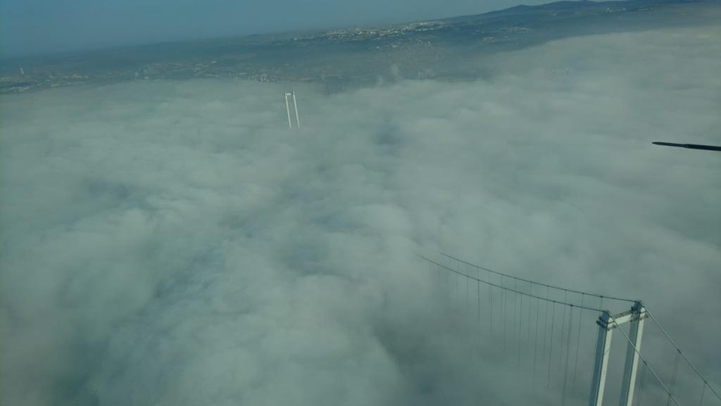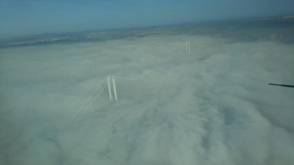 Yoğun sis birçok bölgede etkisini sürdürüyor. Kocaeli'de etkili olan siste Osmangazi Köprüsü kayboldu.