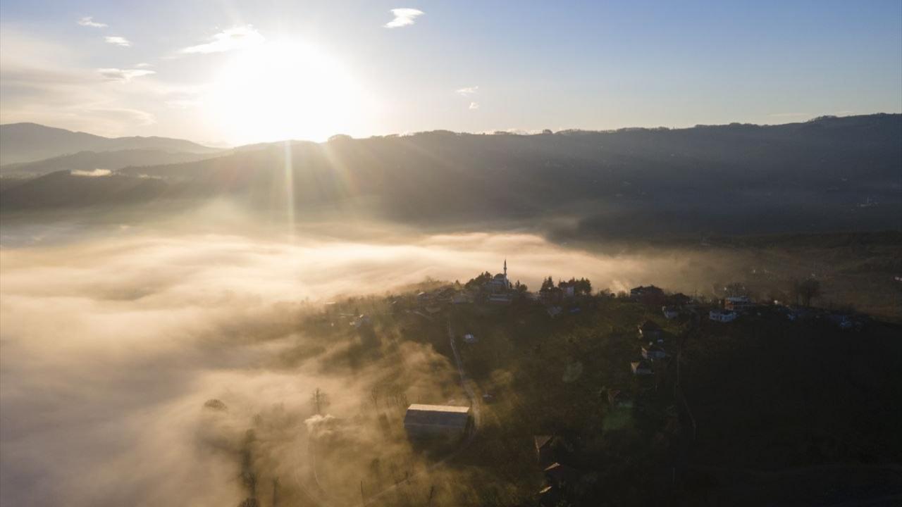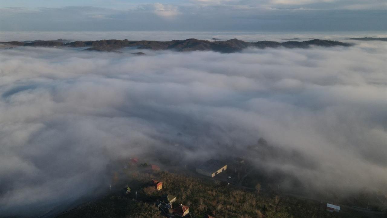 Sakarya'nın Kocaali ve Hendek ilçeleri arasında bulunan 900 rakımlı Çam Dağı'nın üzerini kaplayarak dağların eteklerine tırmanan sis, güzel görüntüler oluşturdu.