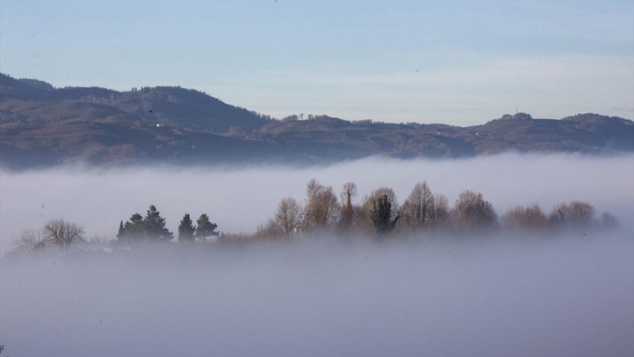 Sakarya`nın Kocaali ve Hendek ilçeleri arasında bulunan 900 rakımlı Çam Dağı`nın bitki örtüsü de bölgede etkili olan sisin içinde görüntülendi.