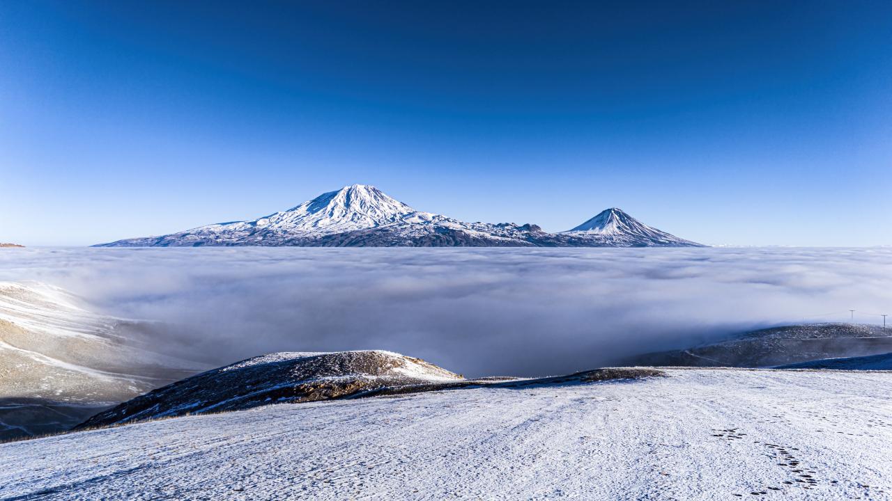 ''Türkiye'nin çatısı'' olarak nitelendirilen Ağrı Dağı'nın etrafı sisle kaplandı.