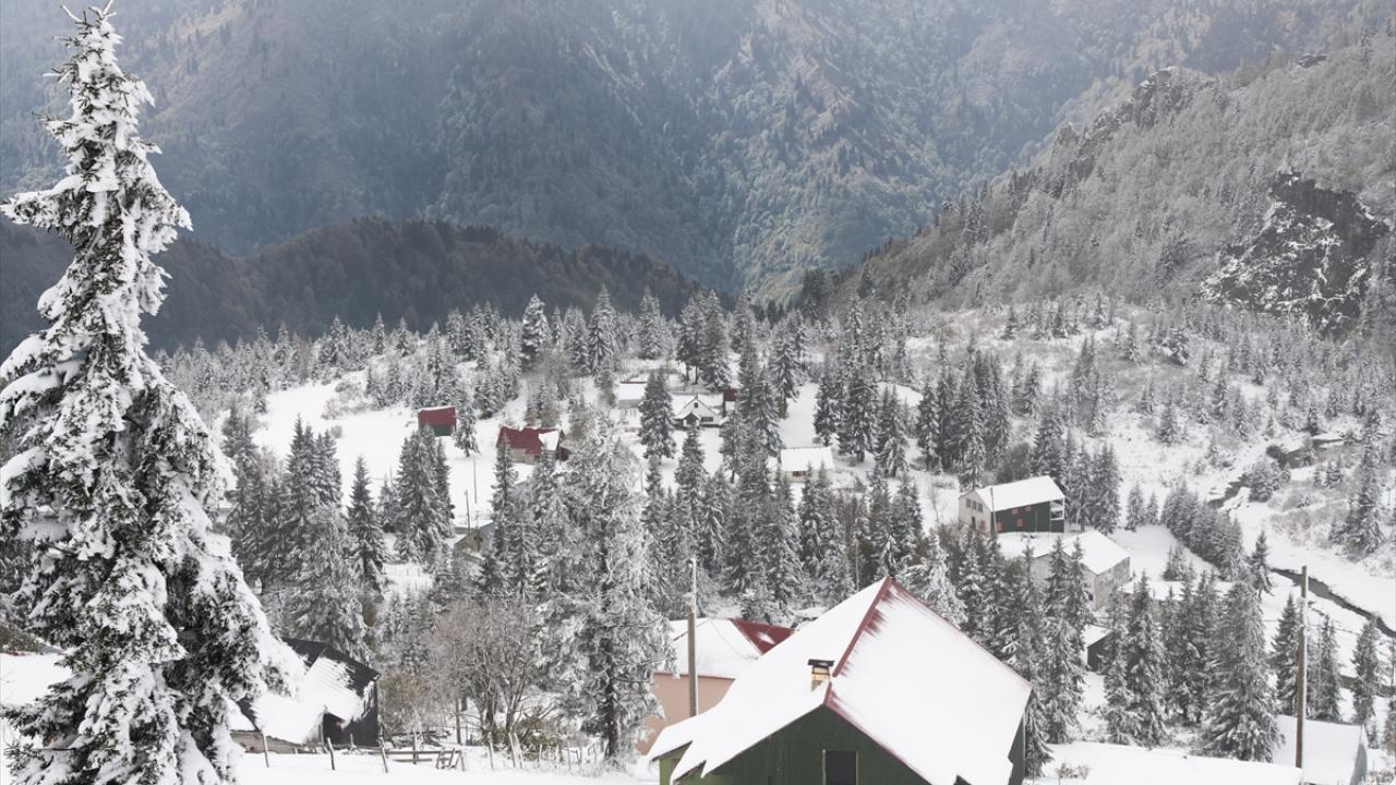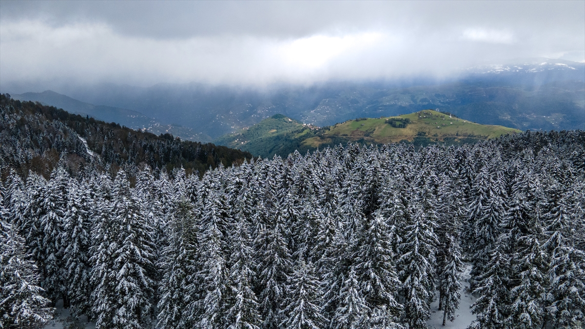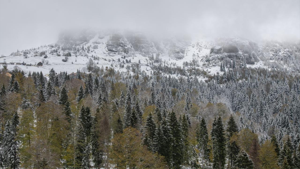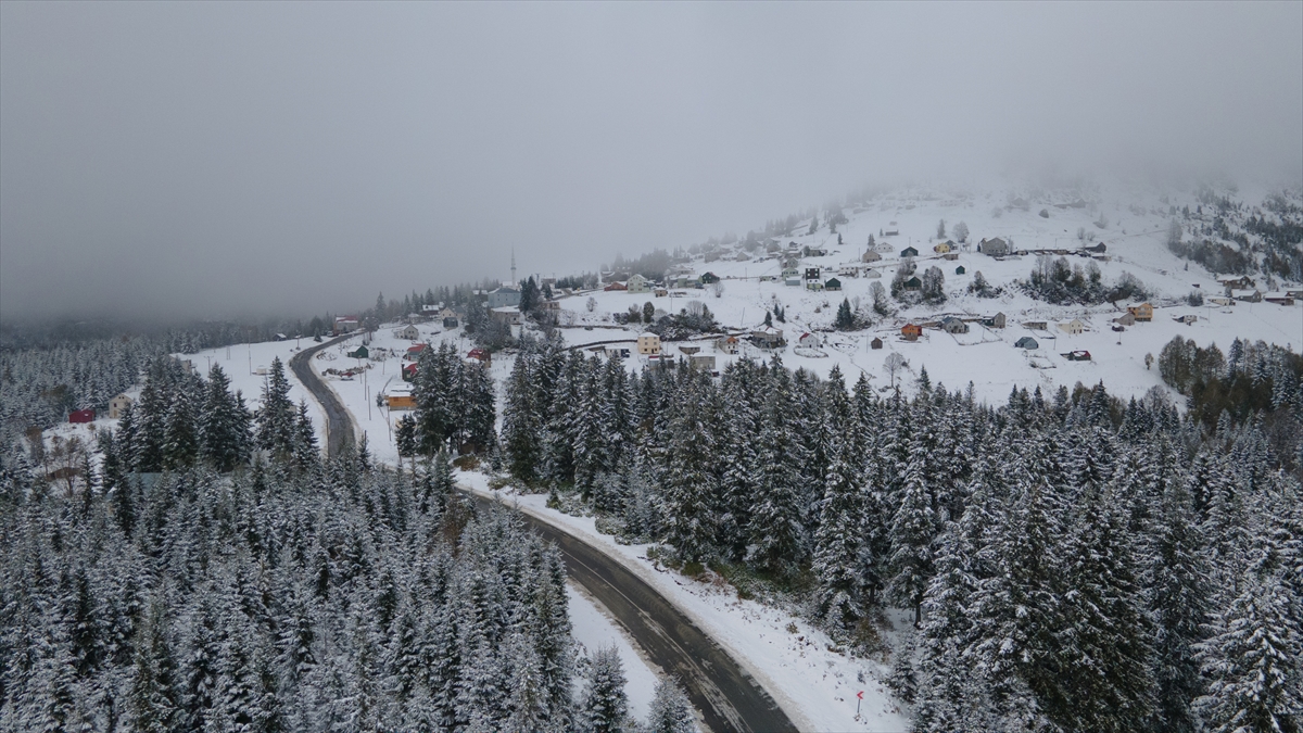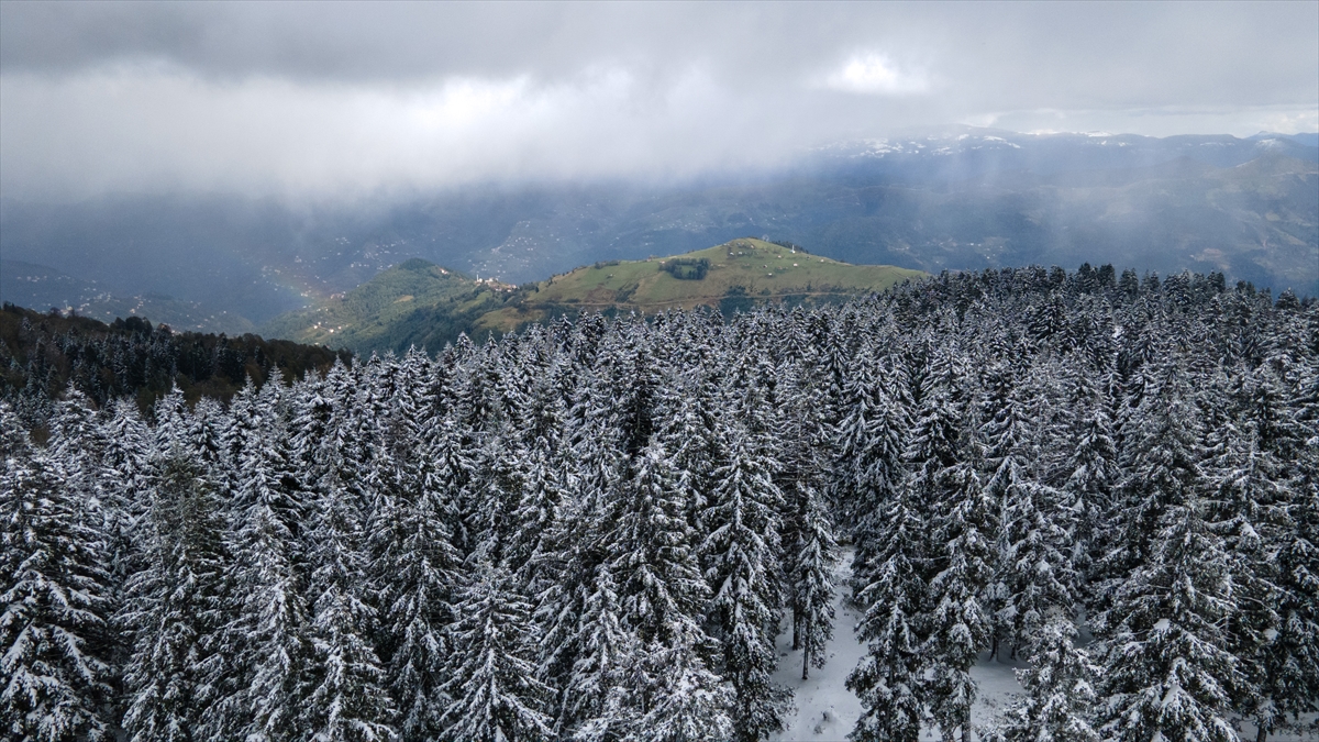 Trabzon ve Giresun sınırında yer alan 2 bin 182 rakımlı Sis Dağı Yaylası, kar yağışıyla beyaza büründü.