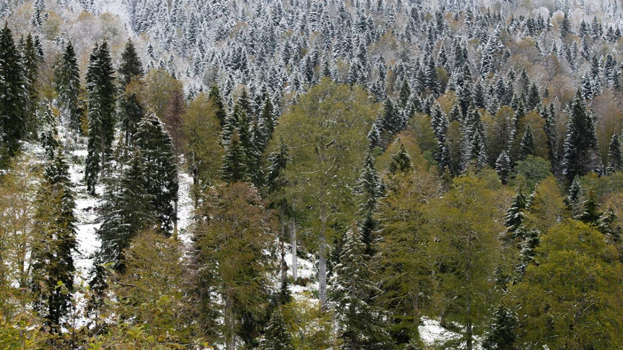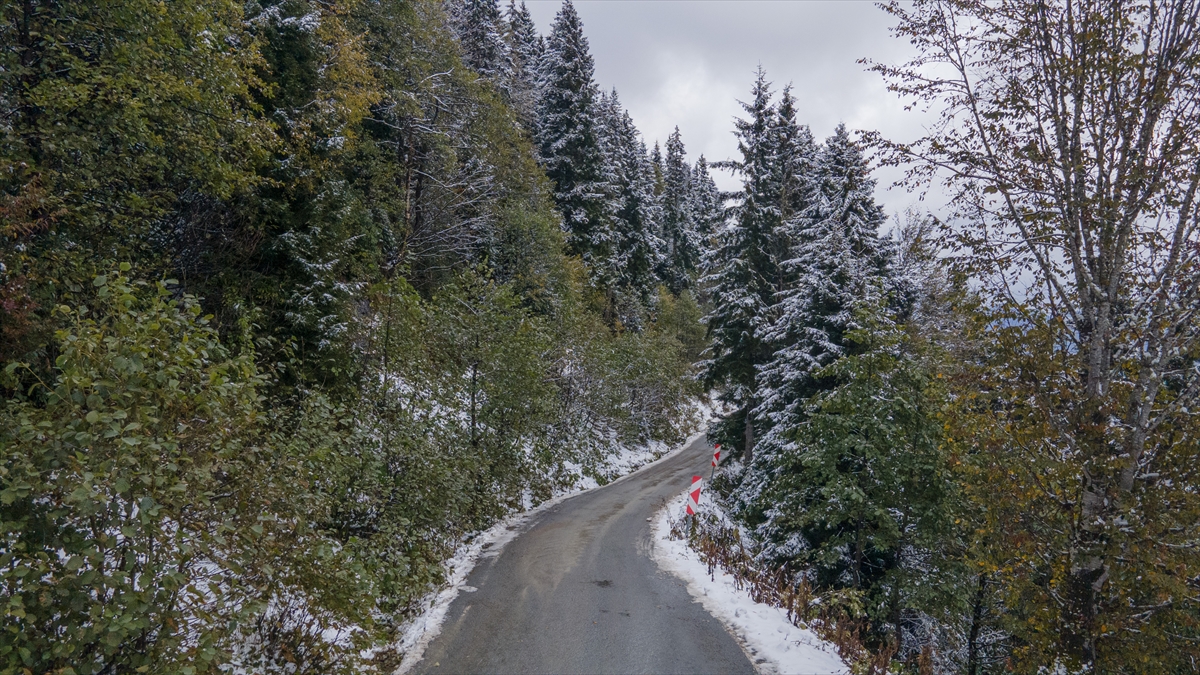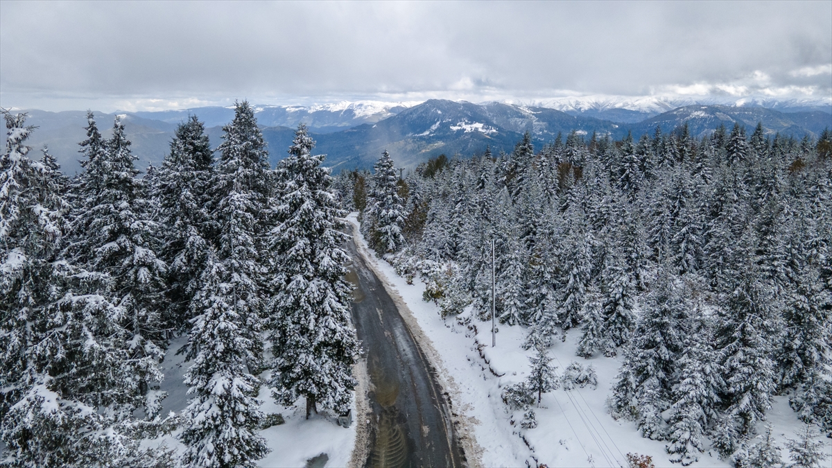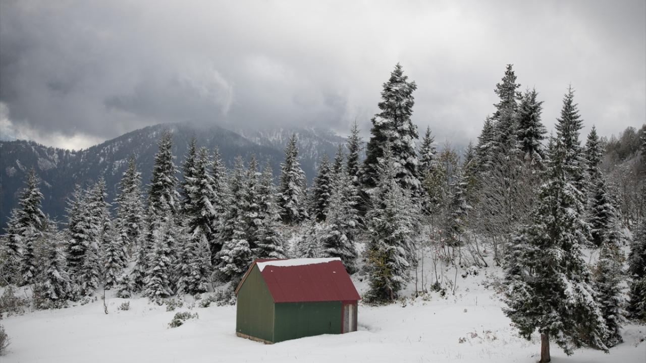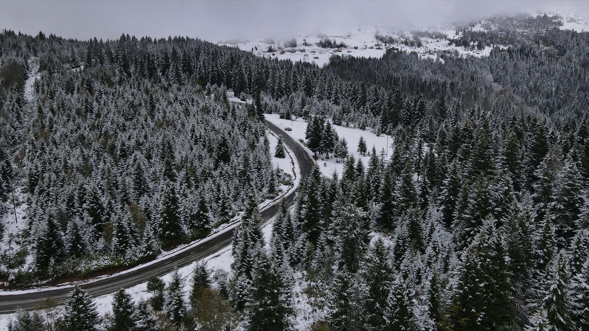 Trabzon ve Giresun sınırında yer alan 2 bin 182 rakımlı Sis Dağı Yaylası, kar yağışıyla beyaza büründü.