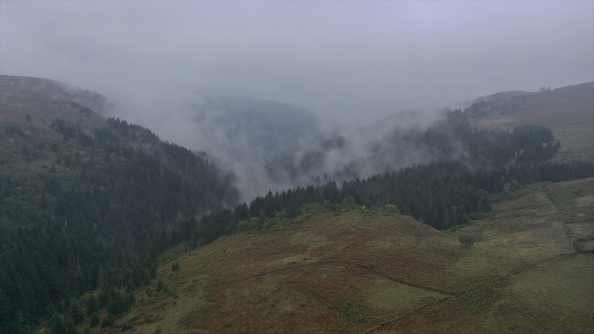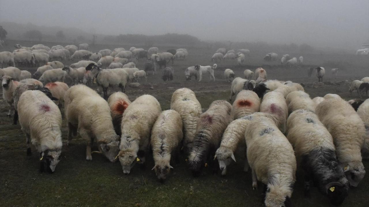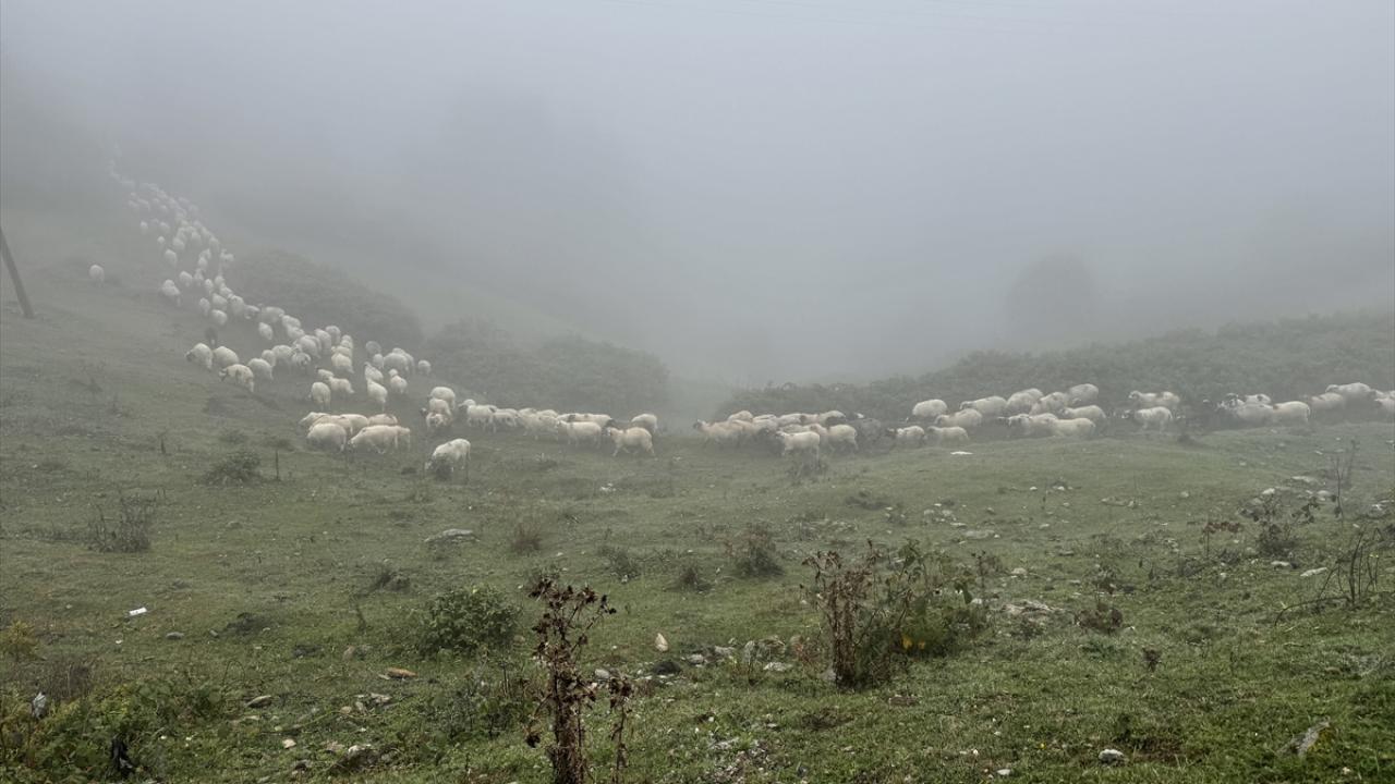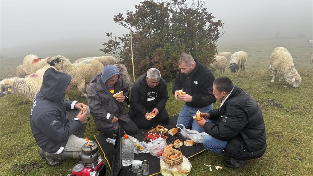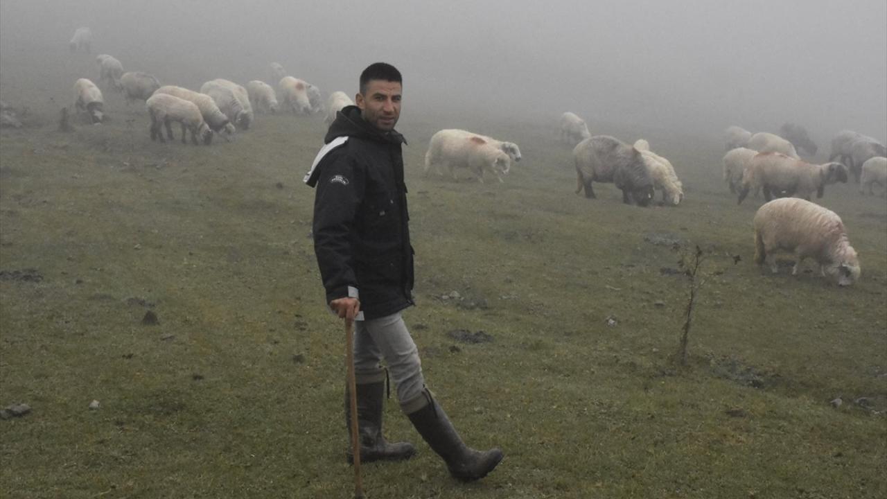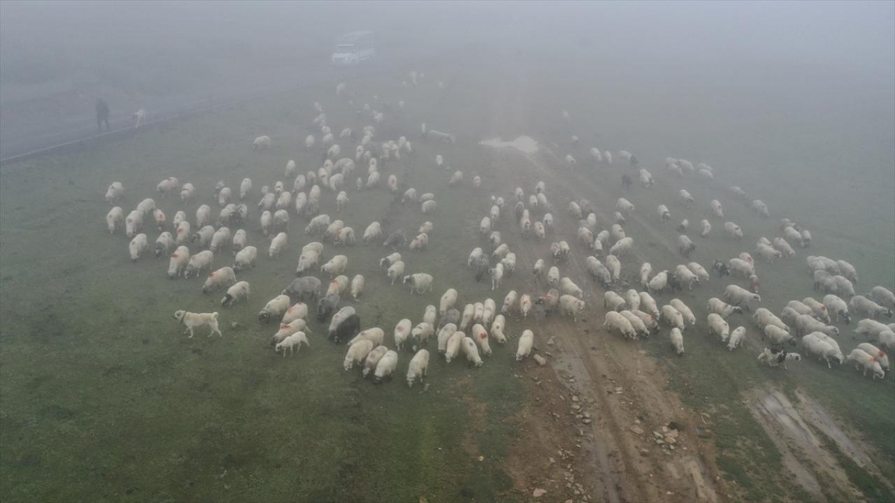 Karagöl Yaylası`ndan sabahın erken saatlerinde sürüsüyle yola çıktıklarını dile getiren Büber, "Akşam Çambaşı Yaylası`nda kaldık. Şimdi yavaş yavaş duman ve çise eşliğinde gidiyoruz. Yolculuk zor geçiyor. Yürüyorsun, koyunu takip etmek gerekiyor. Duman, çise, tam ayı ve kurt havası. Onun için zor." dedi.