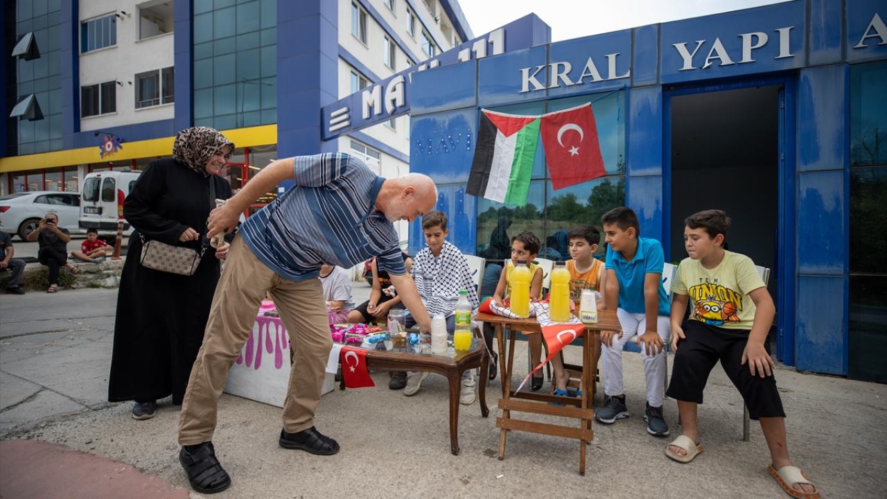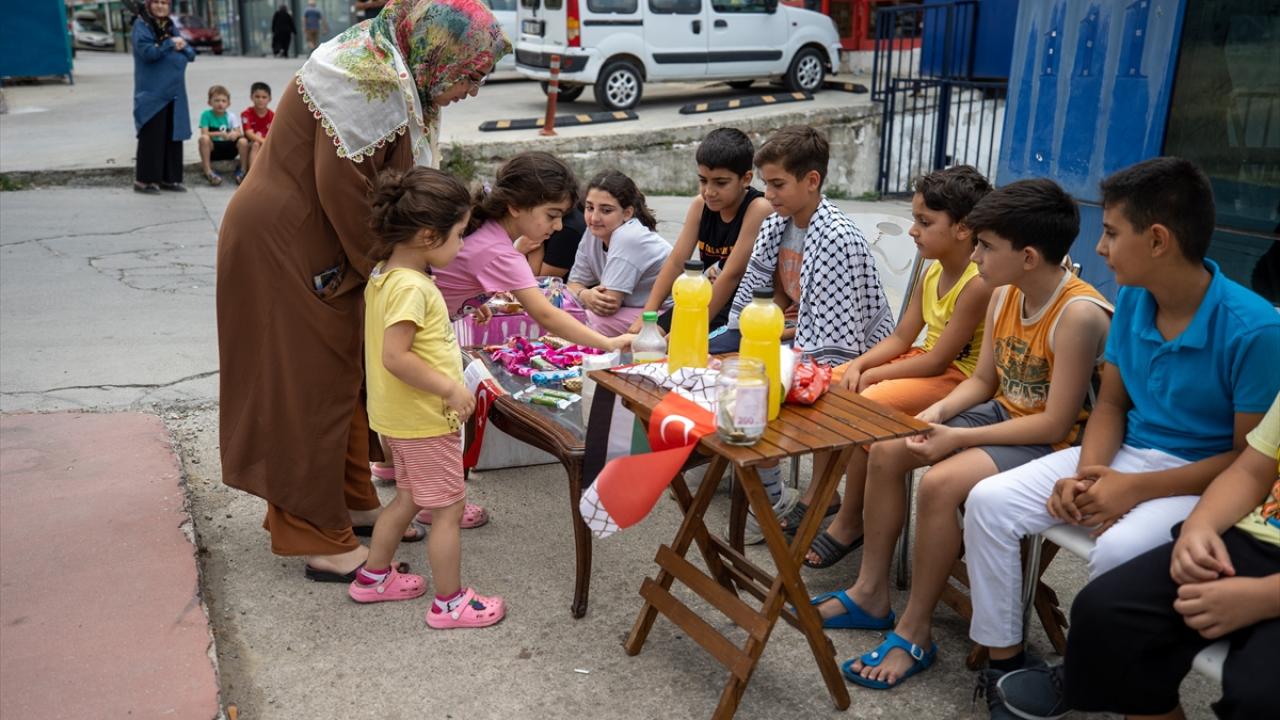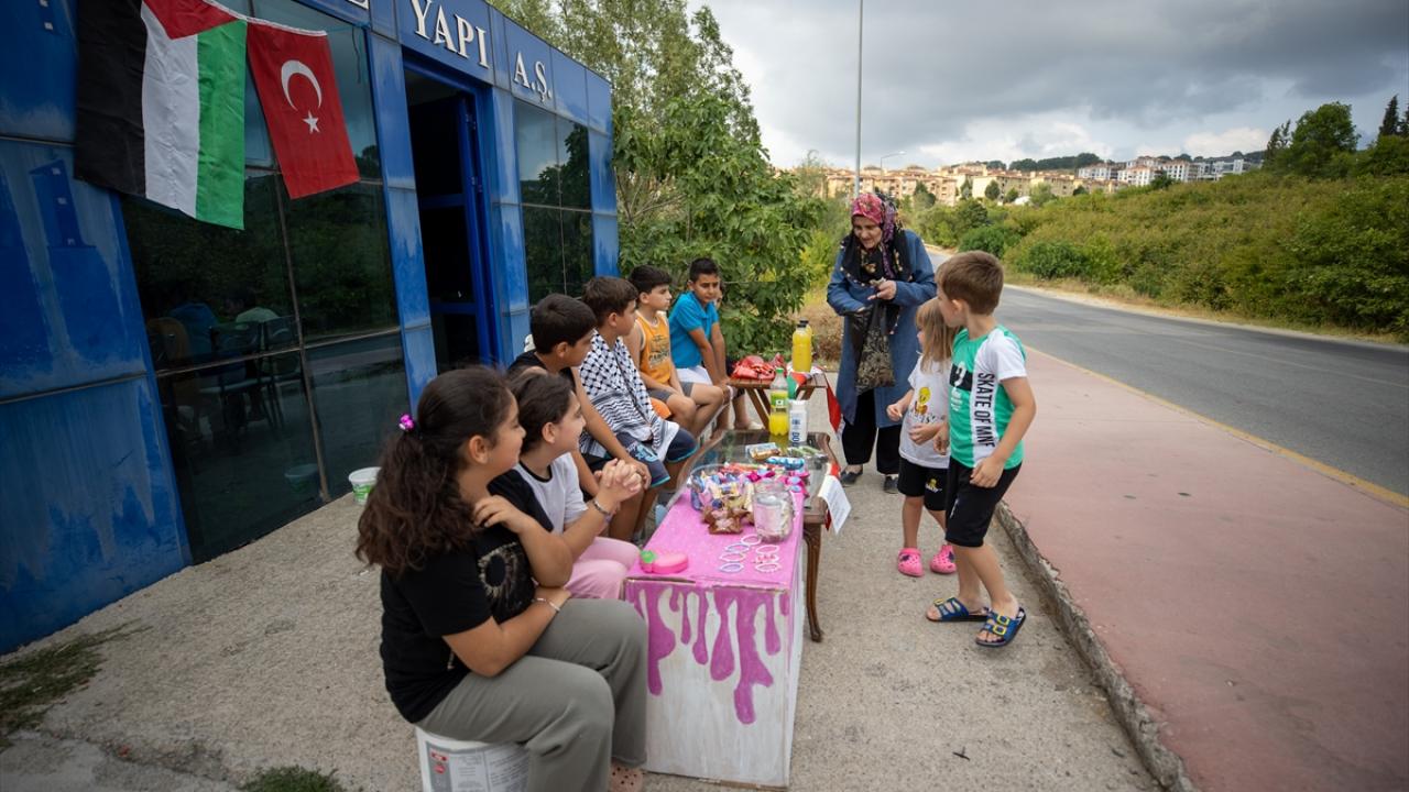 Sakarya'da yaşları 8 ila 11 arasında değişen çocuklar, oturdukları sitedeki oyun sahasının yenilenmesi için kurdukları stantta sattıkları ürünlerin gelirini İsrail'in saldırıları ve insani yardım girişini kısıtlayan sıkı ablukası altında bulunan Gazze'deki akranlarına bağışladı.