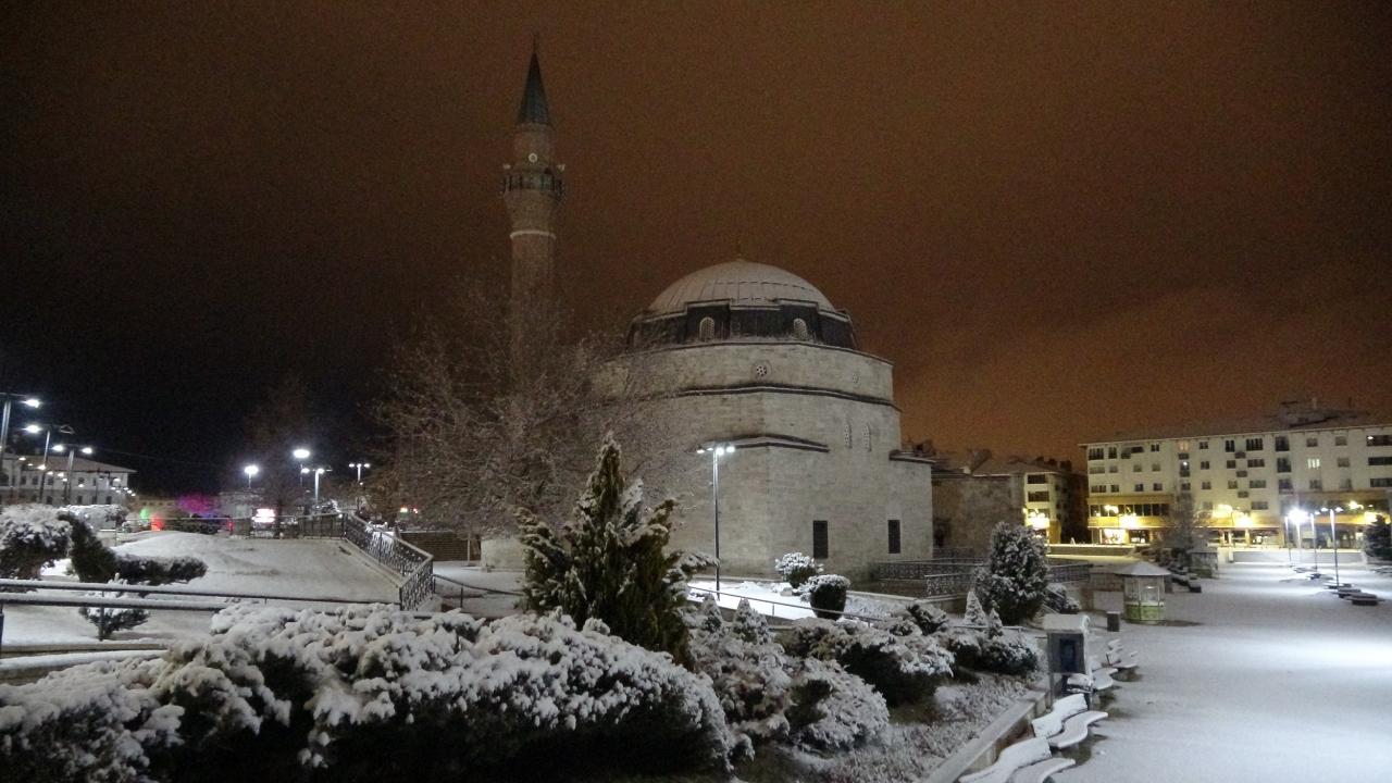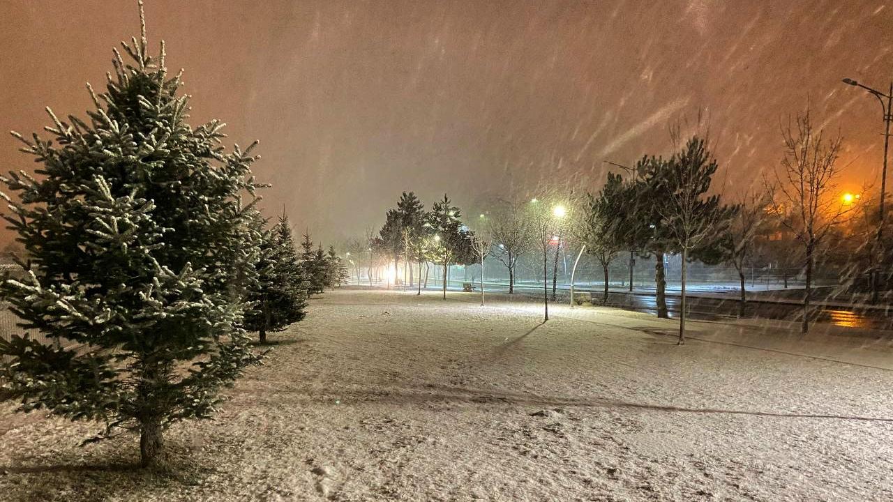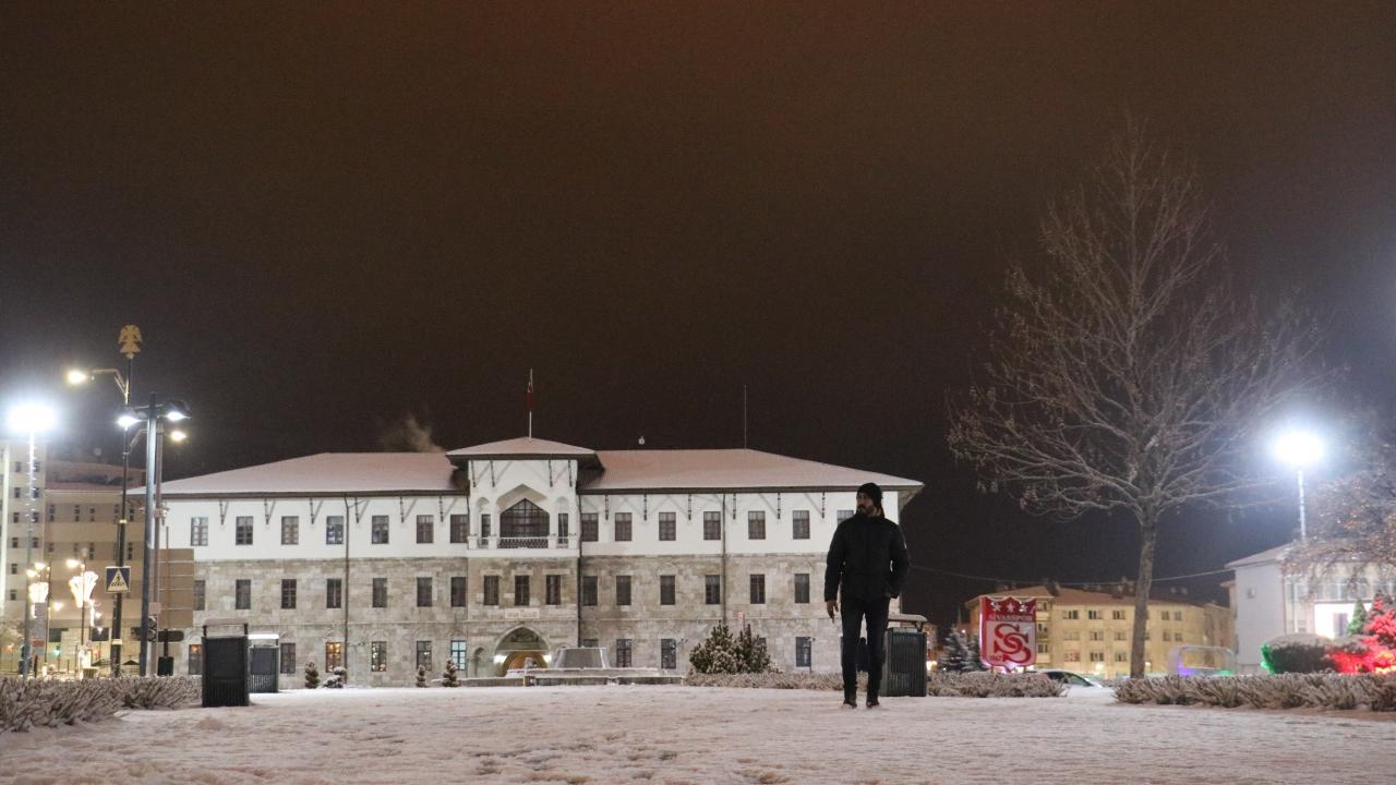 Sivas'ta, akşam saatlerinde kar yağışı etkili olmaya başladı. Kar yağışıyla beyaza bürünen Cumhuriyet Meydanı ile Muhsin Yazıcıoğlu Parkı'nda güzel görüntüler oluştu.