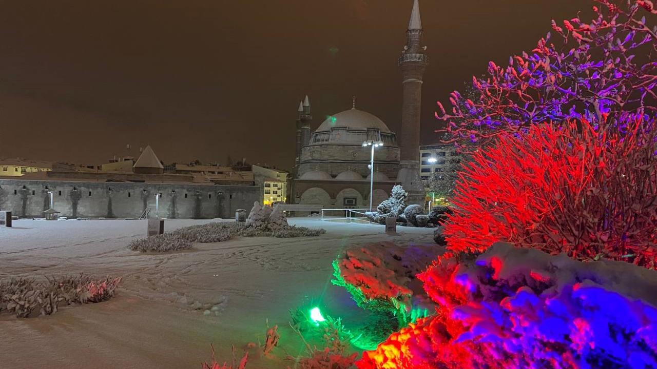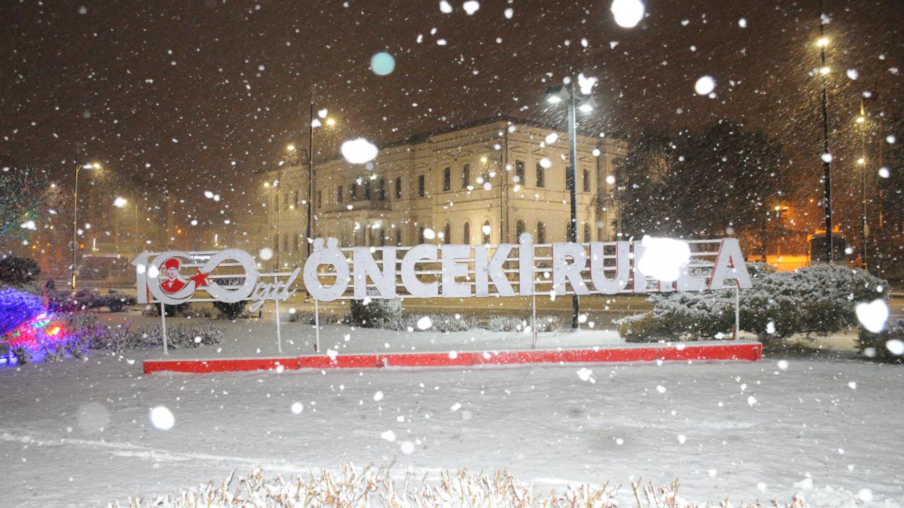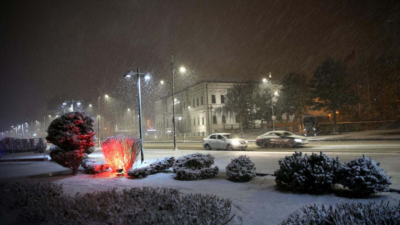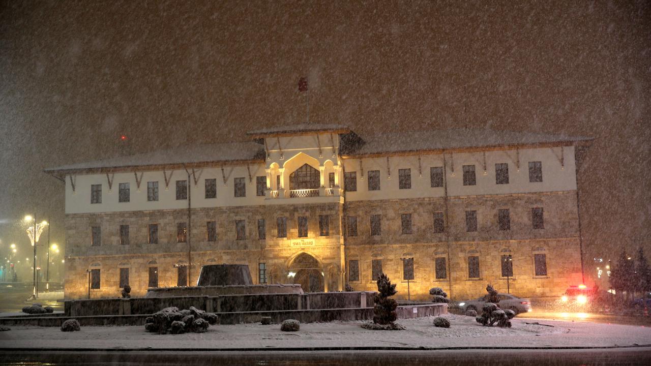 Sivas'ta, akşam saatlerinde kar yağışı etkili olmaya başladı. Kar yağışıyla beyaza bürünen Cumhuriyet Meydanı ile Muhsin Yazıcıoğlu Parkı'nda güzel görüntüler oluştu.
