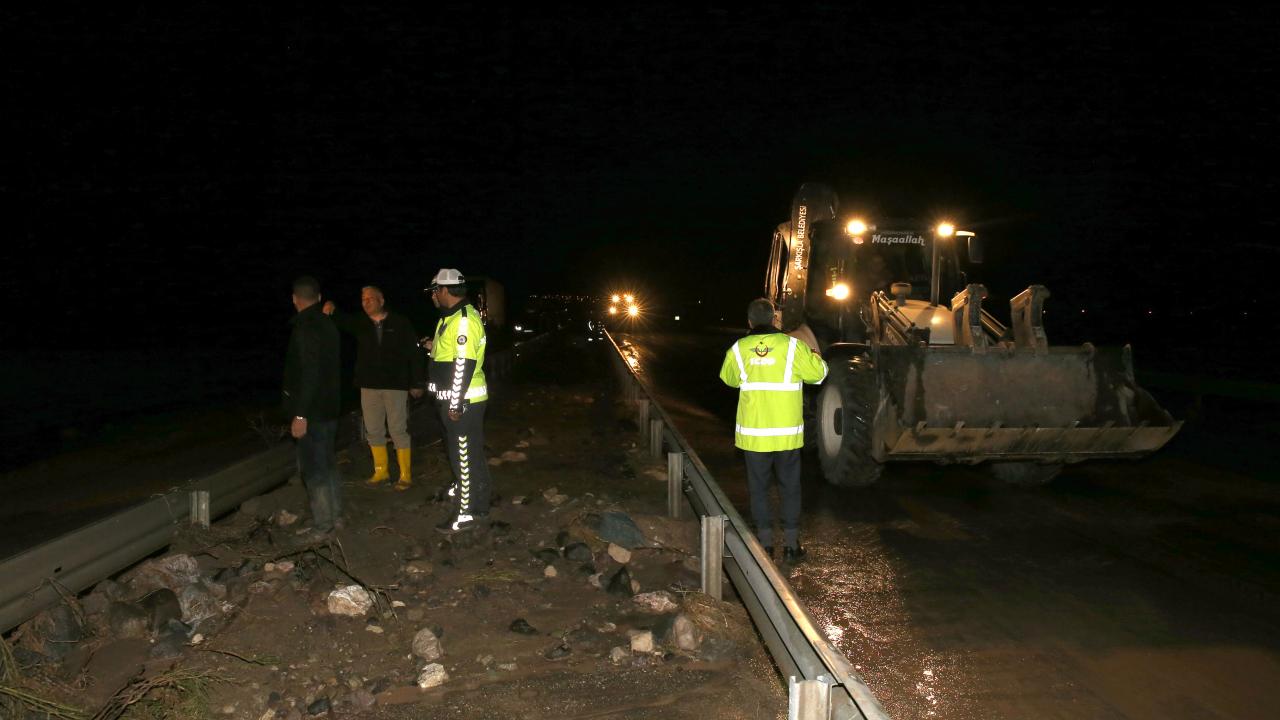 Şiddetli yağışın getirdiği çamur ve molozlar, Sivas-Kayseri kara yolunun Gemerek mevkiinde ulaşımın durmasına neden oldu.