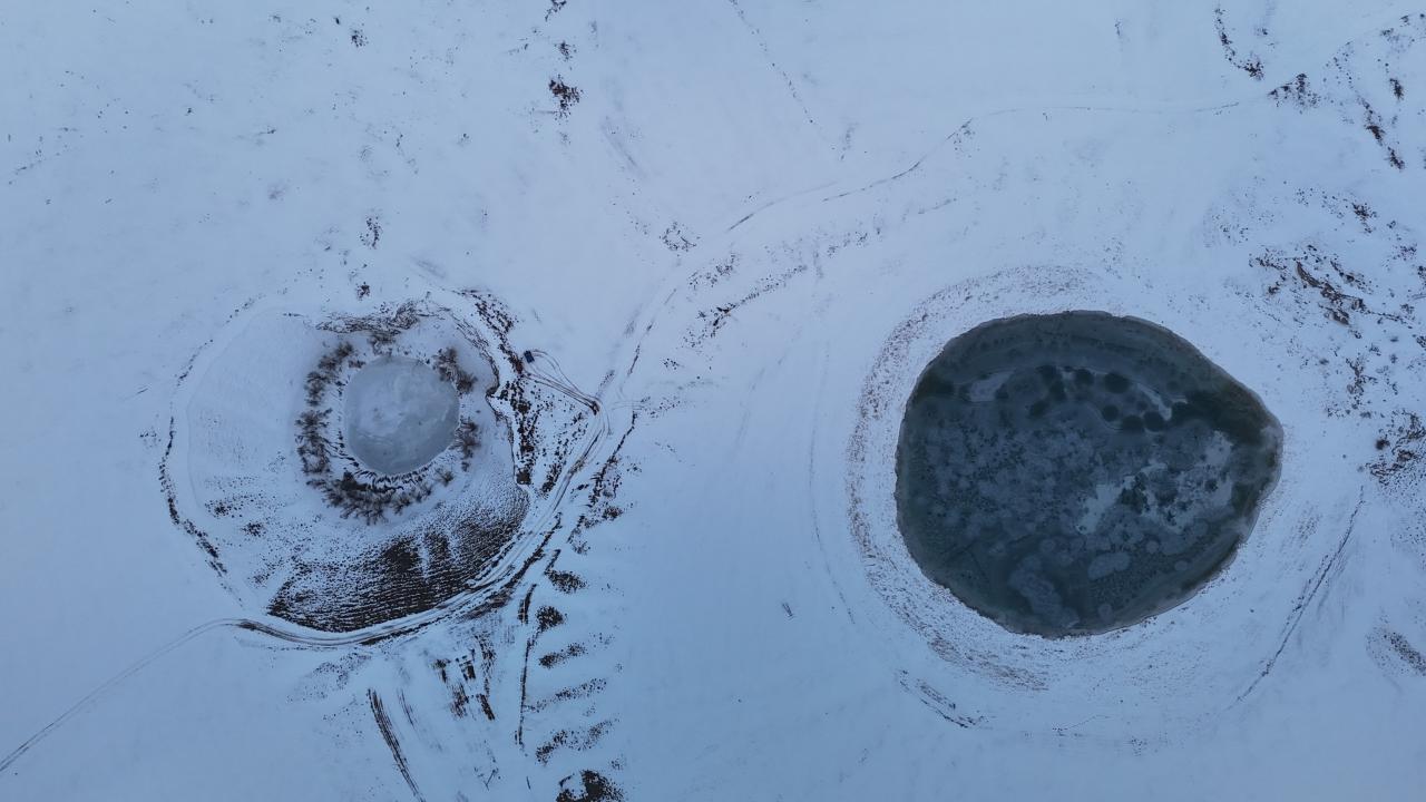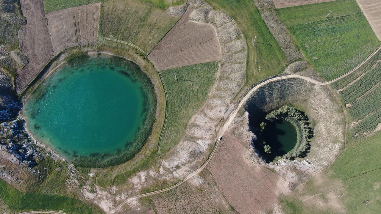 Tepeden bakıldığında gözü andıran göller, dron ile havadan görüntülendi.