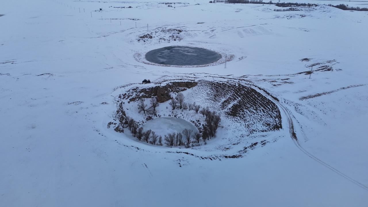 Yaz aylarında binlerce misafirini ağırlayan göller, karla kaplı uçsuz bucaksız arazide mest eden bir görüntü sergiledi.