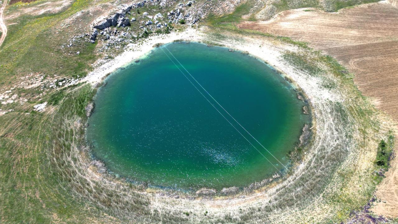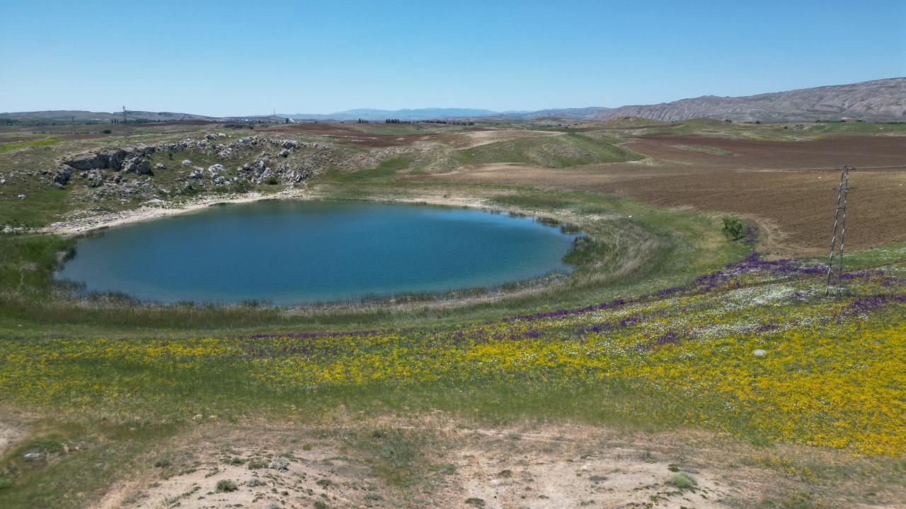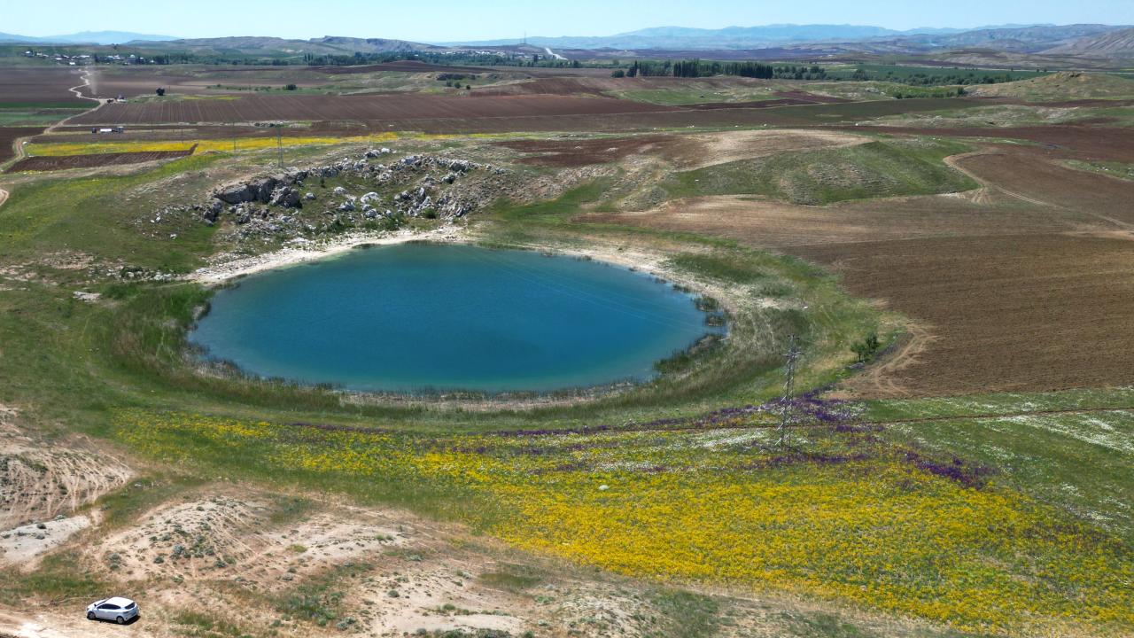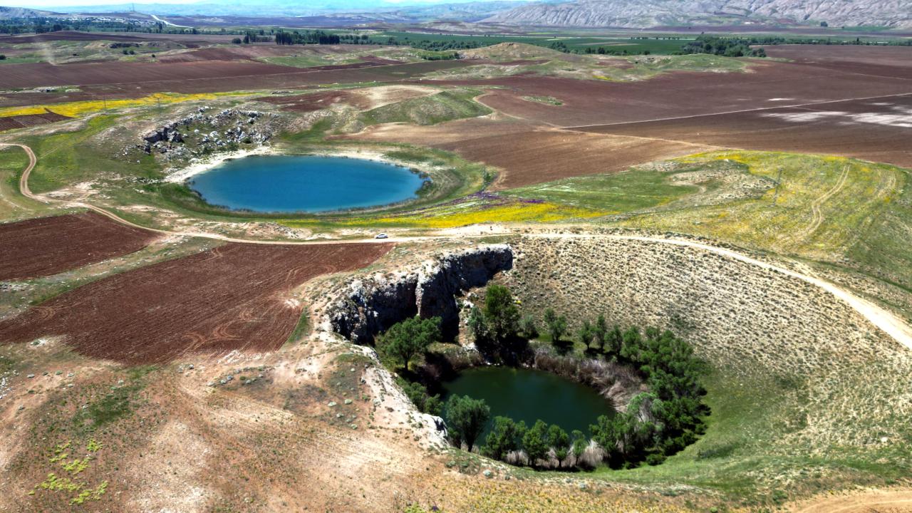 Sivas'ın Zara ilçesinde dipten kaynayan sularla oluşan ve bozkır ortasındaki nazar boncuğunu andıran Ağ Göl ve Kara Göl, bahar renkleriyle dikkat çekiyor.