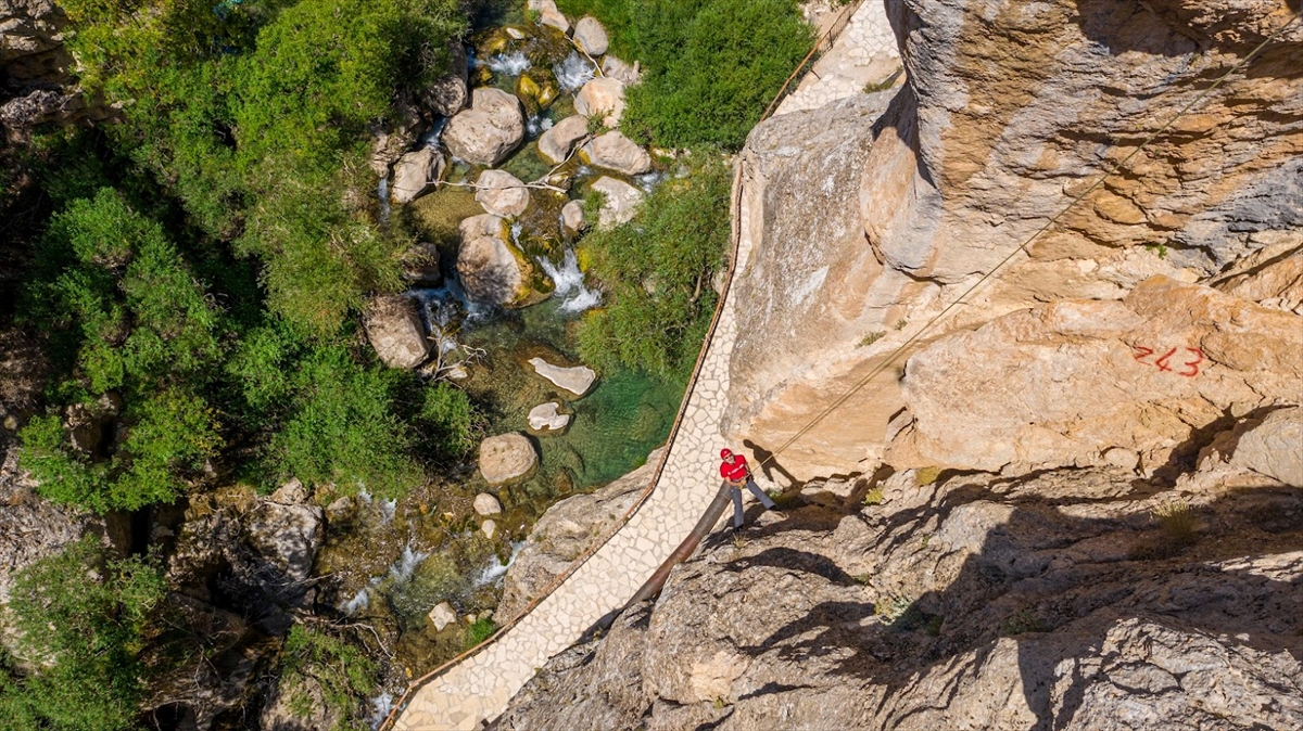 Yaklaşık on yıldır bölgeyi ziyaret ettiklerini anlatan Bekar, "Fırsat buldukça Şuğul Kanyonu`na gelip kaya tırmanışı, kayalardan inişler yapıyoruz. Tırmanış alanlarında istasyon kurup, sistem ayarlayıp iniş çıkış çalışmaları gerçekleştiriyoruz." ifadelerini kullandı.