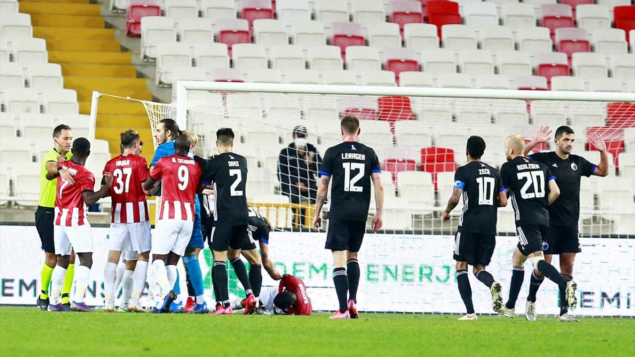 Danimarka temsilcisi, ilk yarısı golsüz sona eren maçın 55. dakikasında Diks ile öne geçti. Sivasspor bu gole 4 dakika sonra Leke James ile karşılık verdi ve skora denge getirdi.