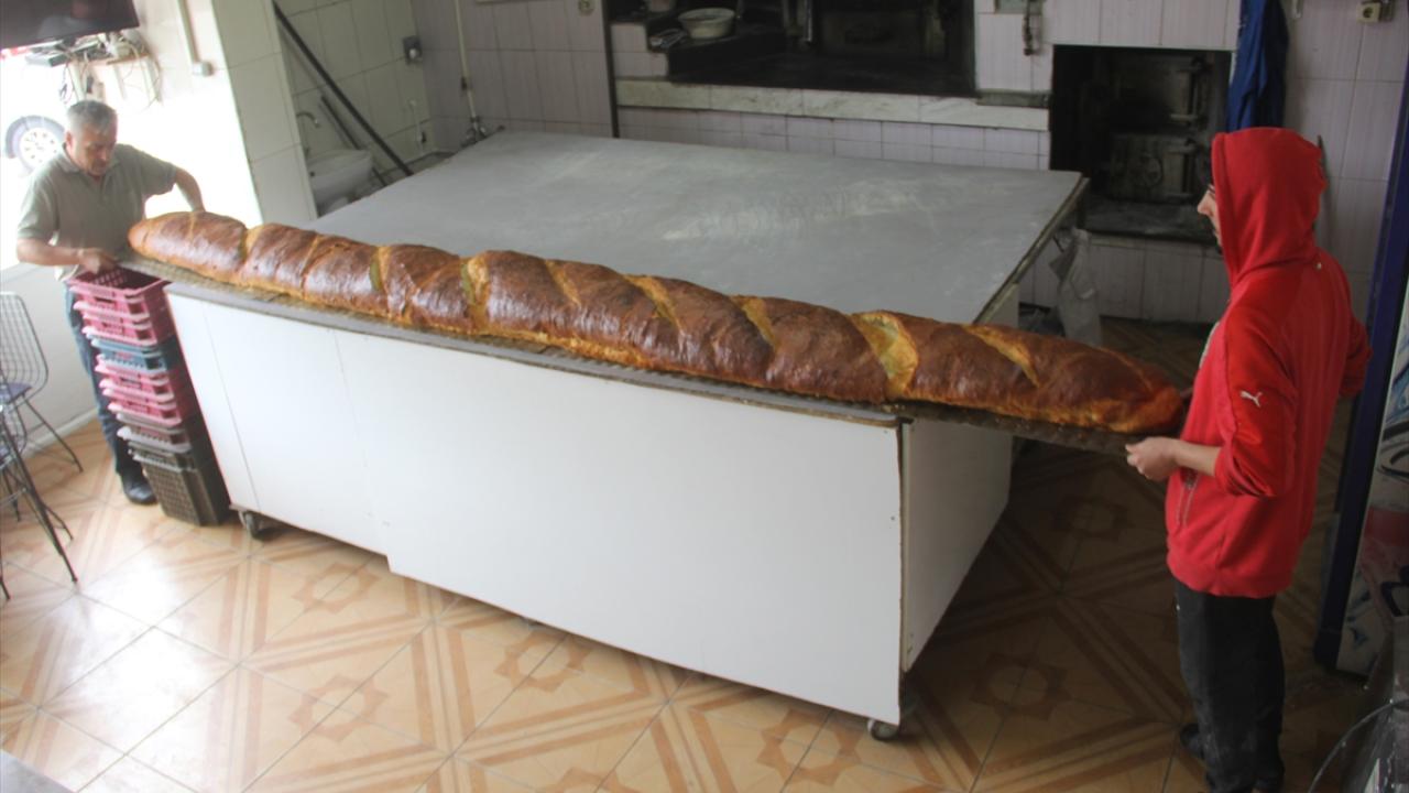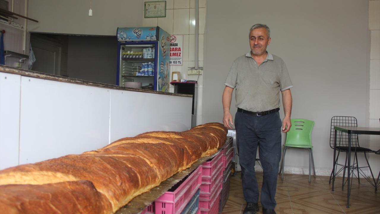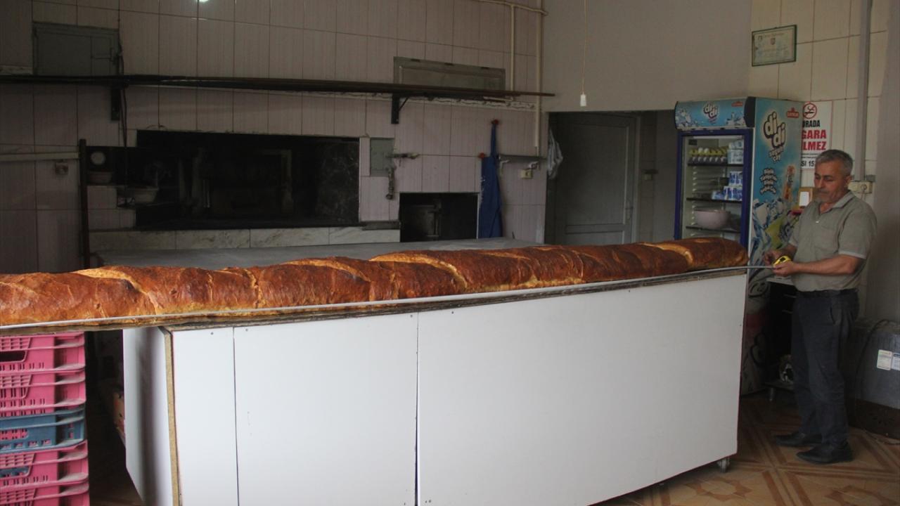 Şehitler Mahallesi`nde fırın işleten ve 2015 yılında 1 metre 90 santimetre uzunluğunda ekmek yapan 50 yaşındaki Erdoğan Çiçek, bu kez 3 metre 80 santimetre uzunluğunda ekmek üretti.