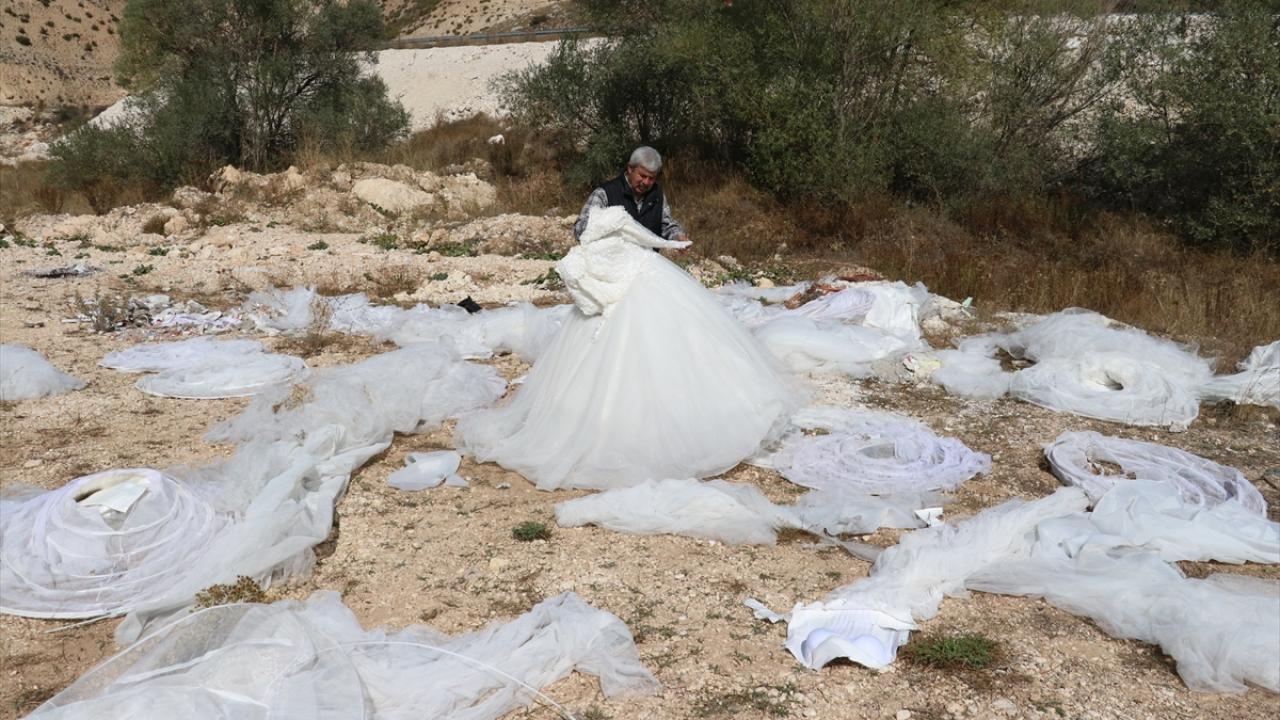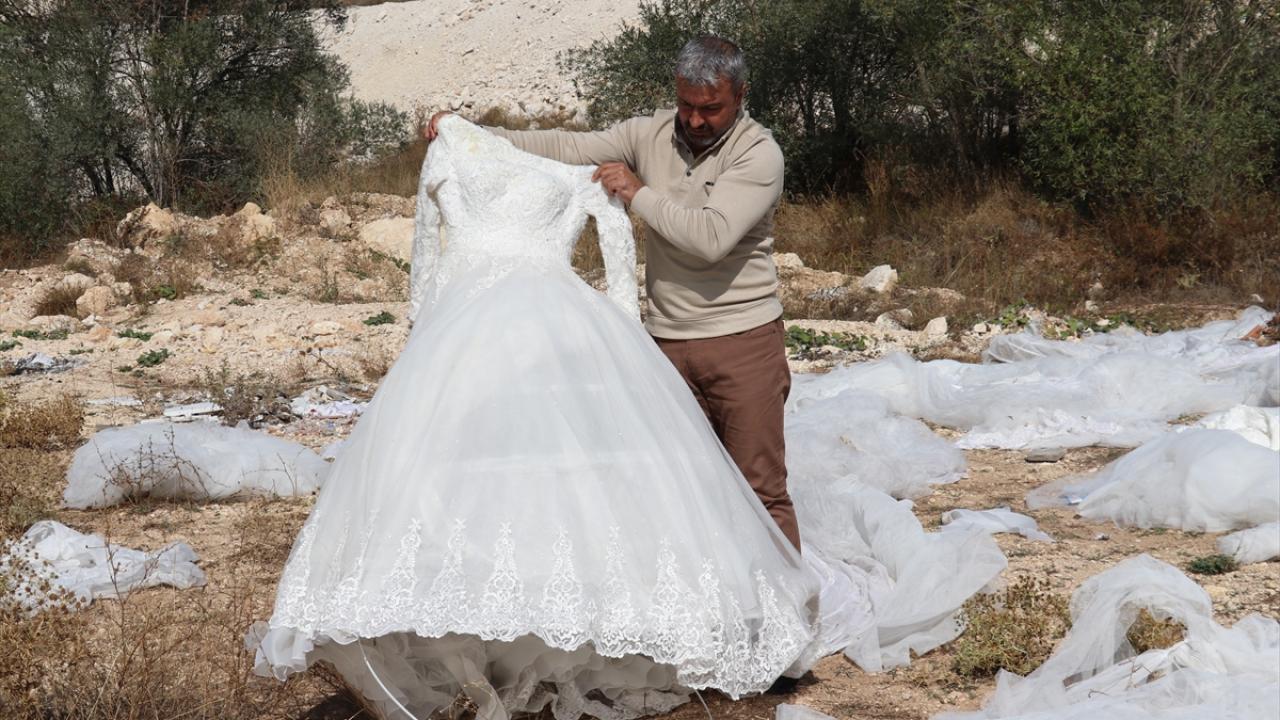Şehir merkezine 6 kilometre uzaklıktaki Paşabahçe Piknik ve Mesire Alanı Tavra Deresi kenarında gezen vatandaşlar, araziye atılmış çok sayıda gelinlik gördü.