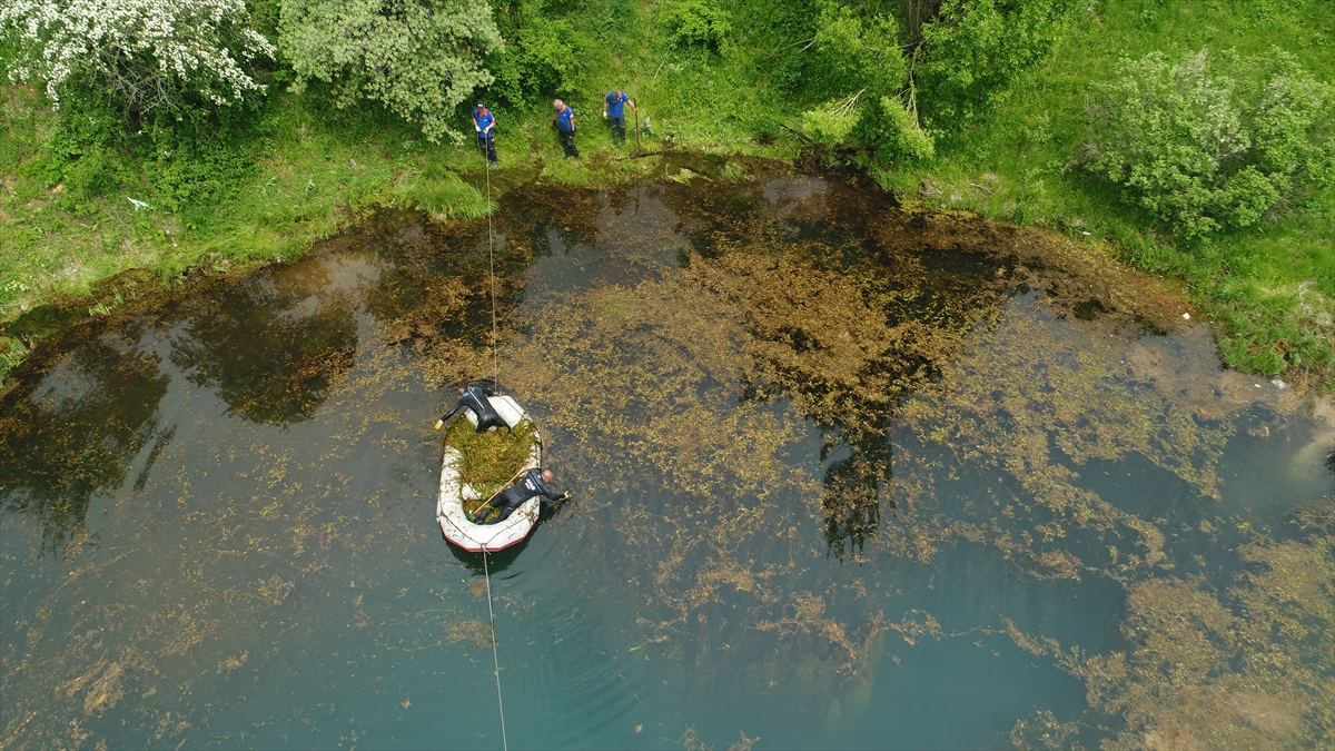 Balık adamlar, göldeki atıkların yanı sıra yüzeyindeki yosunları da temizledi.
