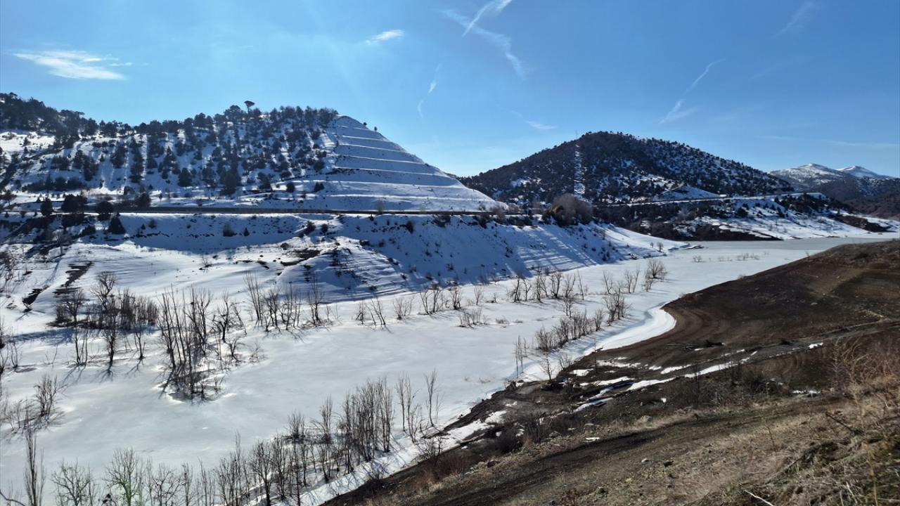 Öte yandan Pusat-Özen Barajı`nın su bulunan bölümlerinin soğuk havanın etkisiyle buz tuttuğu görüldü.