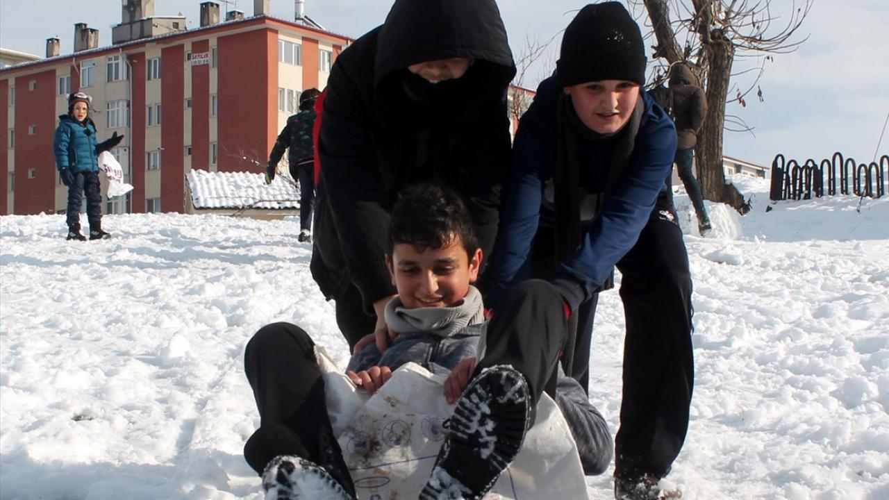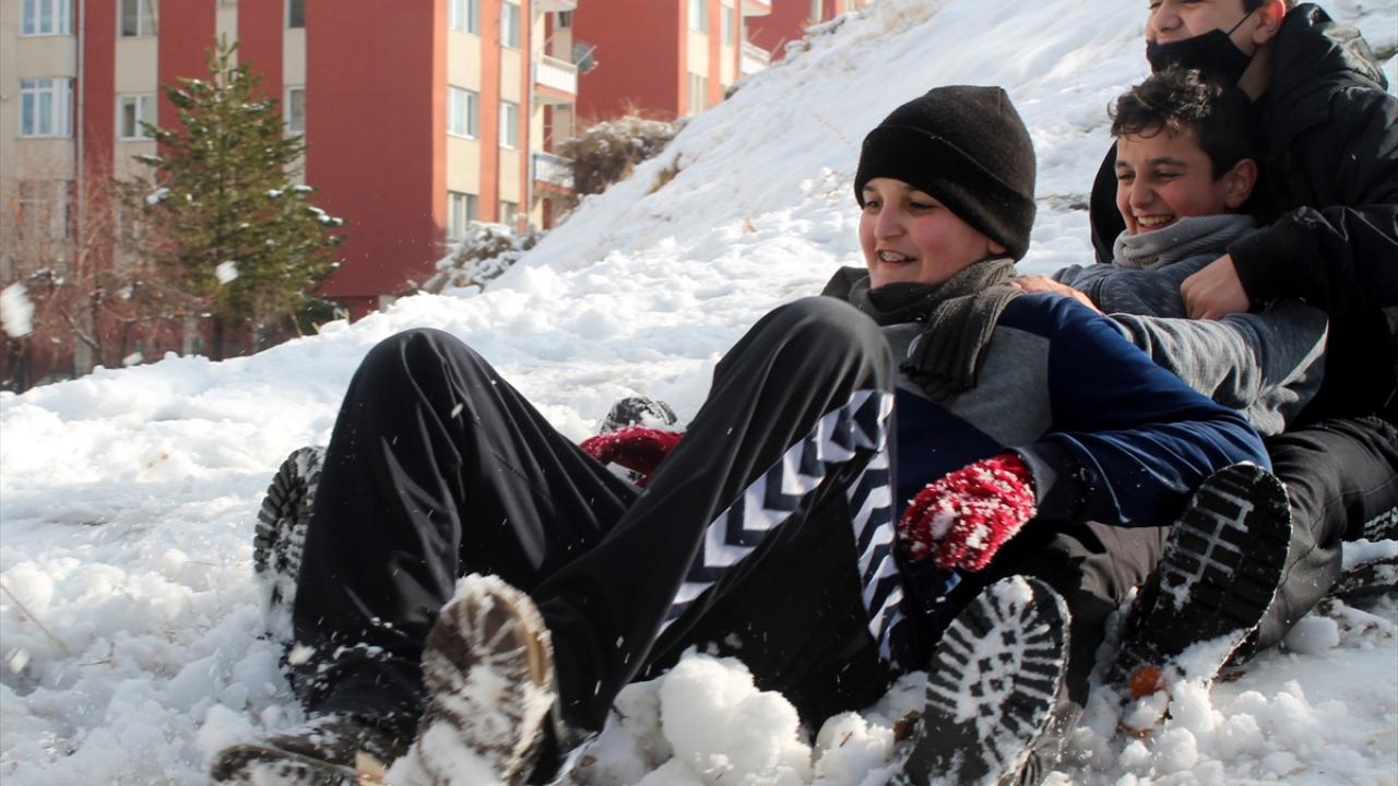 Sivas merkez ve ilçelerinde kar yağışı nedeniyle 37 köy yolunda ulaşım sağlanamıyor. Karın keyfini ise kent merkezinde çocuklar kızak kayarak, kardan adam yaparak çıkarıyor.