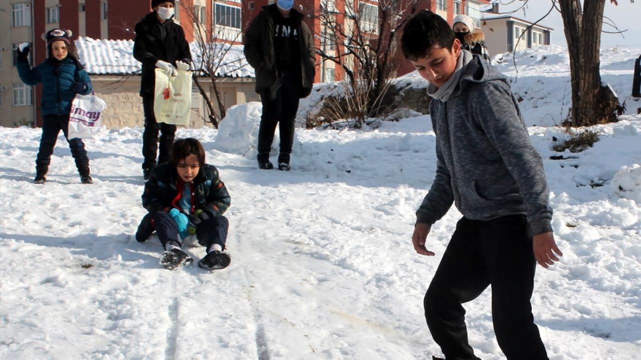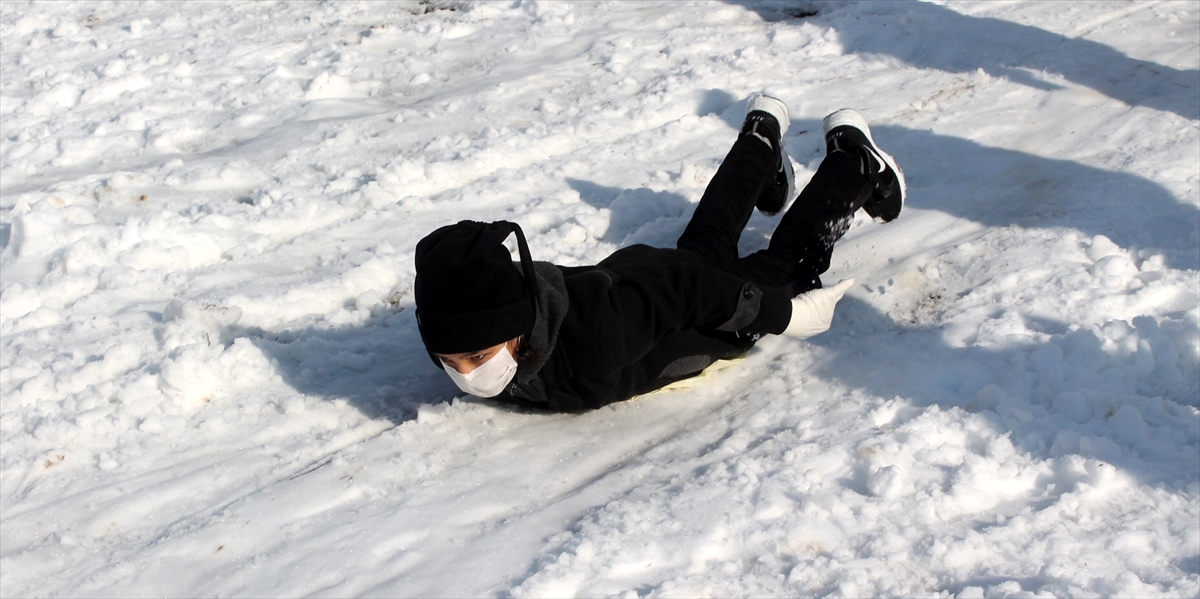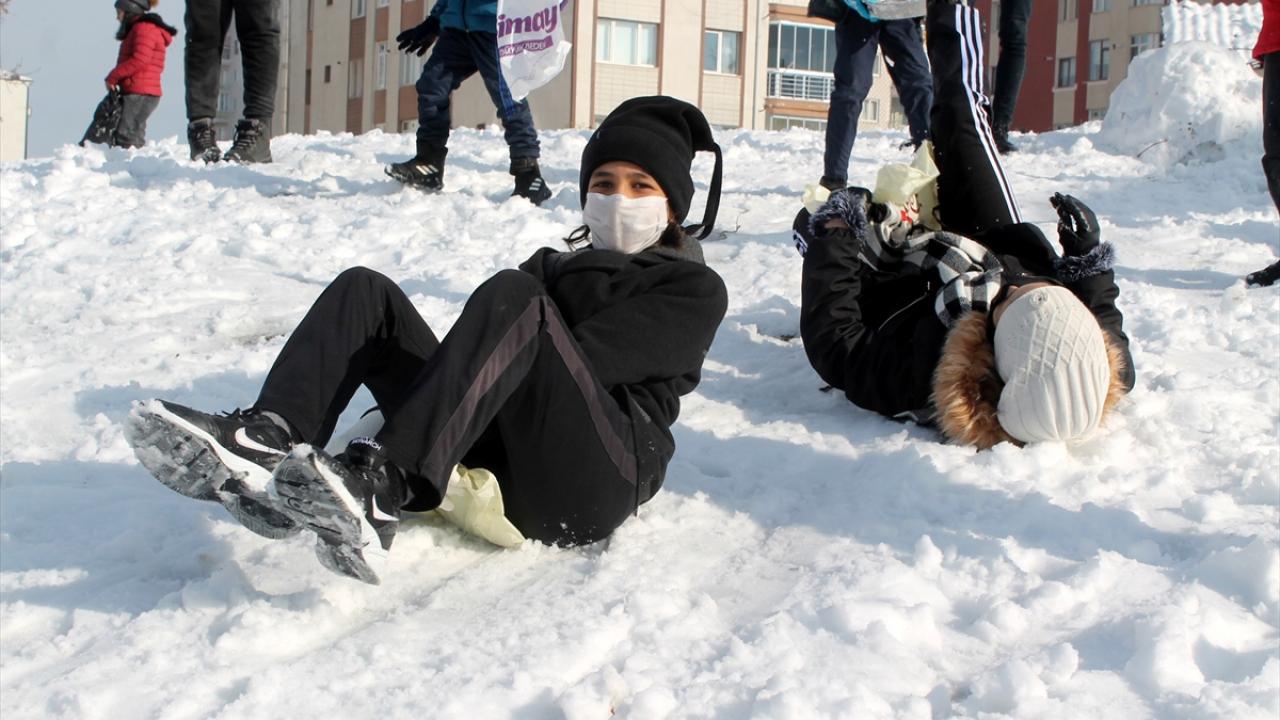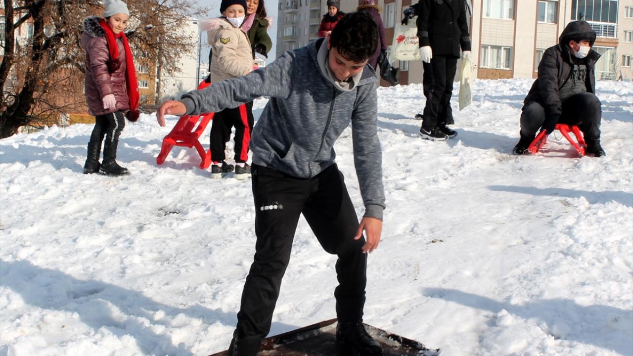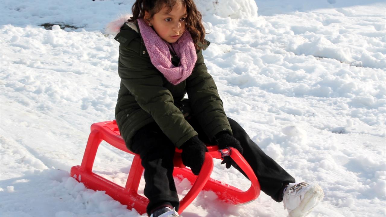 Sivas'ta çocuklar karın keyfini kızak kayarak çıkardı