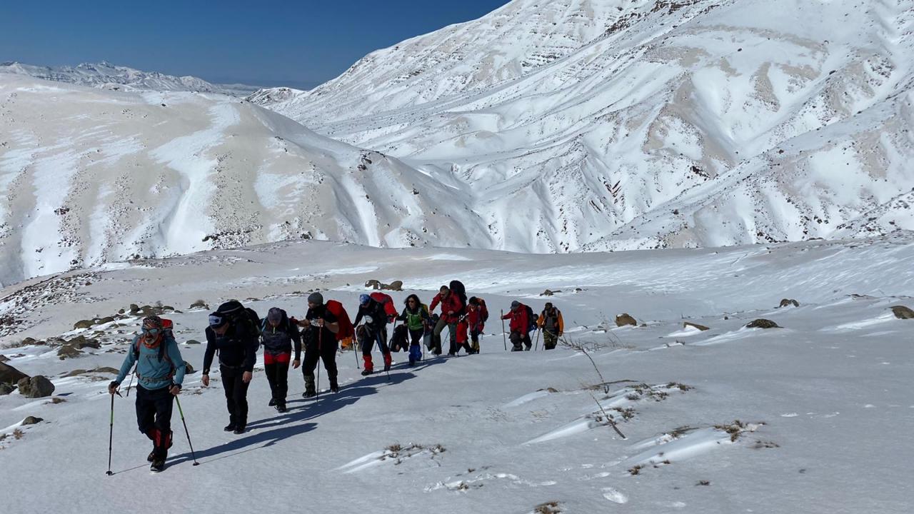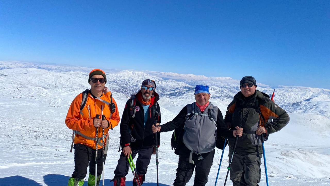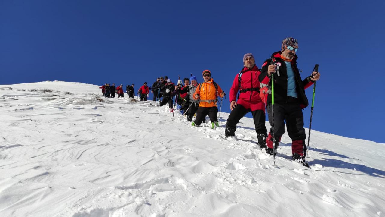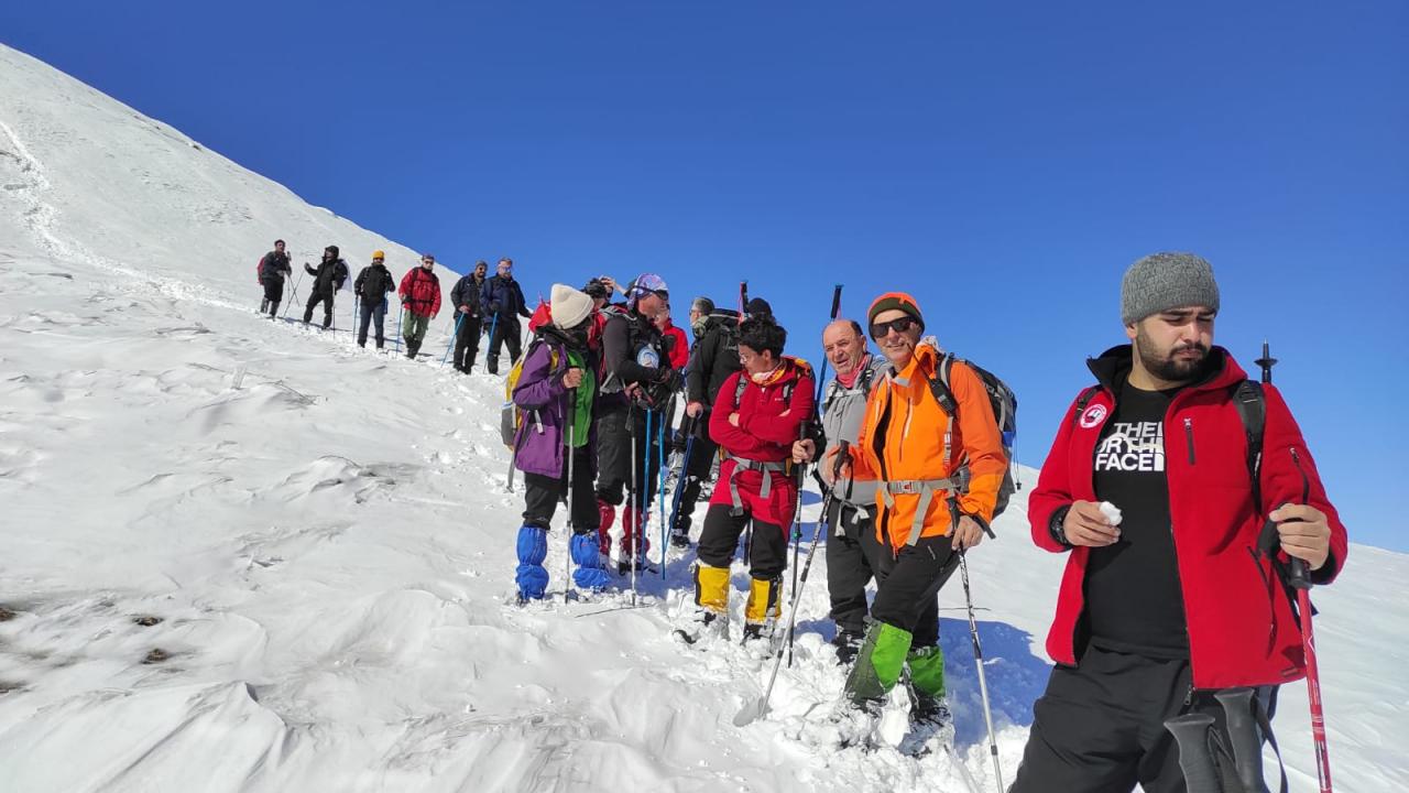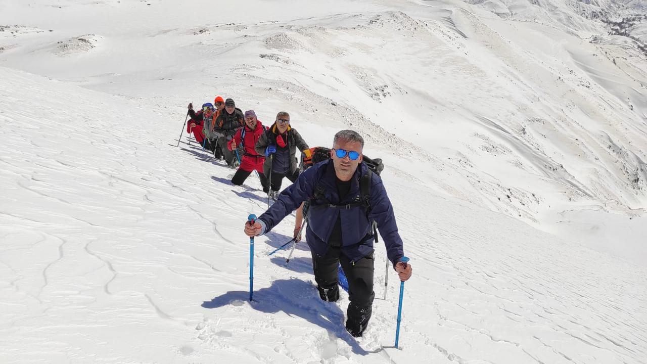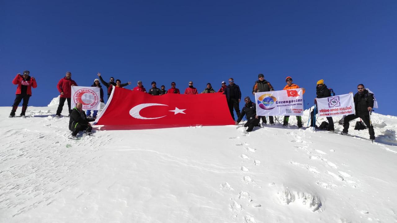 Sivas'ta bir grup dağcı, Zara ilçesi sınırlarındaki karla kaplı 2 bin 800 metre rakımlı Beydağı'nın zirvesine tırmandı.