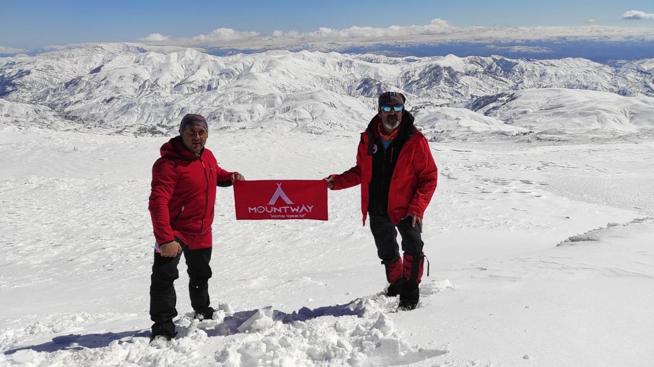 Sivas'ta dağcılar karla kaplı Beydağı'nın zirvesine tırmandı