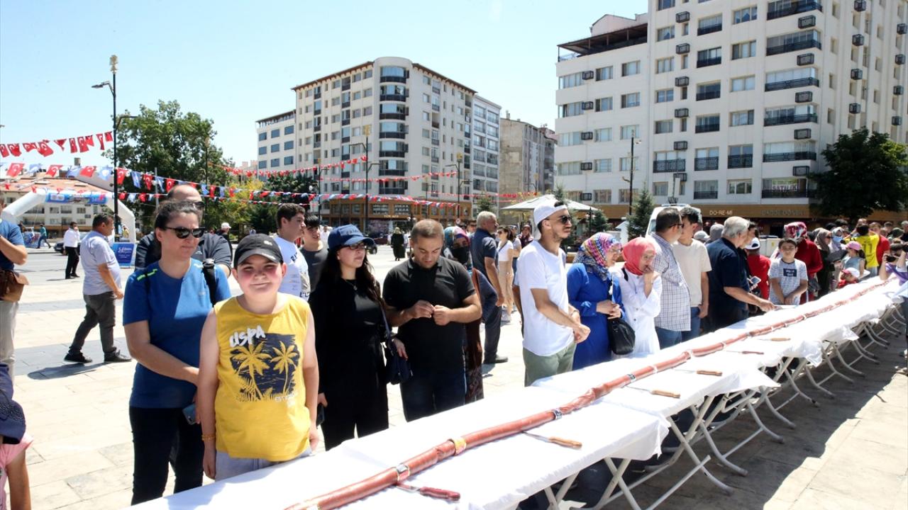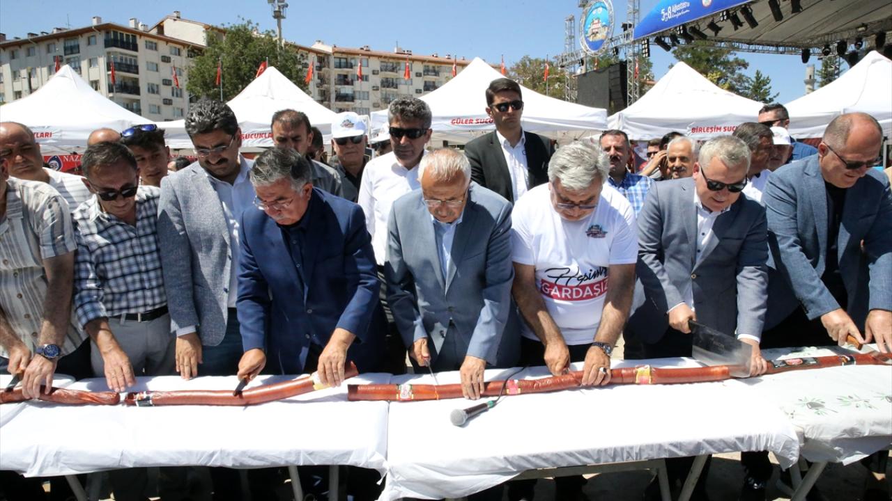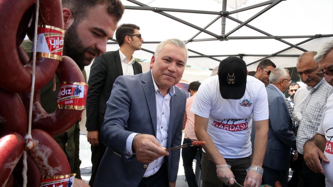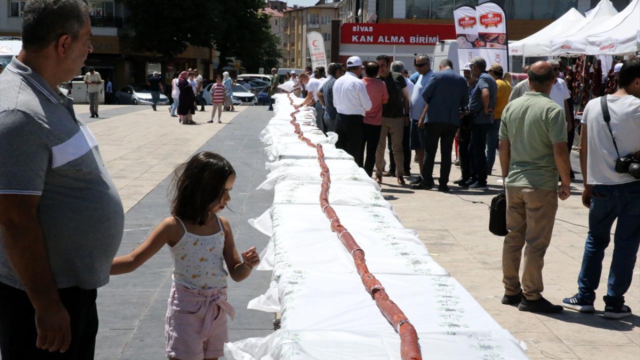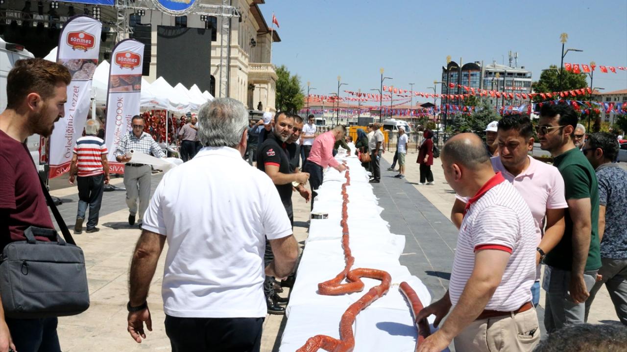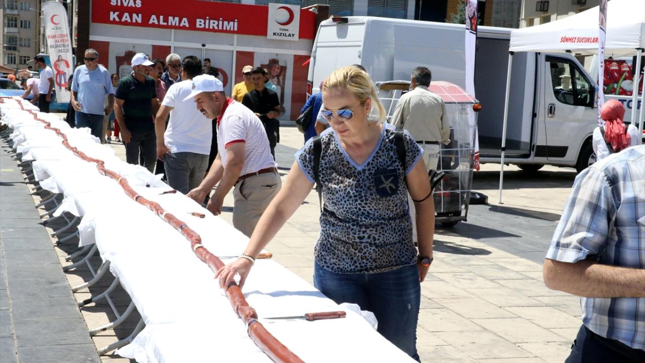 Sivas'ta bu yıl 3. düzenlenen "Gardaşlık Festivali" etkinlikleri kapsamında hazırlanan 58 metre uzunluğundaki sucuk pişirilip vatandaşlara ikram edildi.