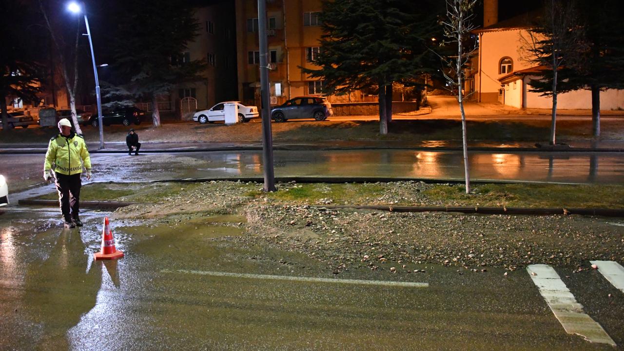 Ekipler tek yönlü ulaşıma kapatılan caddede içme suyu hattını kapattıktan sonra zarar gören yerlerde iş makineleriyle çalışma başlattı. Patlamanın nedeni araştırılıyor.