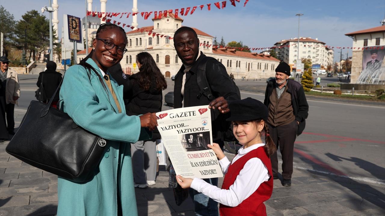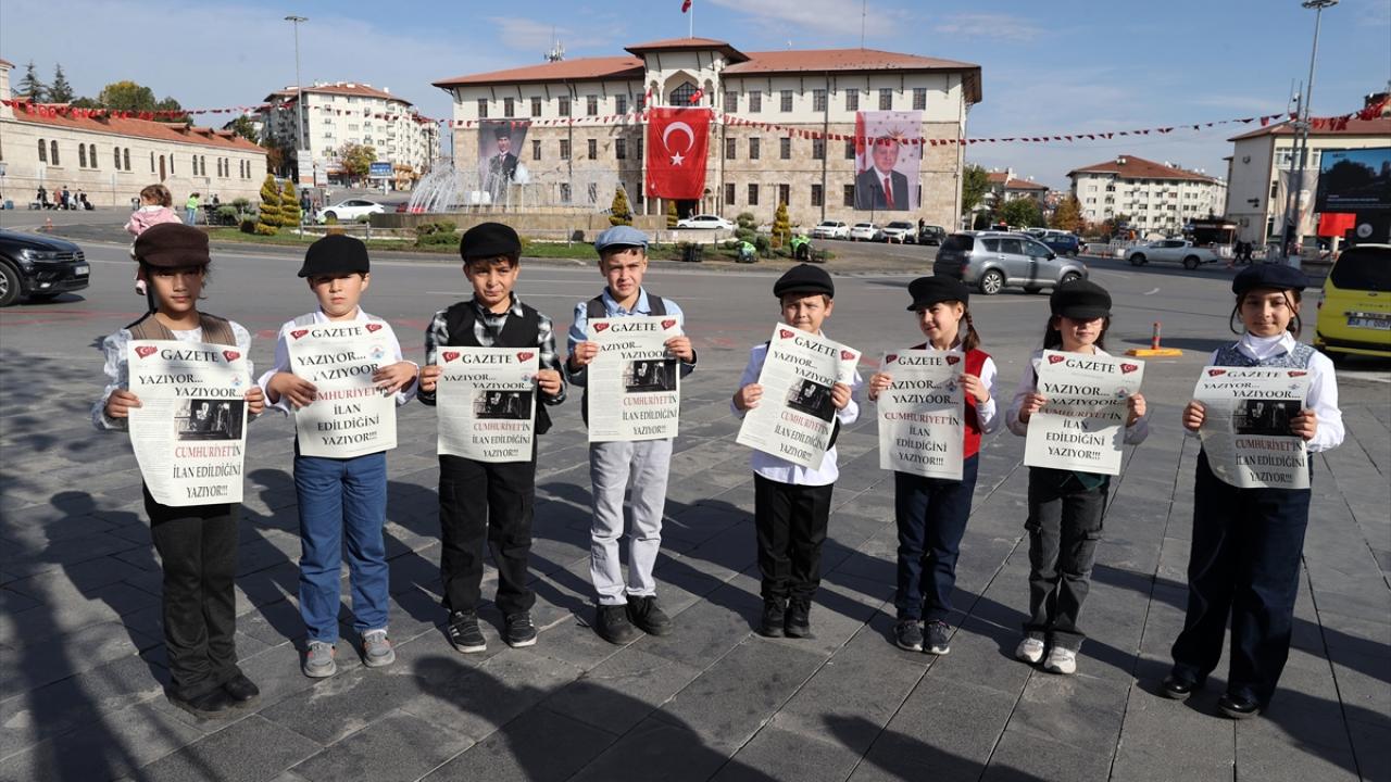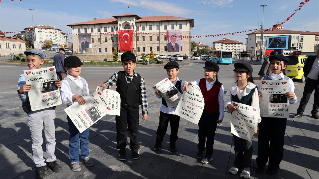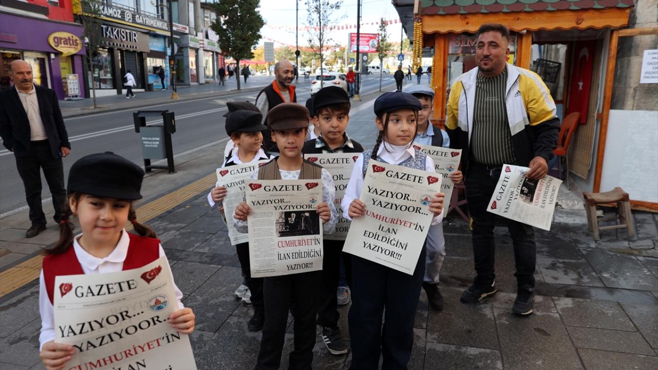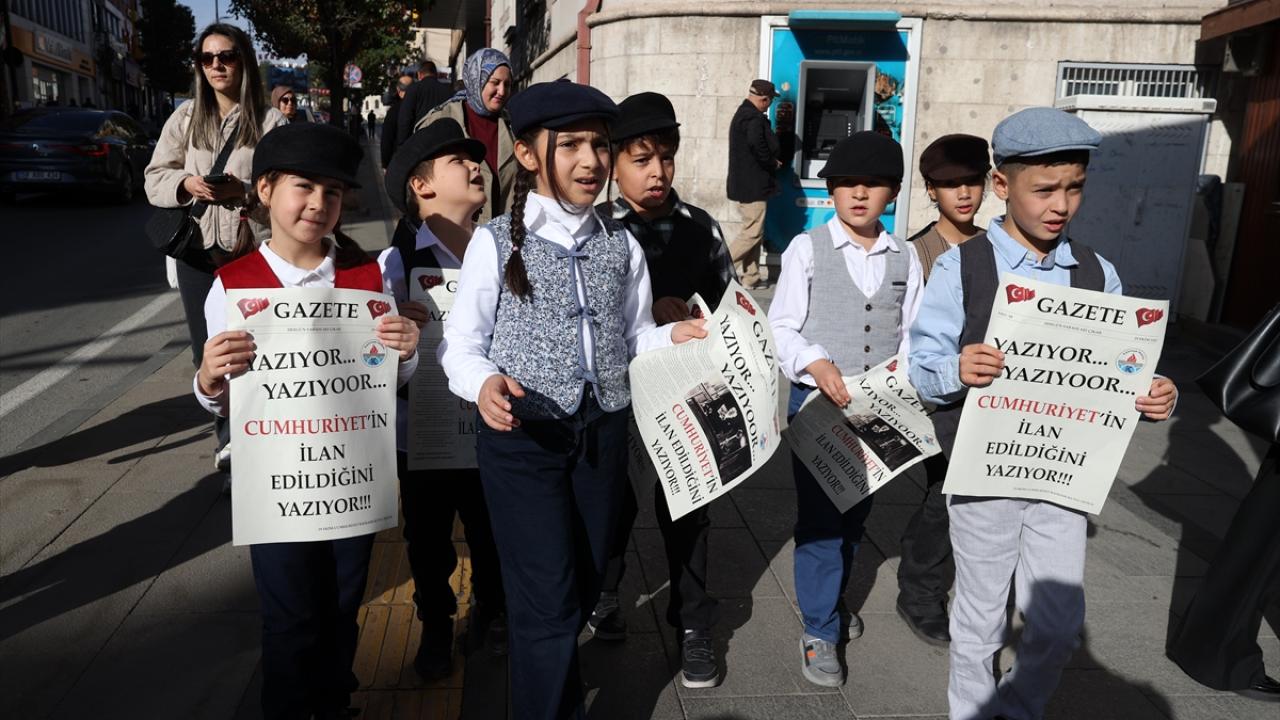 Cumhuriyet`in önemine vurgu yapmayı amaçladıklarını belirten Aksoy, "Öğrencilerimiz hazırladıkları gazeteleri esnafa ve halkımıza dağıtarak Cumhuriyet`in ilan edileceğini duyurdular." dedi.