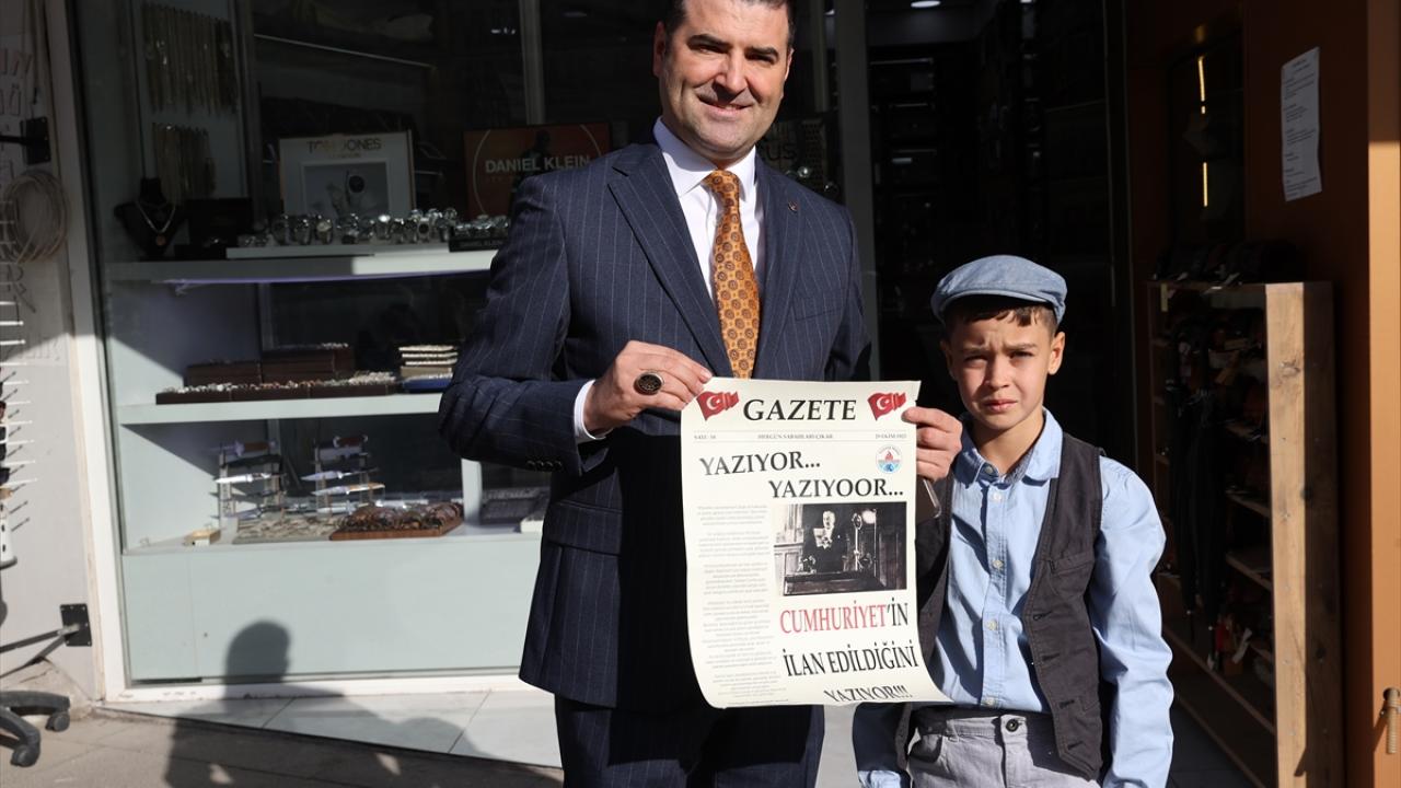 Kızılırmak İlkokulu öğrencileri, öğretmenlerinin desteğiyle Cumhuriyet`in ilan edilişini duyuran temsili gazete hazırladı.