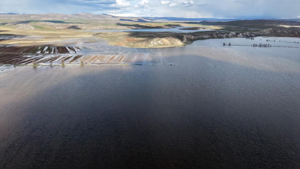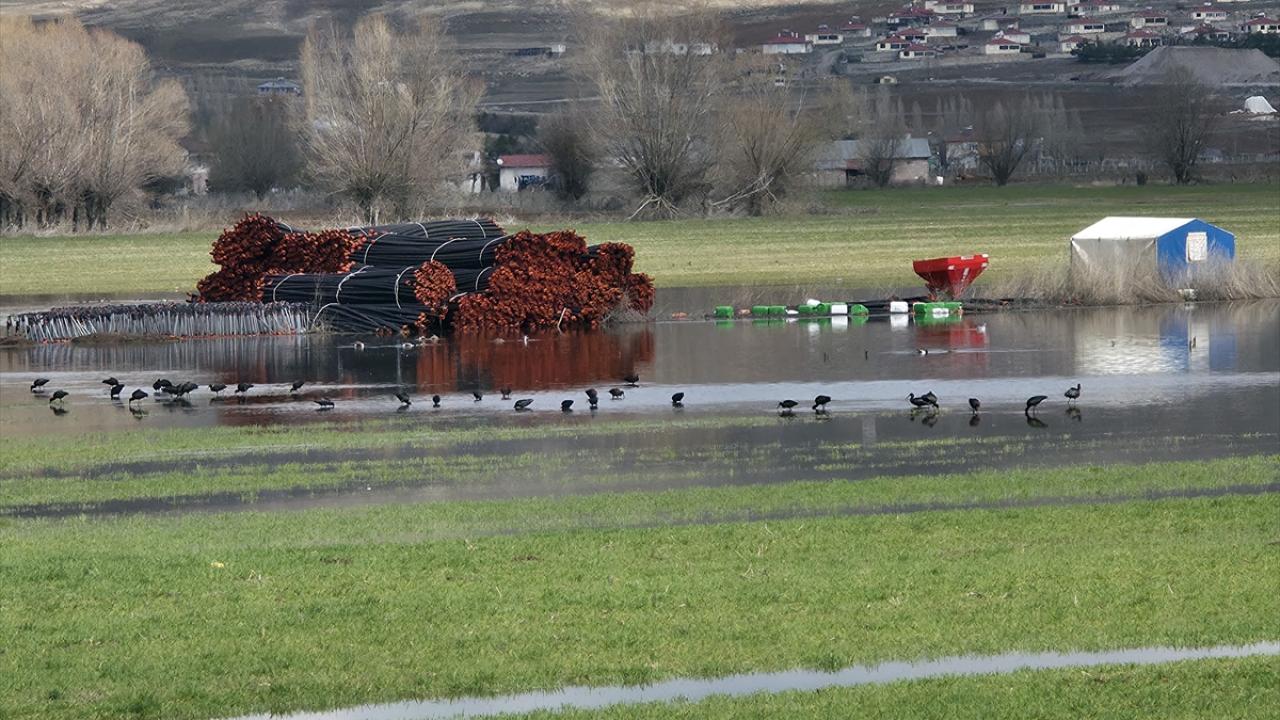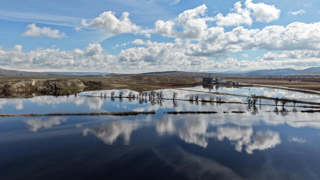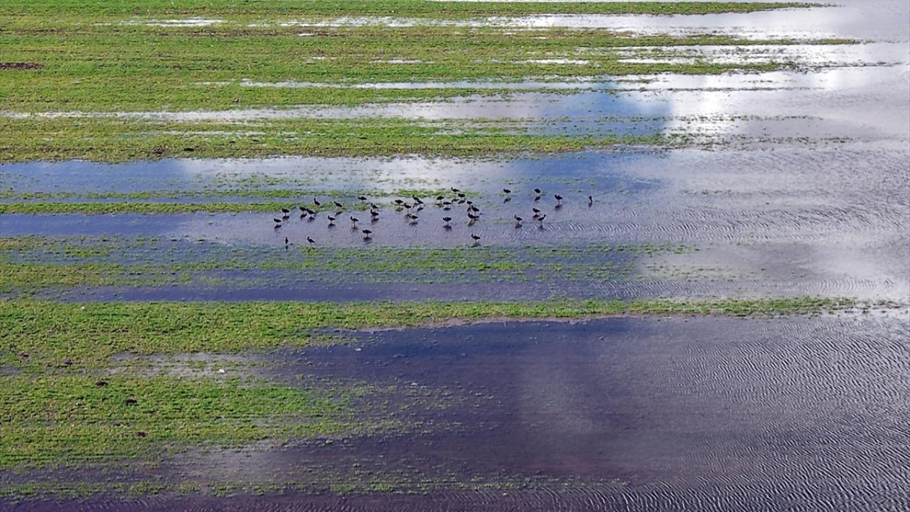 Sivas'ta tarım alanlarında yağışla oluşan su birikintileri havadan görüntülendi